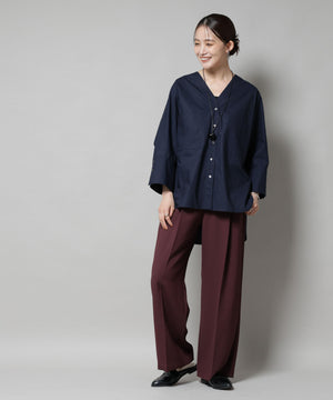 すっきりとした美脚ラインが特徴のワイドパンツ。タックが開きすぎてシルエットが崩れることが無いよう、内側の仕様を工夫した拘りのデザイン。ベーシックでどんなスタイルにも合わせやすく、シーンレスでサマになる万能アイテムです。