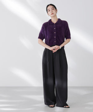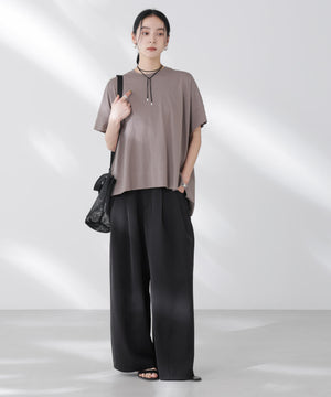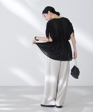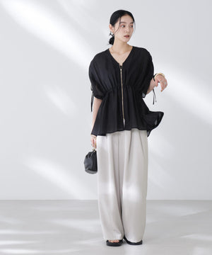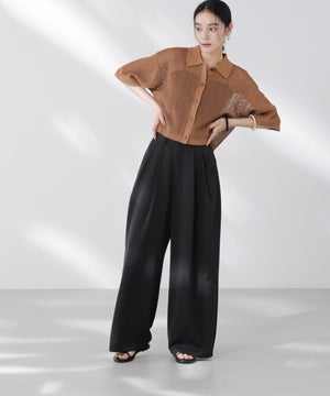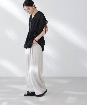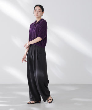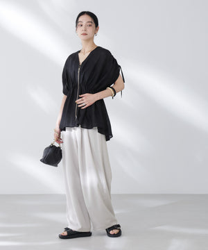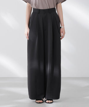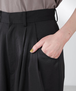 ・深めのタックがゆったりと落ち、腰回りを包むような美しいシルエット