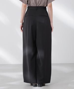 ・控えめな光沢とヴィンテージ感のある生地が特徴のタックパンツ