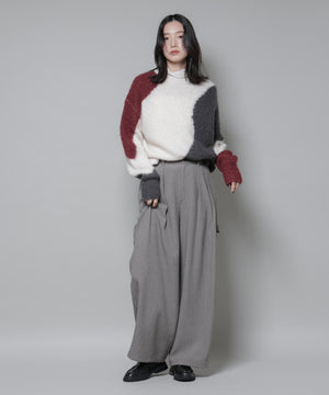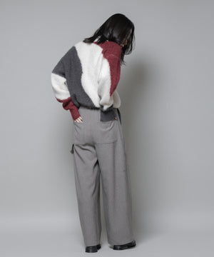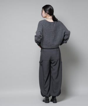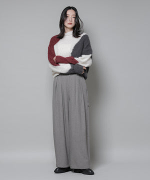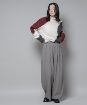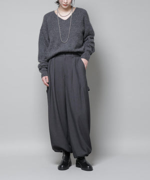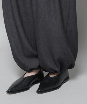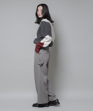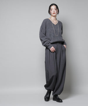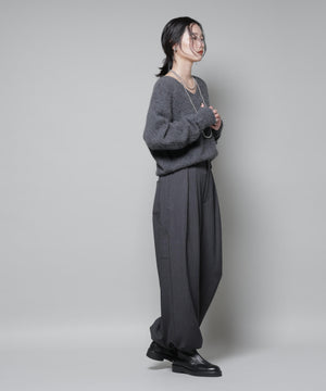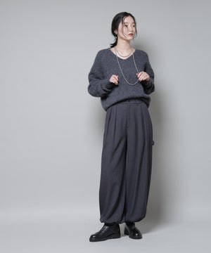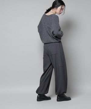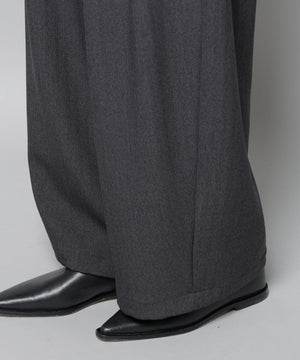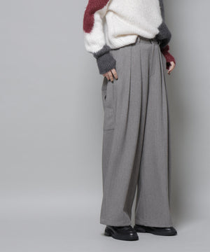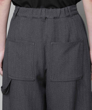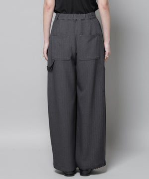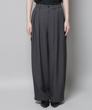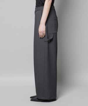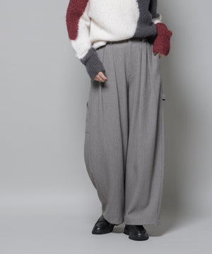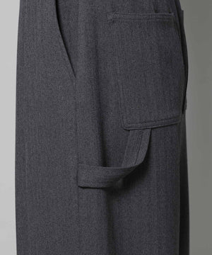 ツイーディーなへリンボン素材で仕立てたドロストワイドパンツ。ゆったりとしたペインターディティールに、フロントにはタックを入れてきれいめな要素もプラスした一着。シーズン感のある素材と拘りのデザインで、簡単に上級者見えコーデが完成します。