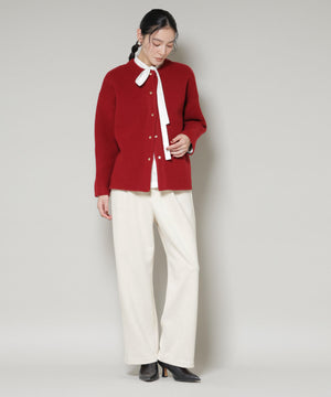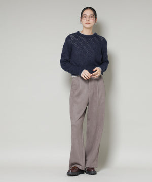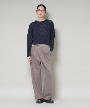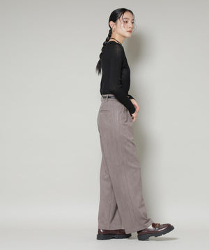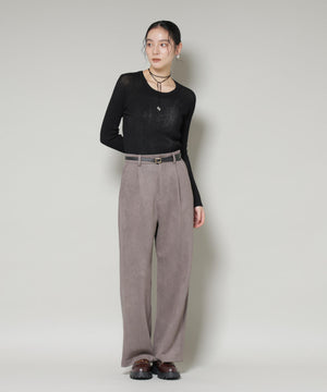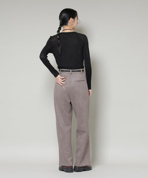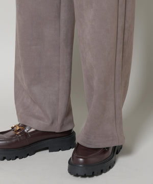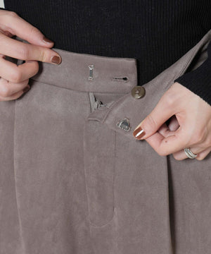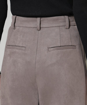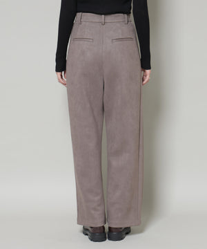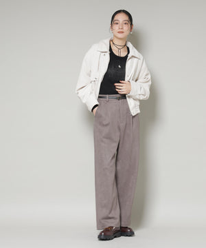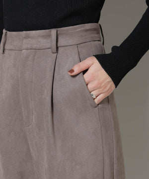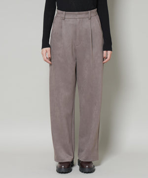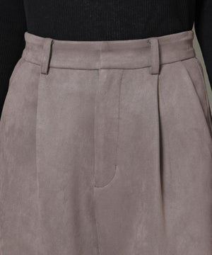トレンド感あるフェイクスエードの柔らかな質感を生かしたタックパンツ。ニットやショート丈のアウターを合わせれば素材の柔らかさが引き立ち、女性らしい上品なスタイリングに仕上がります。