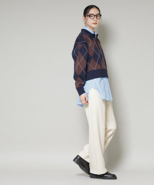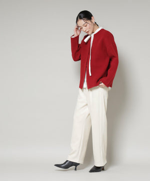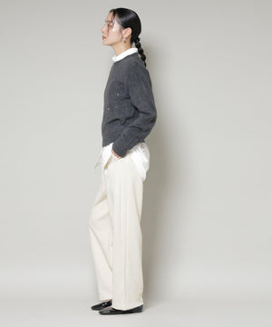 ・フロントに入れた深めのタックがきちんと感のあるロングパンツ