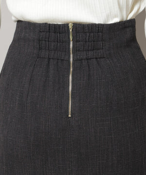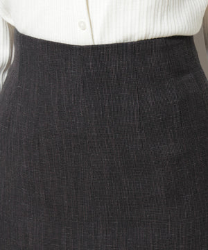 ほんのりラメの入ったクラシックなツイードスカート。ややハイウエストで、ウエストからヒップラインまですっきり仕上げたきれいなIラインシルエットが、細見え効果を叶えてくれるデザインです。
