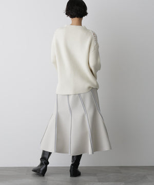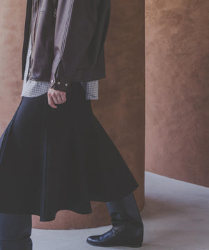 今季ローンチした新レーベル「Stevelour(スティーブロア)」のスカート。ブーツ合わせがしやすいミドル丈も、トレンド感のある着こなしを叶えるポイントです。
