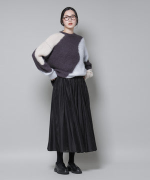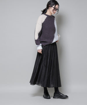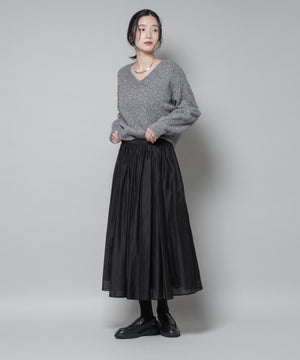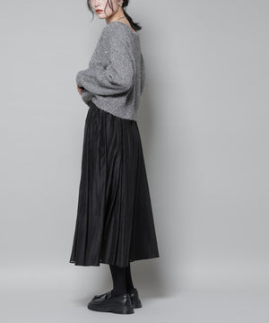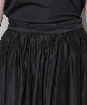 光沢感のあるローン素材を使用したボリュームスカート。軽やかな素材感ながらも、たっぷり寄せたギャザーで立体感のある美しいシルエットを実現。冬のスタイリングに映える、上品でフェミニンな一枚です。