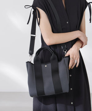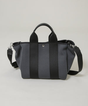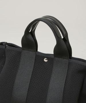 ※伸縮性のある柔らかい生地にパンチングを施しているので荷物をたくさん入れると穴の大きさが変化します。重たいもの(ペットボトルを何本も入れるなど)を長時間入れて持ち歩くと破損の可能性がございます。予めご了承下さい。