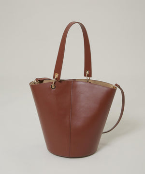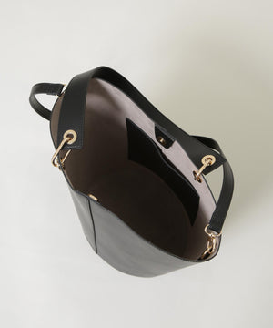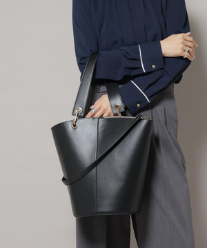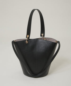 ・アシンメトリーに配したハンドルデザインが目を引く2way仕様のトートバッグ