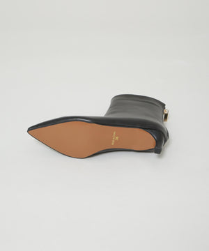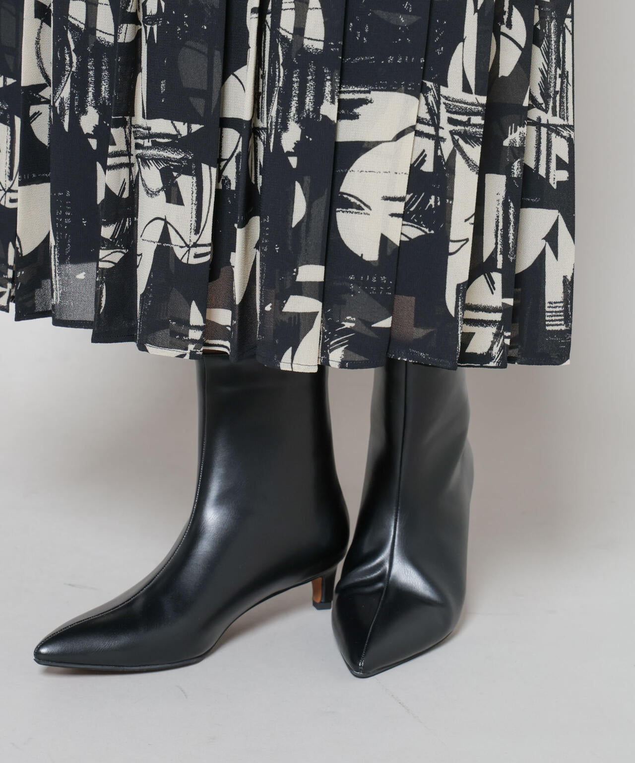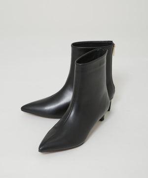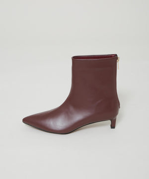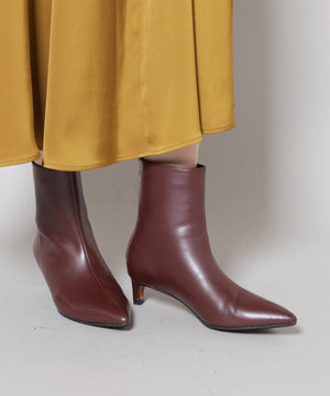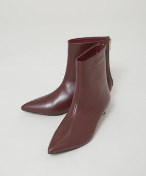 エレガントで女性らしさを引き立てるポインテッドトゥのショートブーツ。深い赤みでさりげない華やかさを添えてくれるボルドーと、ベーシックで万能に合わせやすいブラックの二色展開です。