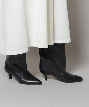 モード感ある大人っぽいスタイリングに仕上がるショートブーツ。上品さと履きやすさを両立し、スカートにもパンツにも好相性。デイリーに活躍する、オンオフ問わず使える一足です。