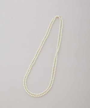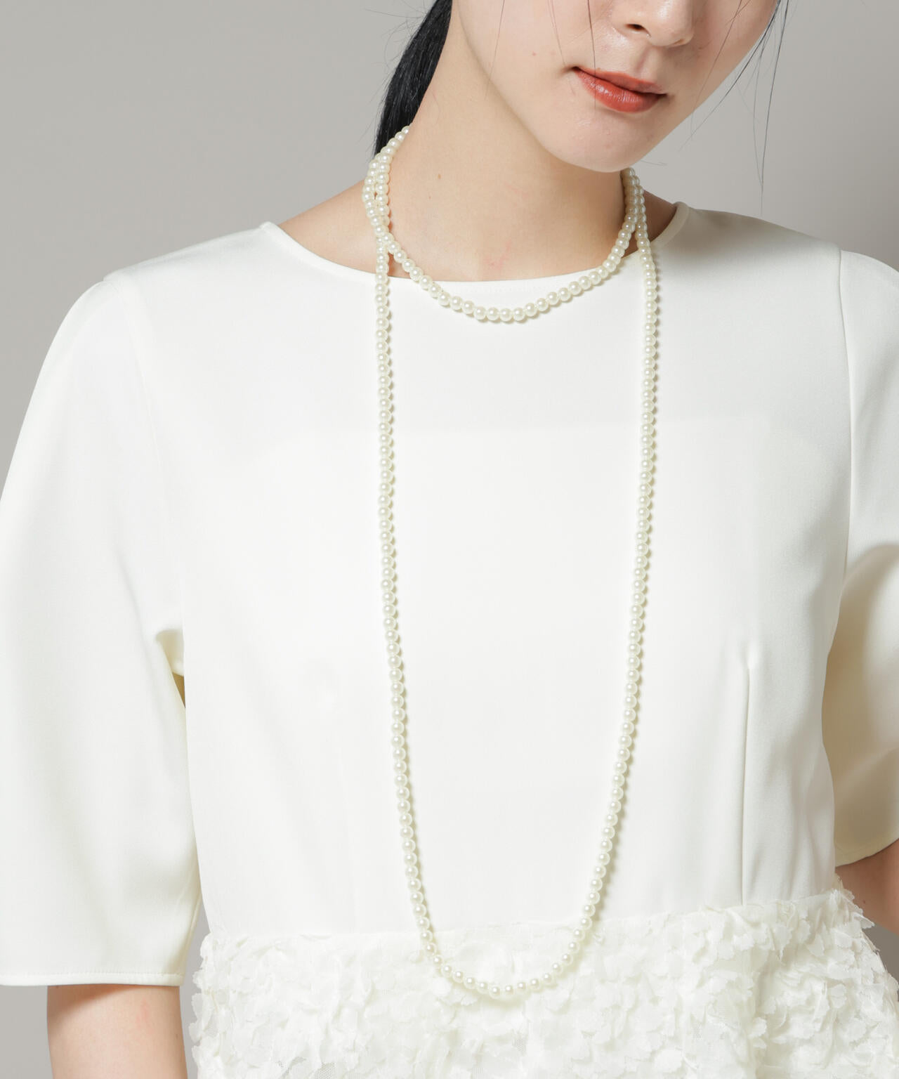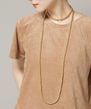 一点投入できれい目なスタイルが様になるロングボールネックレス。1連でも2連でも3連でも様になるデザインで、デイリー使いだけでなくセレモニーシーンにも重宝します。