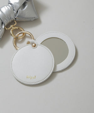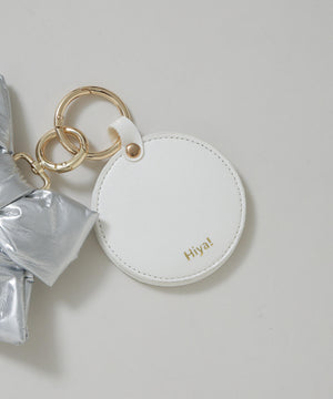 リボンモチーフがセットになったキュートな印象のミラーチャーム。実用性の高いミニサイズのミラーは、お出掛けのバッグに付けておくだけで重宝すること間違いなし。さりげない「Hiya!」の文字プリントがミラーを使うたびに明るい気分にしてくれます!