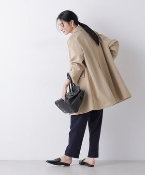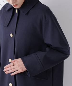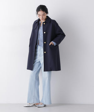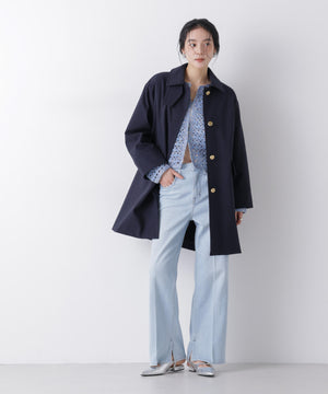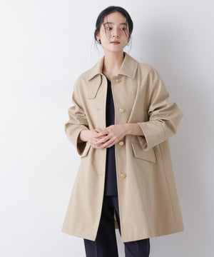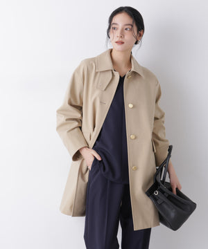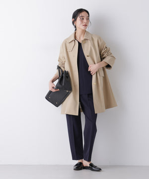 きれいめなボンディング素材で仕立てたステンカラーコート。しっかりとしたハリ感のある構築的なフォルムに、バックタックを入れ大人なテントラインシルエットを実現。春のオケージョンシーンにはもちろん、カジュアルなアイテムとも好相性な一着です。
