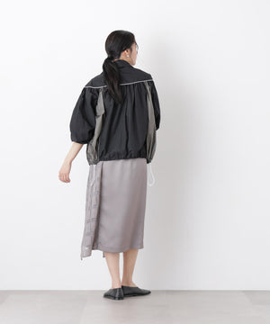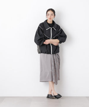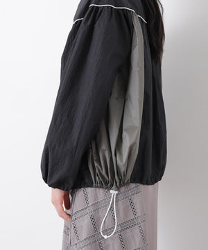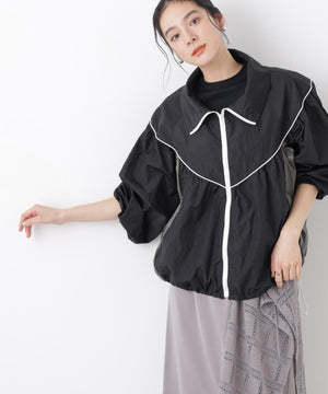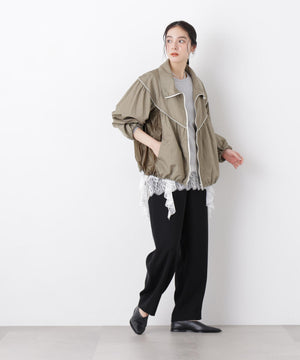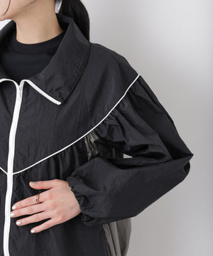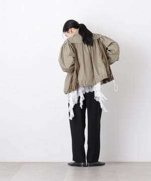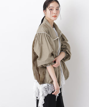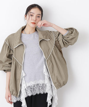 ・ギャザーをたっぷりと入れた、女性らしさのあるライトブルゾン