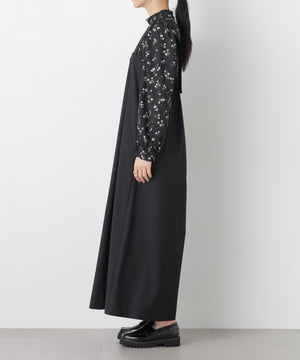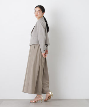 マニッシュなスーチング素材で仕立てたワイドフレアサロペット。たっぷりとした分量感で広がるフレアシルエットが特徴。歩くたびに揺れるスカートライクなシルエットで、着こなしに動きを演出します。