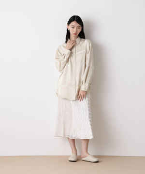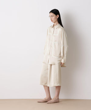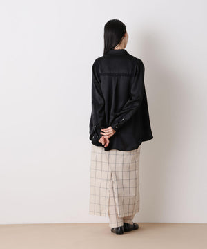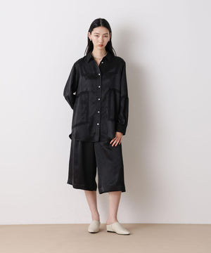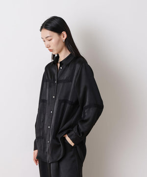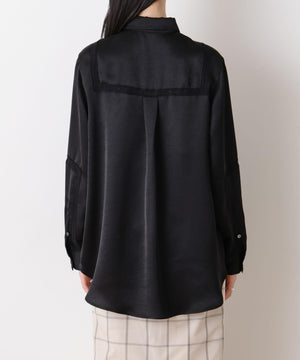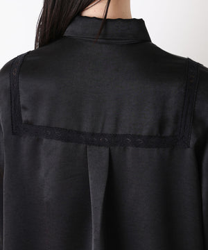 今季も「STEVELOUR」シリーズが登場!程よい光沢と肉厚感のあるサテン素材を使用したブラウス。レーステープを切り替えデザインにあしらい、サテンのモード感とフェミニンさを両立。背中のセーラー衿風レースがアクセントとなり、フレンチシックな印象を演出した一枚です。