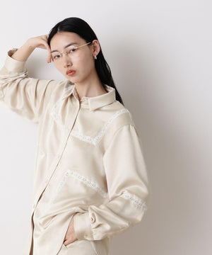 「STEVELOUR」サテンレーストリミングブラウス(セットアップ可)