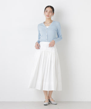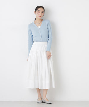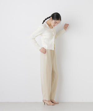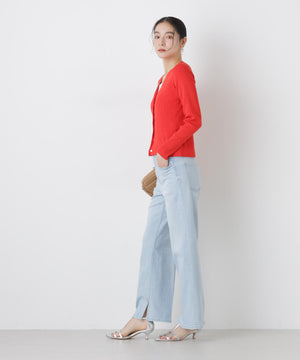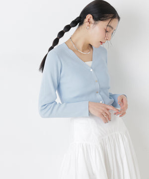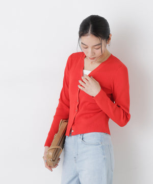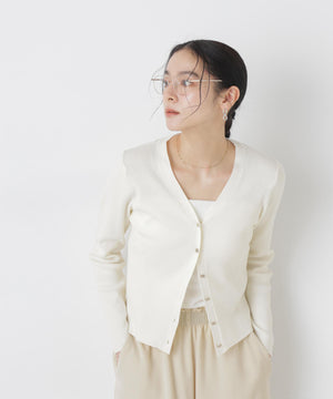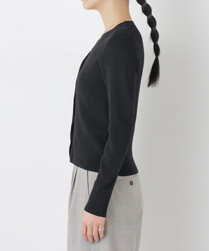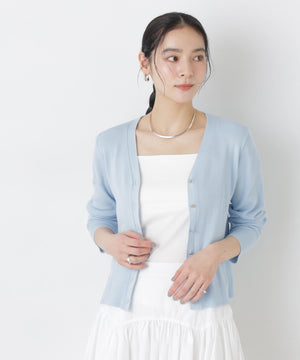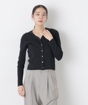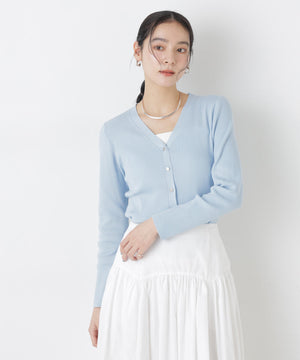 UVカットとマシンウォッシャブルの優れた機能性が嬉しいカーディガン。リブ仕様で仕立てた身体のラインを拾いすぎない程よい細身のシルエットで、女性らしく着こなせる一枚。コンパクトなデザインなので、これからのシーズン羽織りとして大活躍します。