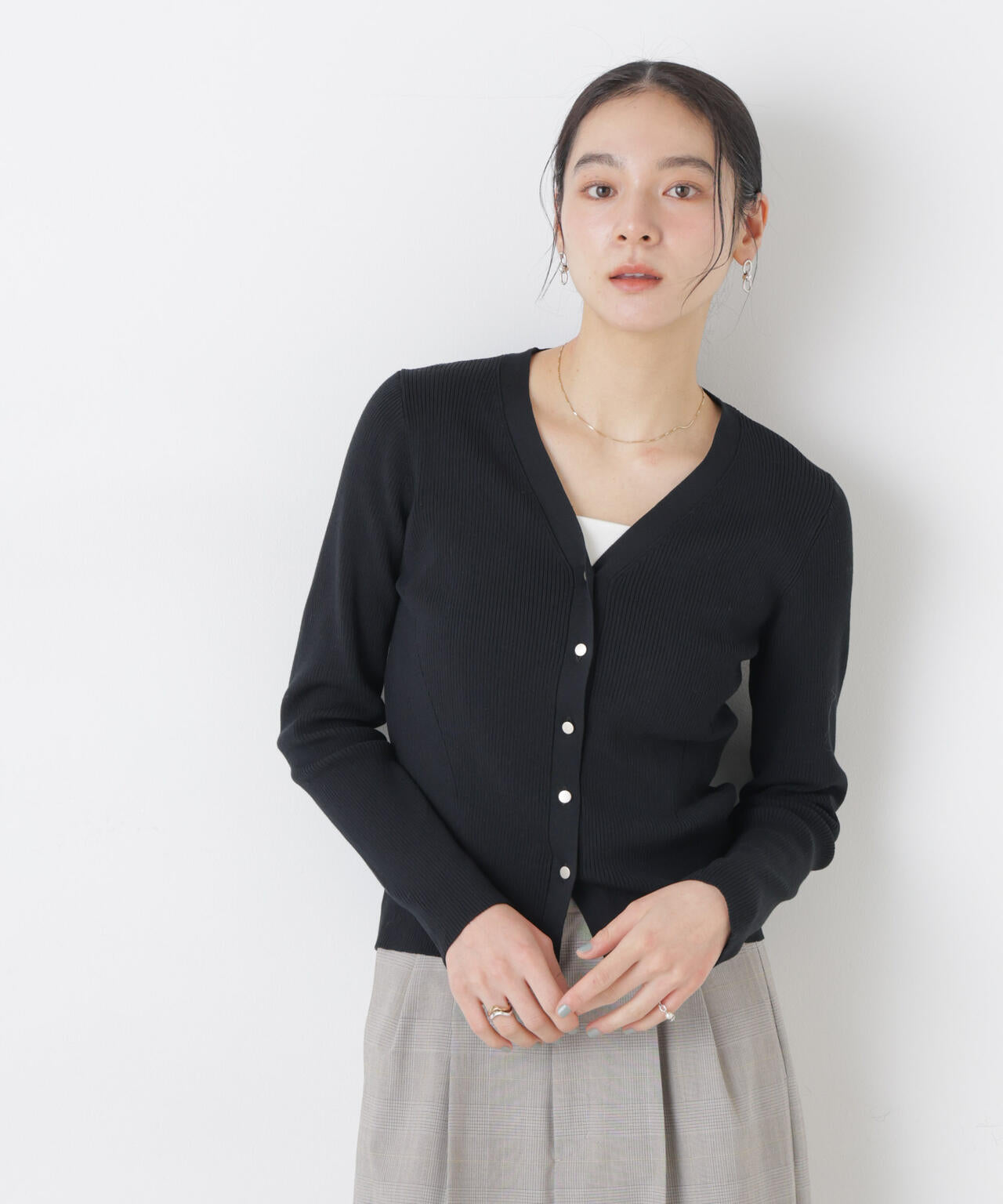 ウォッシャブルハイツイストVネックリブカーディガン