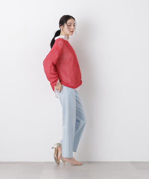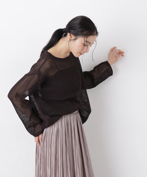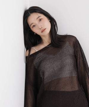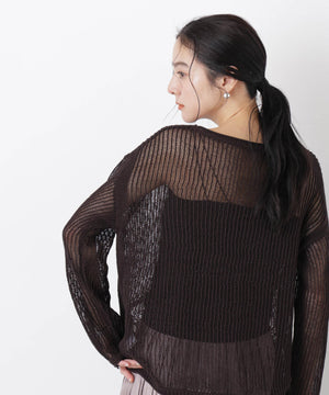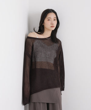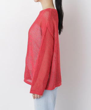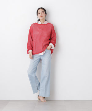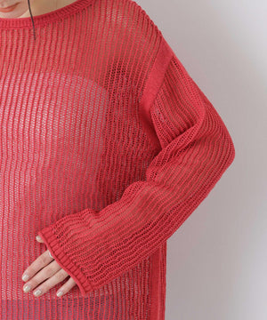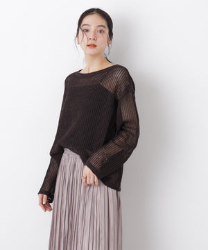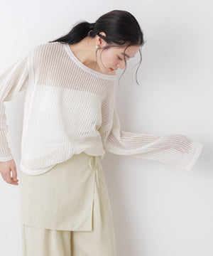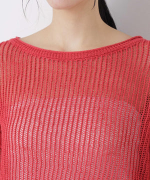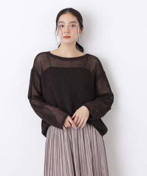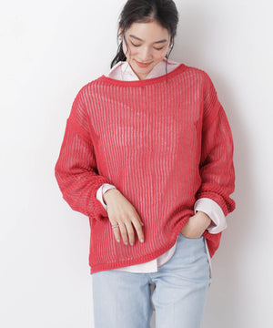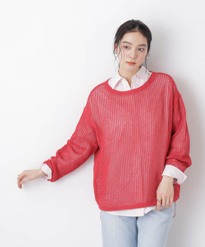 リネン混テープヤーンメッシュワイドニット