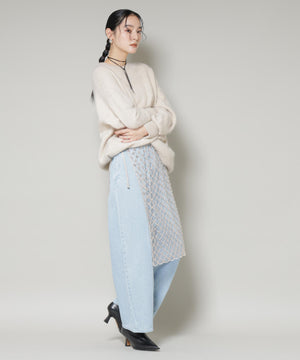 ・ふわふわしたニットと合わせた、素材のコントラストで魅せるスタイルがおすすめ