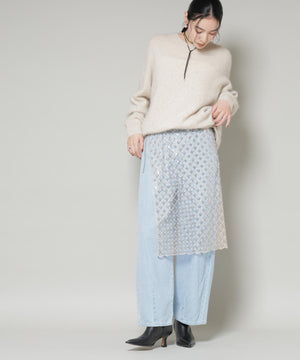 ・花のようなモチーフが規則的に並んだ幾何学模様が特徴のラップスカート