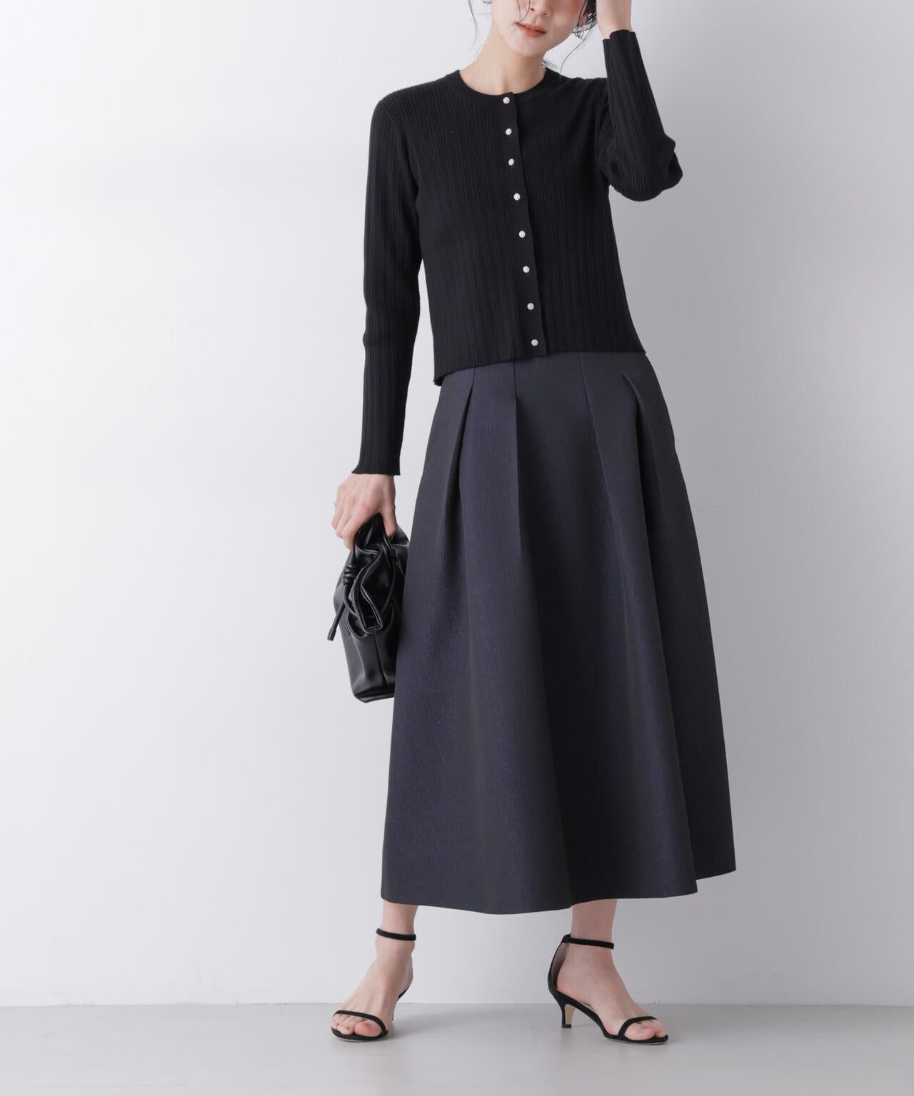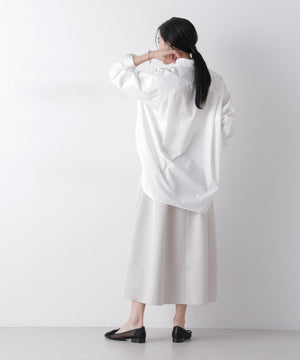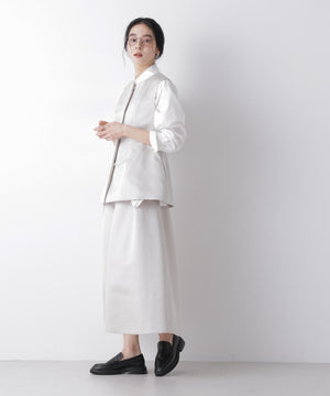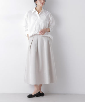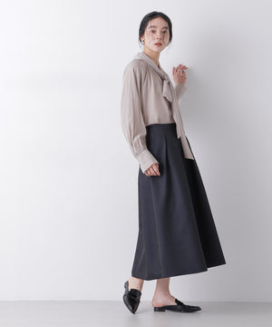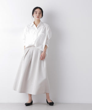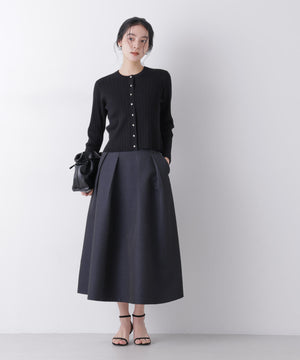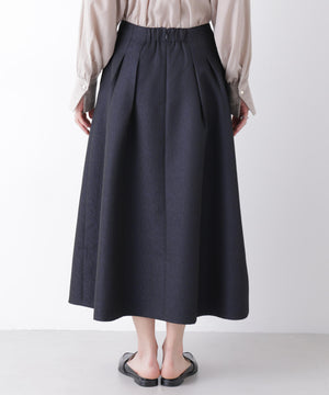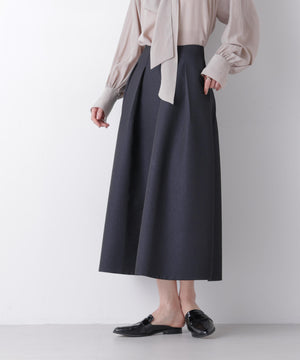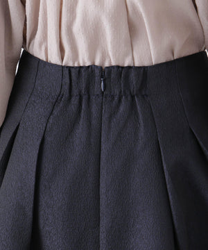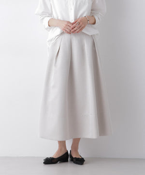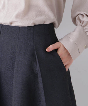 光沢感のある糸を使用したオリジナルジャガード素材が美しいボリュームタックスカート。立体感のあるタックが生み出すドレスライクな華やかさと、レディな印象が魅力のアイテム。春のオケージョンシーンにおすすめの一枚です。