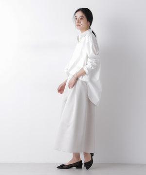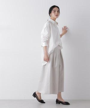 ・きれいめなシャツ、ブラウスと合わせたり、コンパクトなニットと合わせるだけできちんと見えする上品なスタイルに