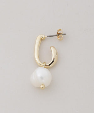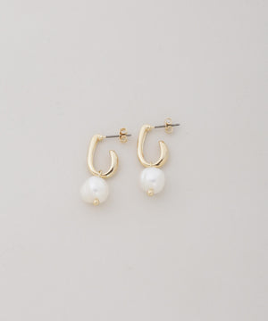 ゴールドメタルとフェイクパールのコンビネーションが上品なピアス。動くたびにパールが優雅に揺れ、コーディネートに華やぎを演出してくれるアイテムです。
