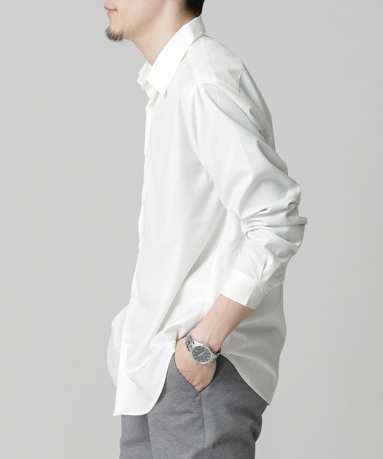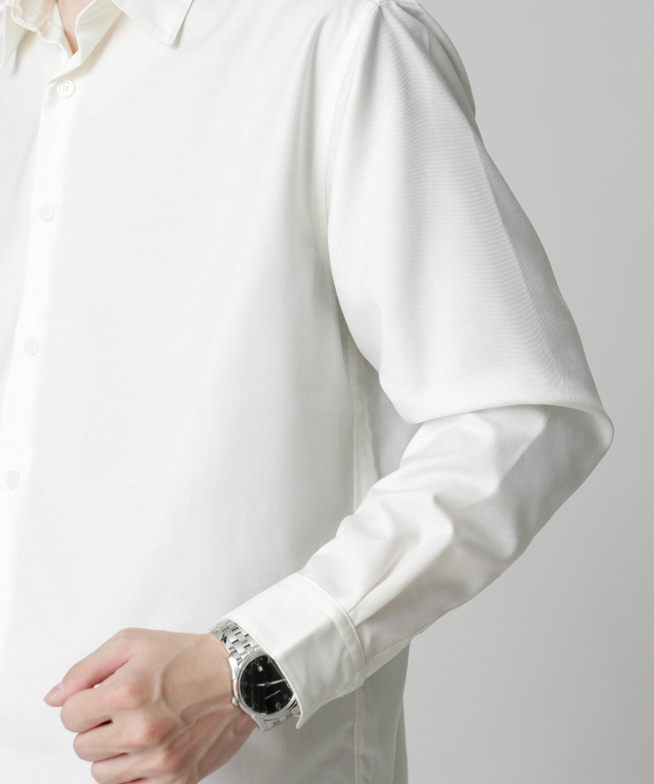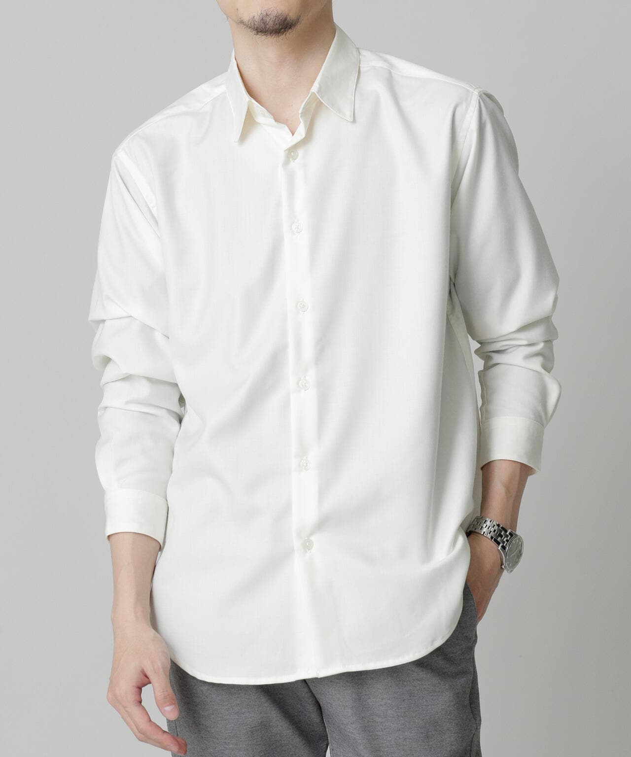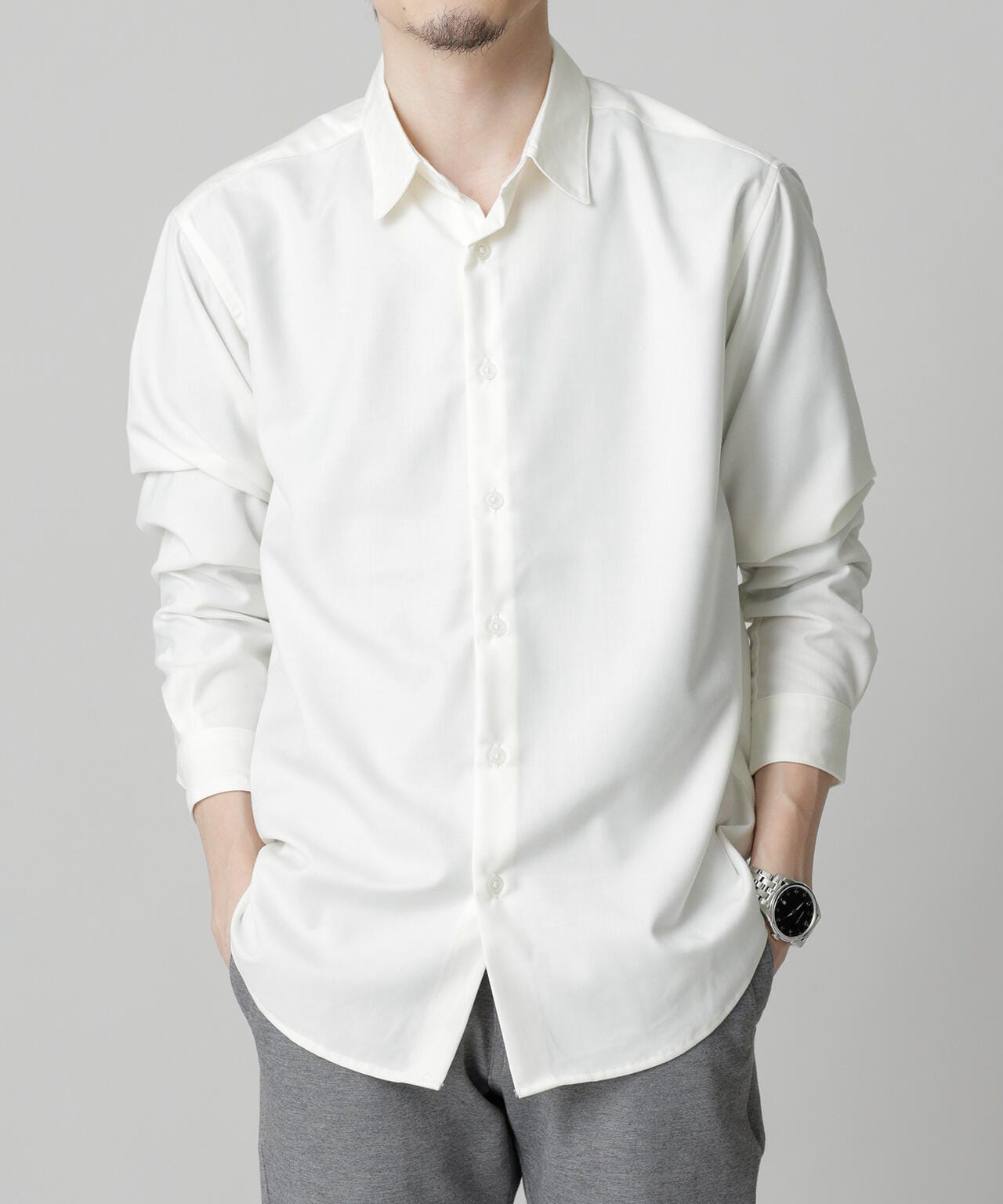 ドレープ感があり、微起毛した表面感が特徴のレギュラーカラーシャツ。