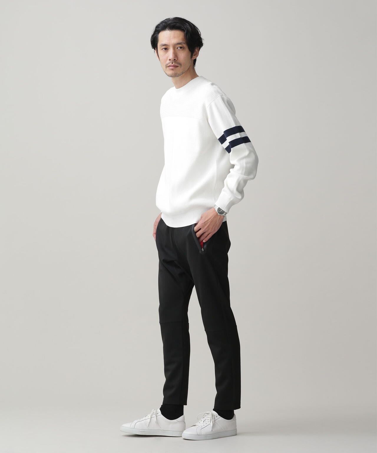 ナノの定番テックフリースパンツです。 毎シーズン細かなディティールやシルエット微修正を加え展開している定番的なパンツです。 今回使用した素材はソフトな肌触りのポンチ素材、伸縮性にも優れております。 程よくテーパードを利かしたシルエットは美脚効果抜群のカジュアルパンツです。