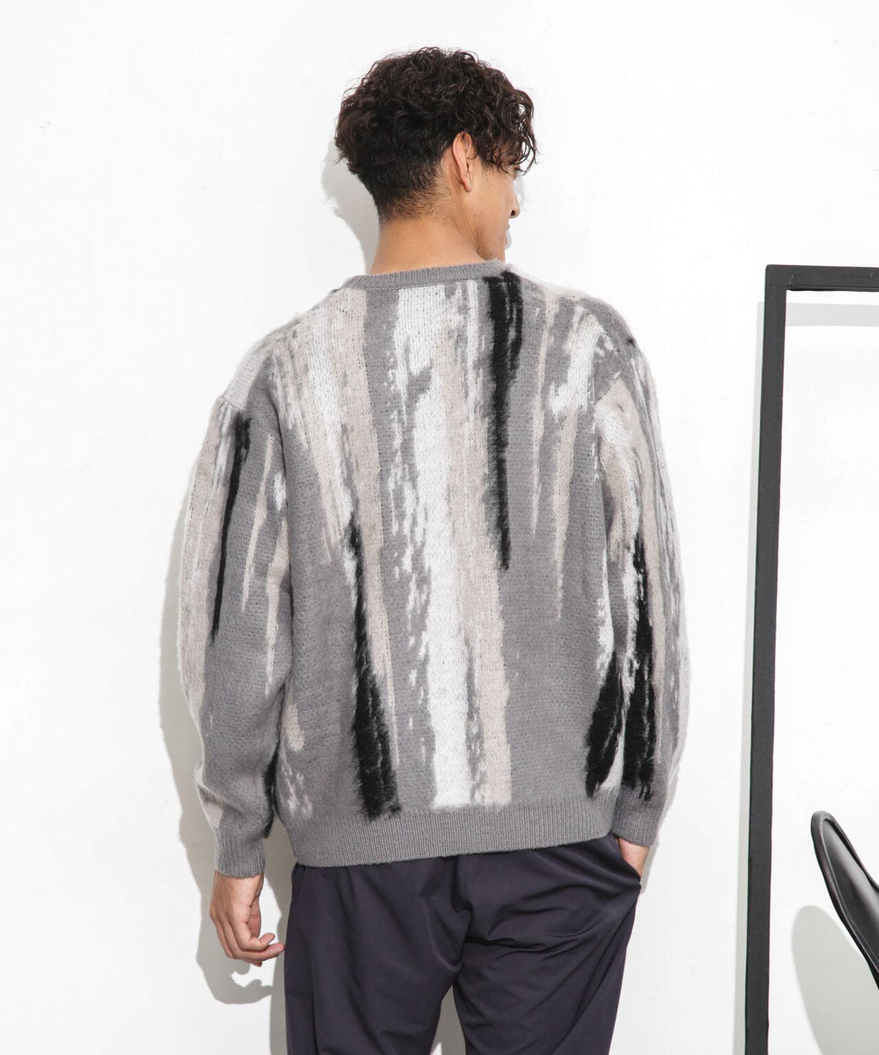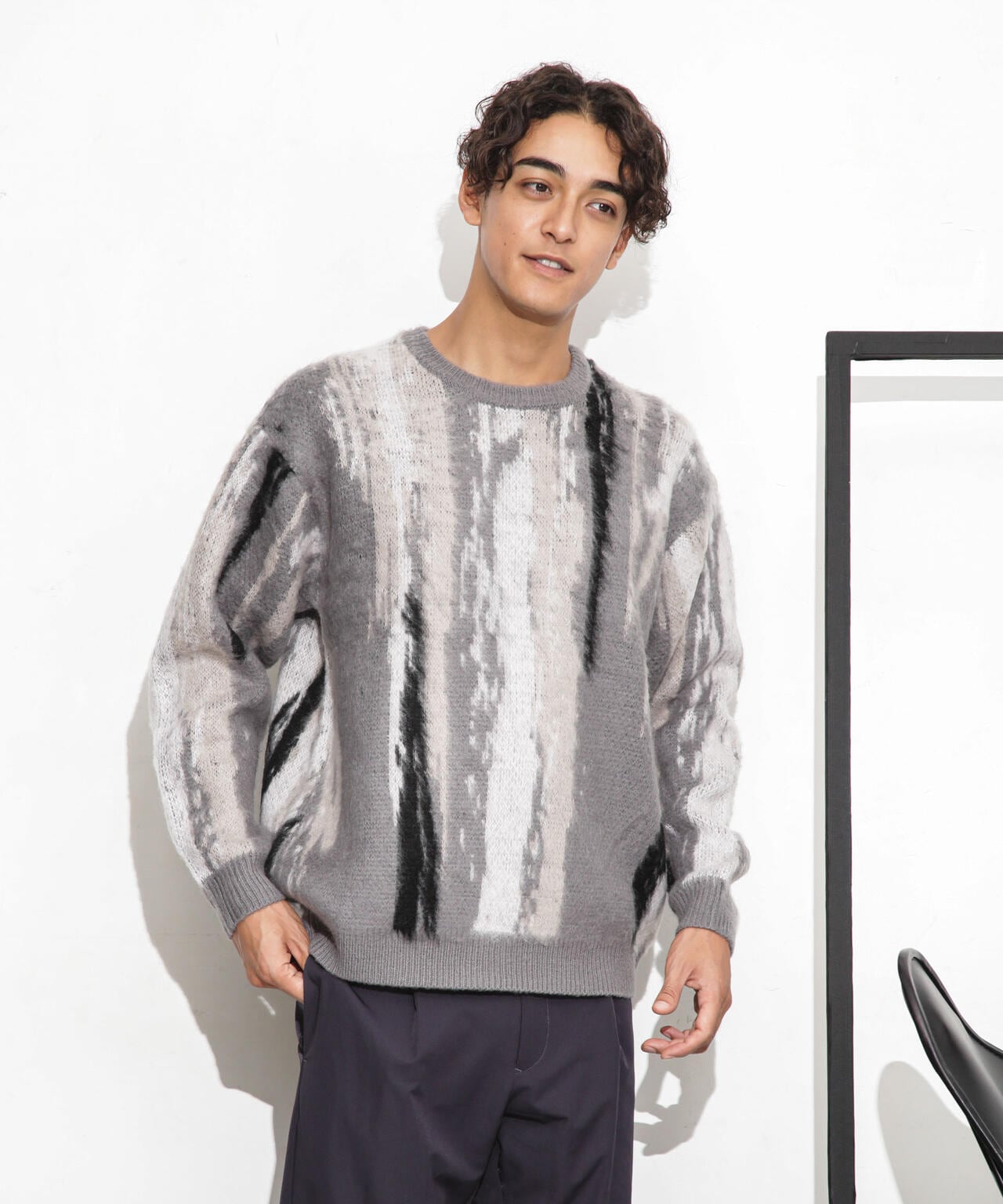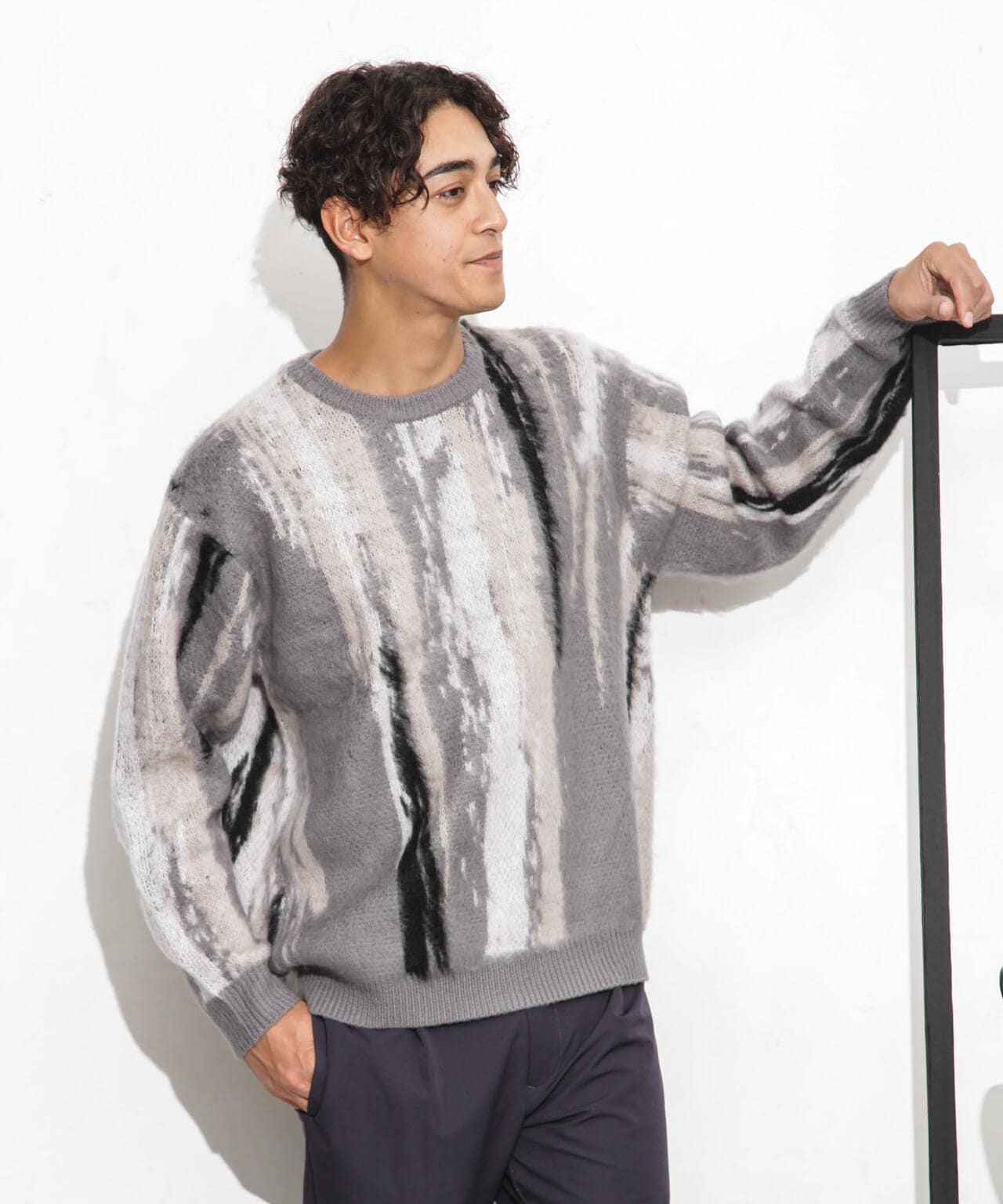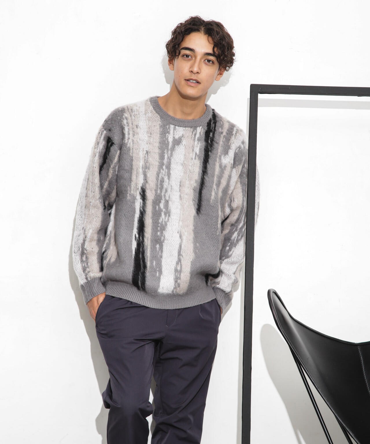 モヘヤニットのようなふんわりとした肌触りのニットプルオーバー。
