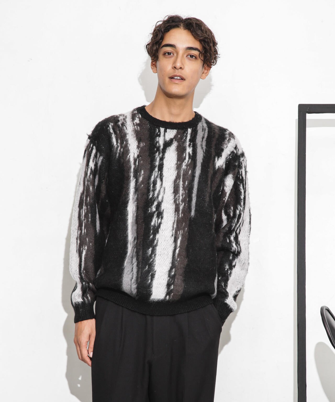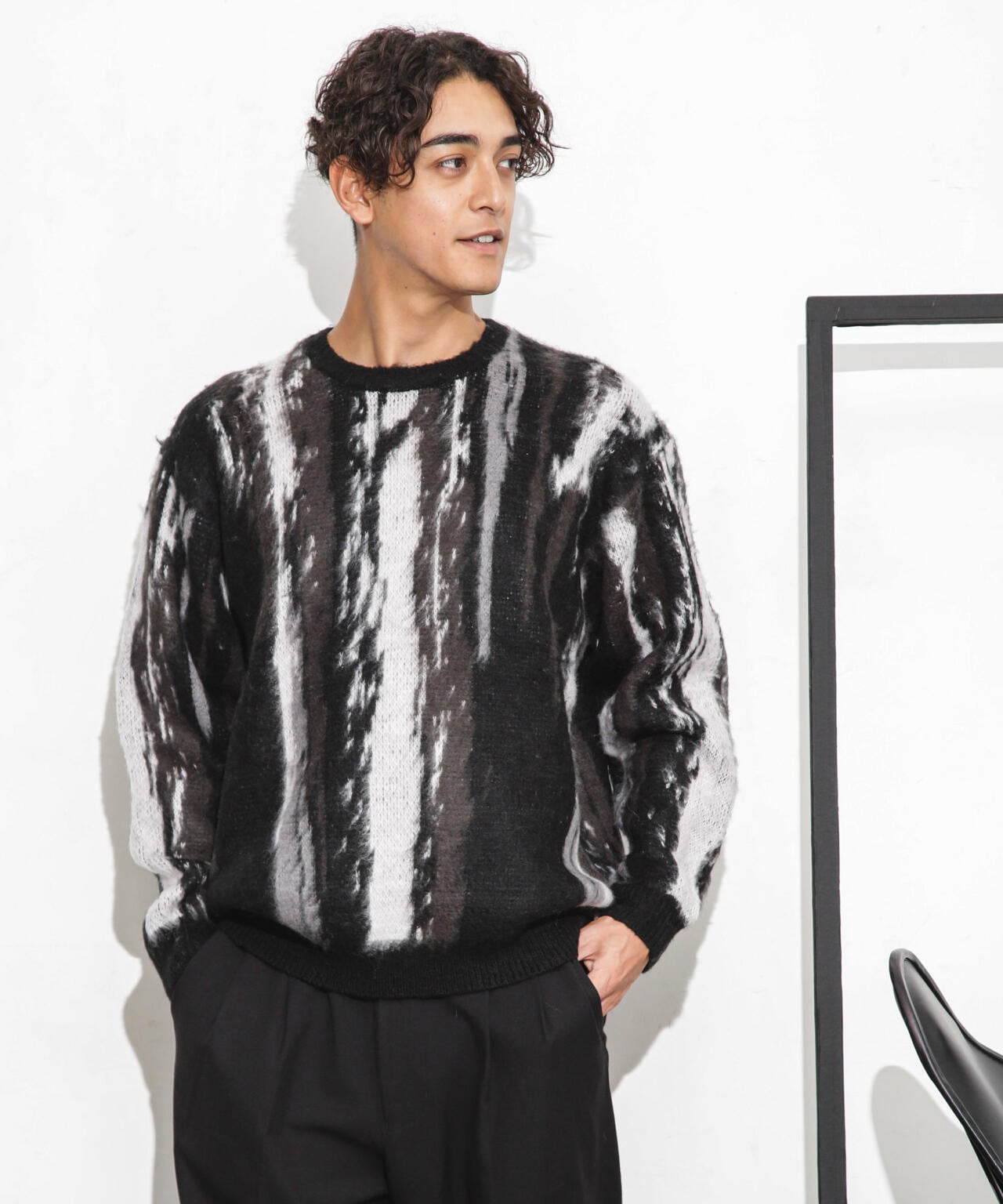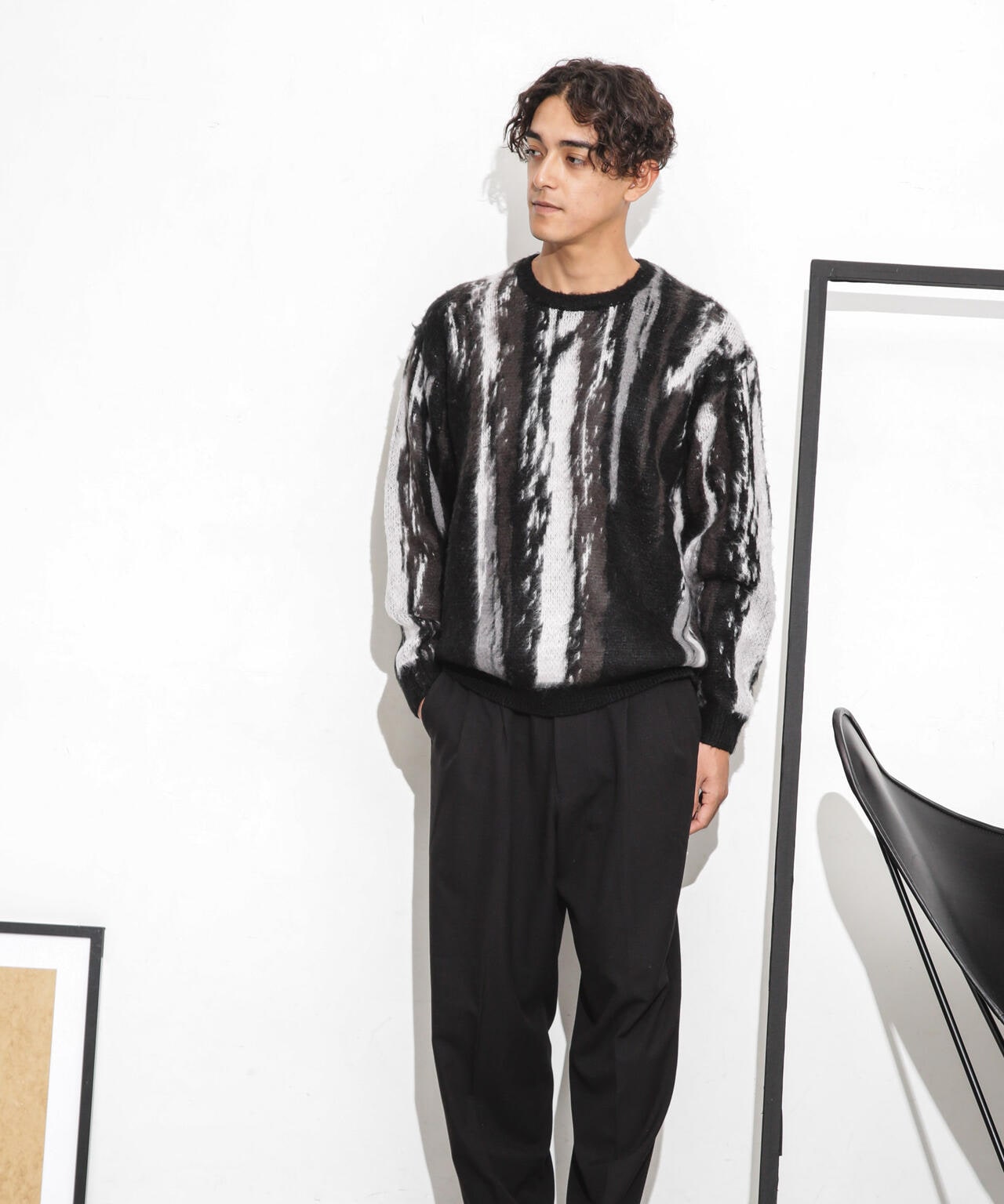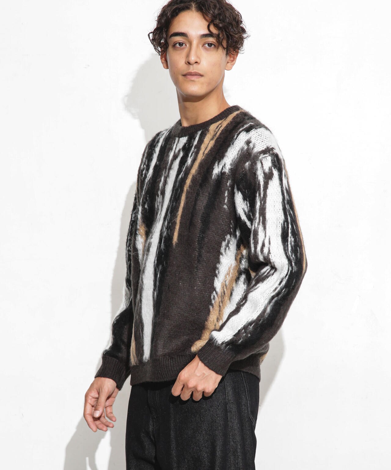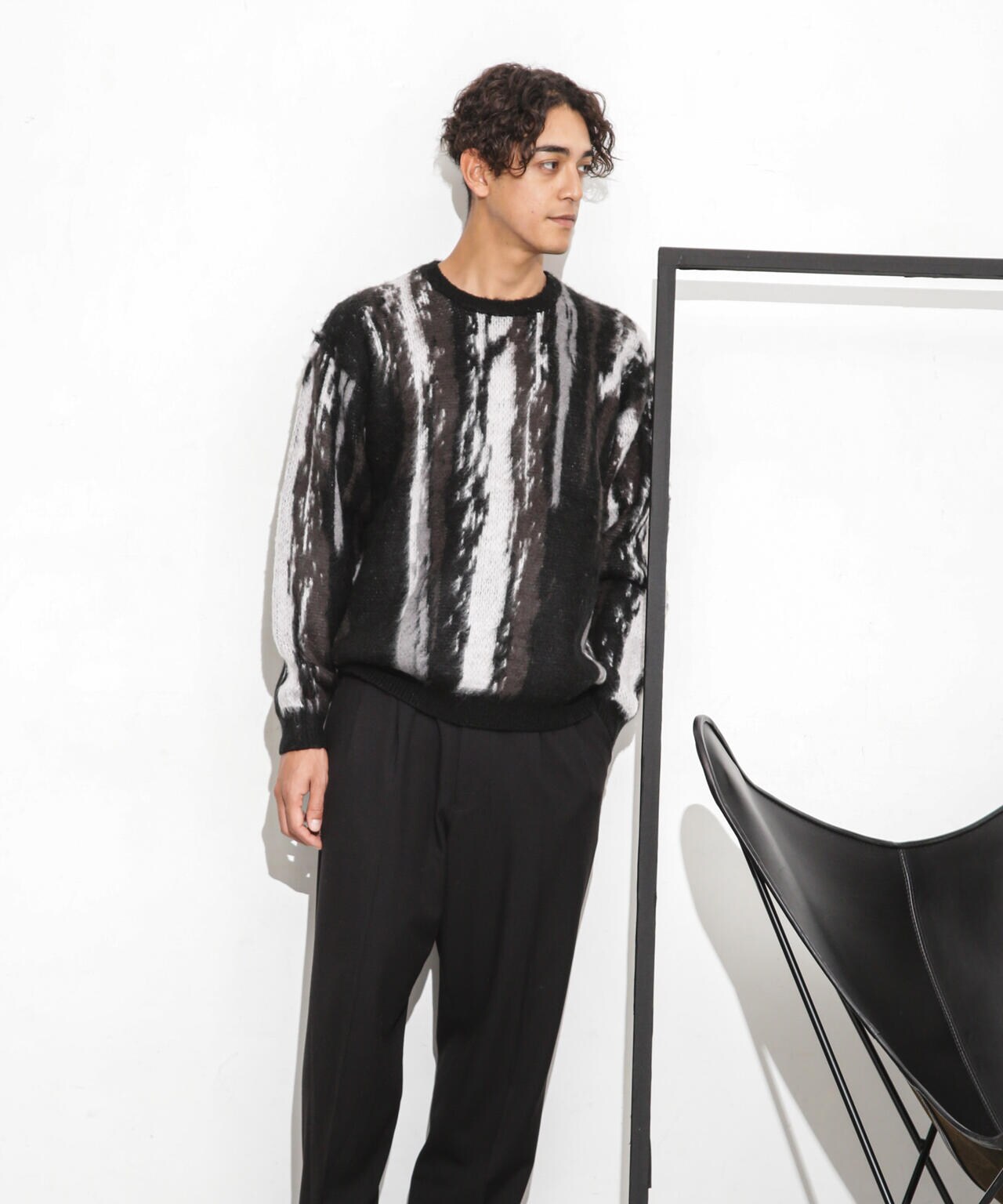 モヘヤニットのようなふんわりとした肌触りのニットプルオーバー。