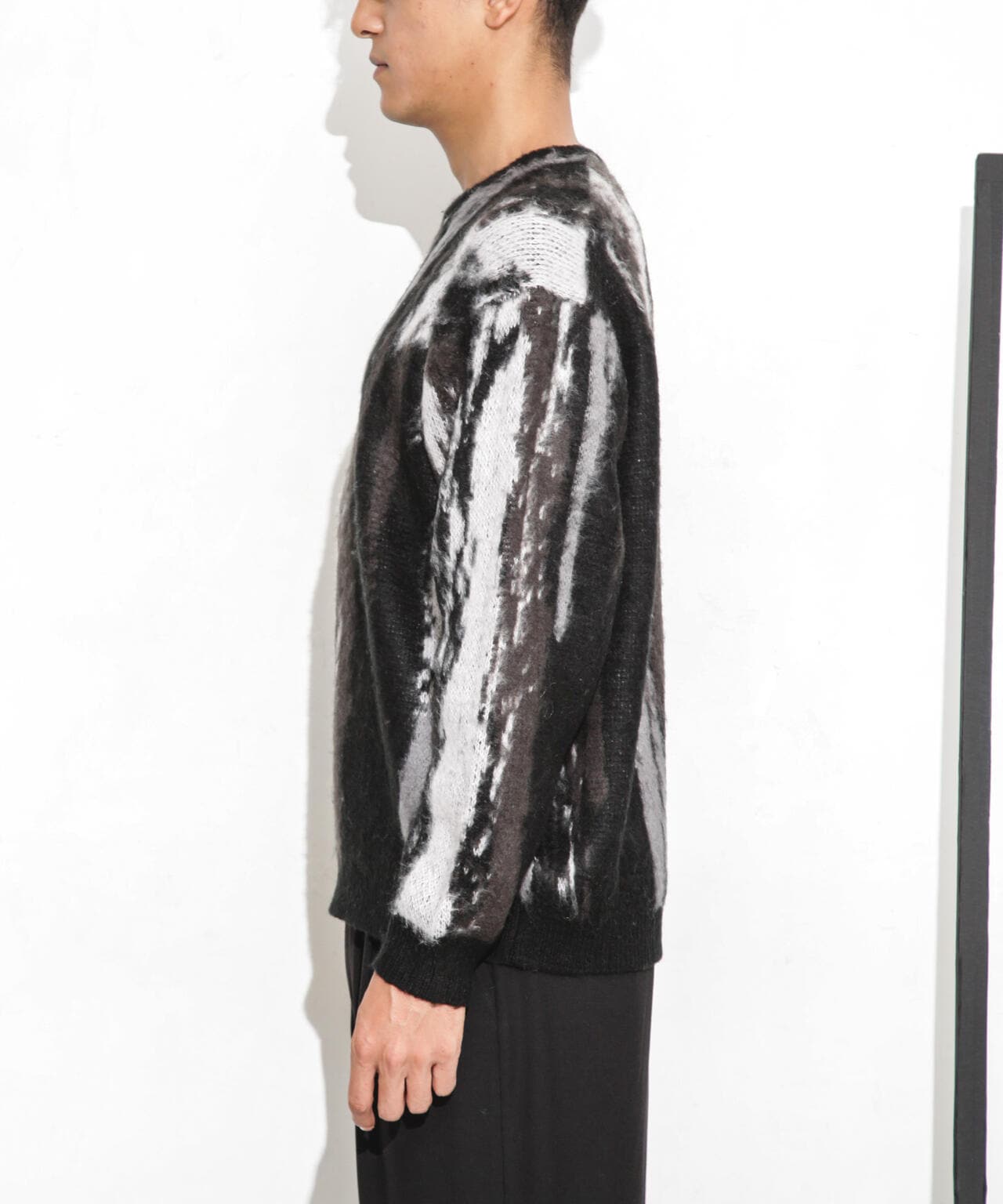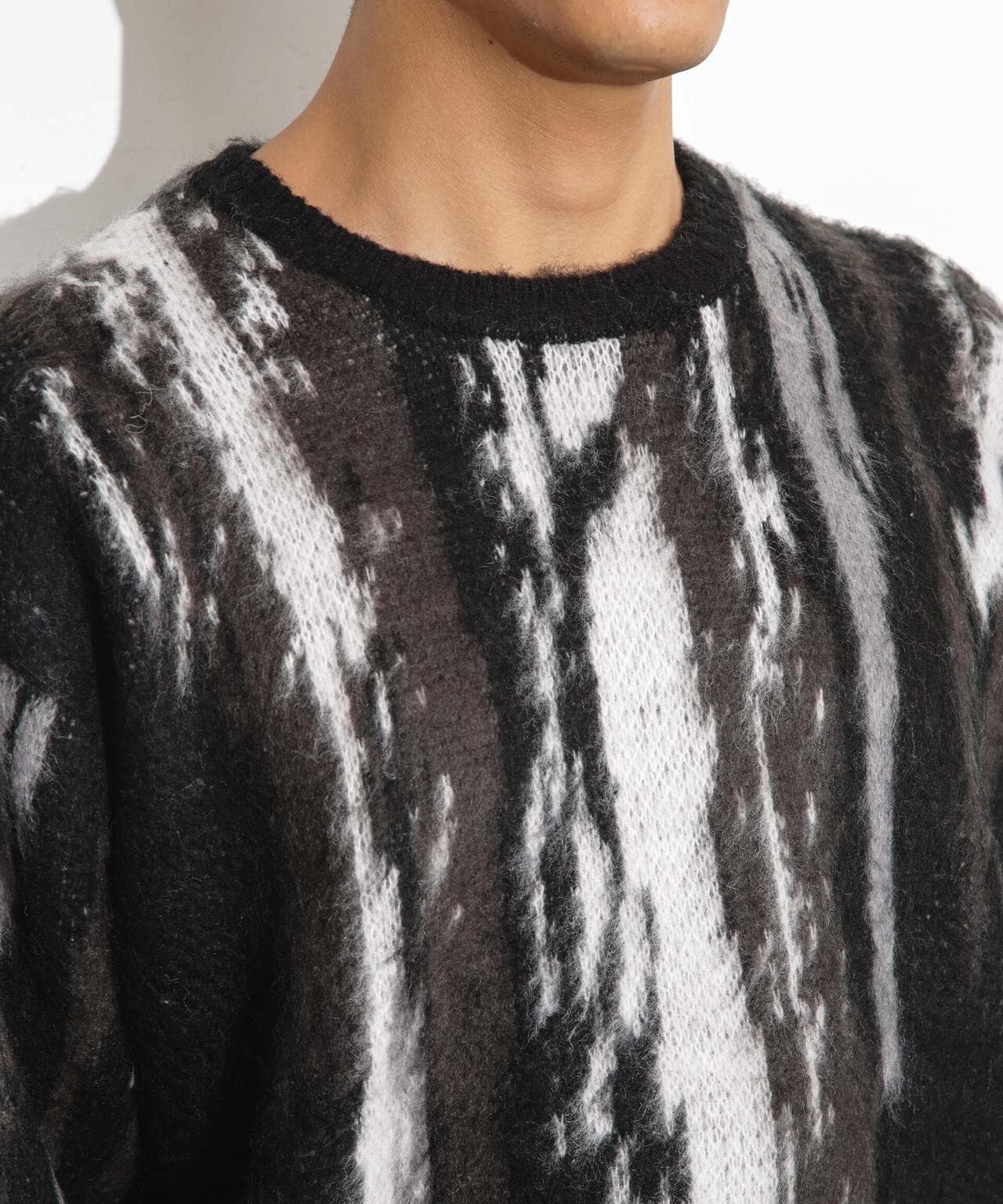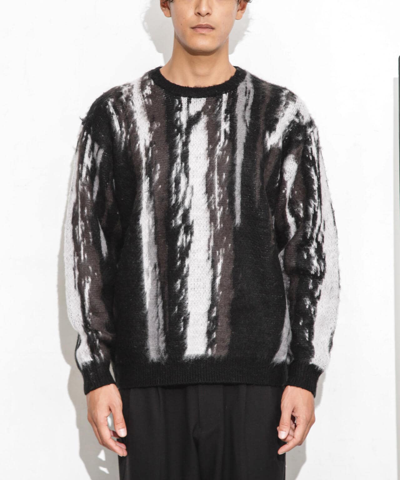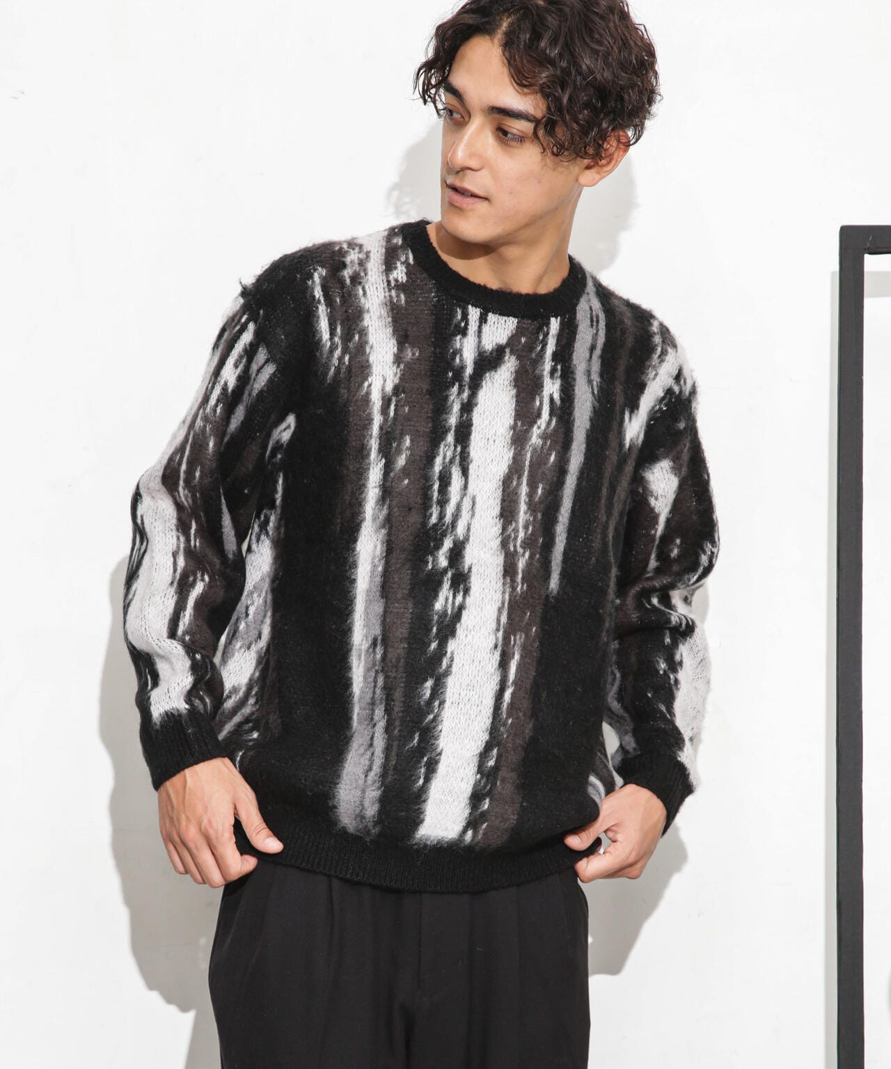 モヘヤニットのようなふんわりとした肌触りのニットプルオーバー。