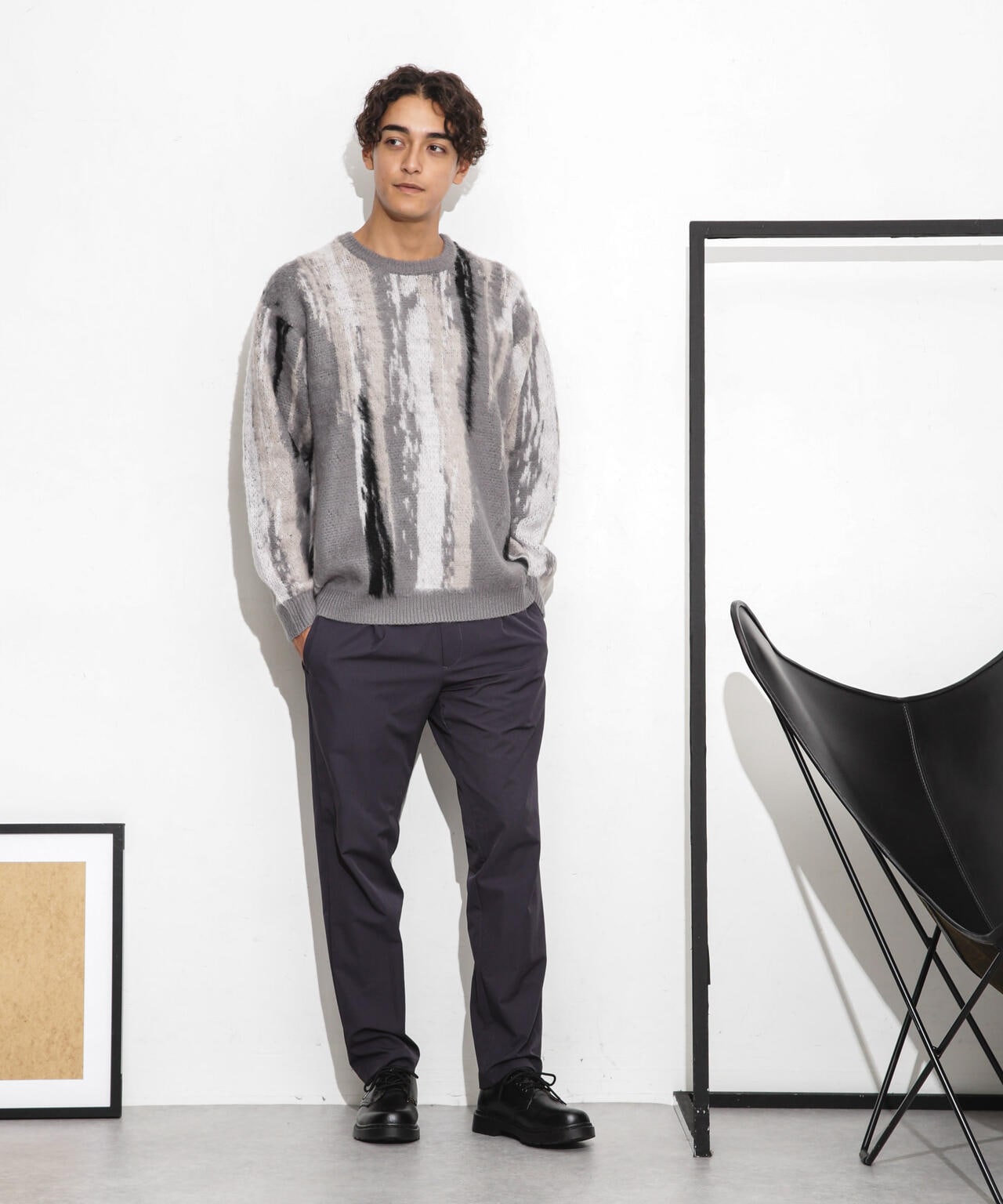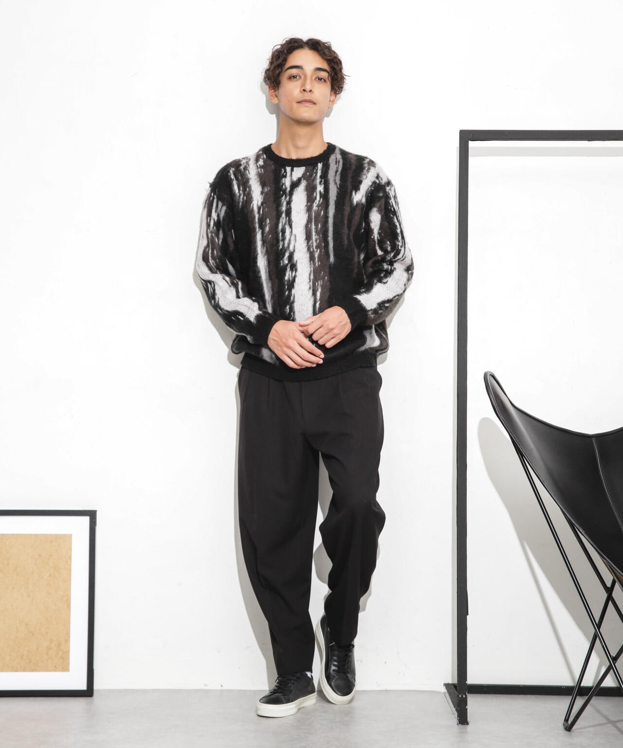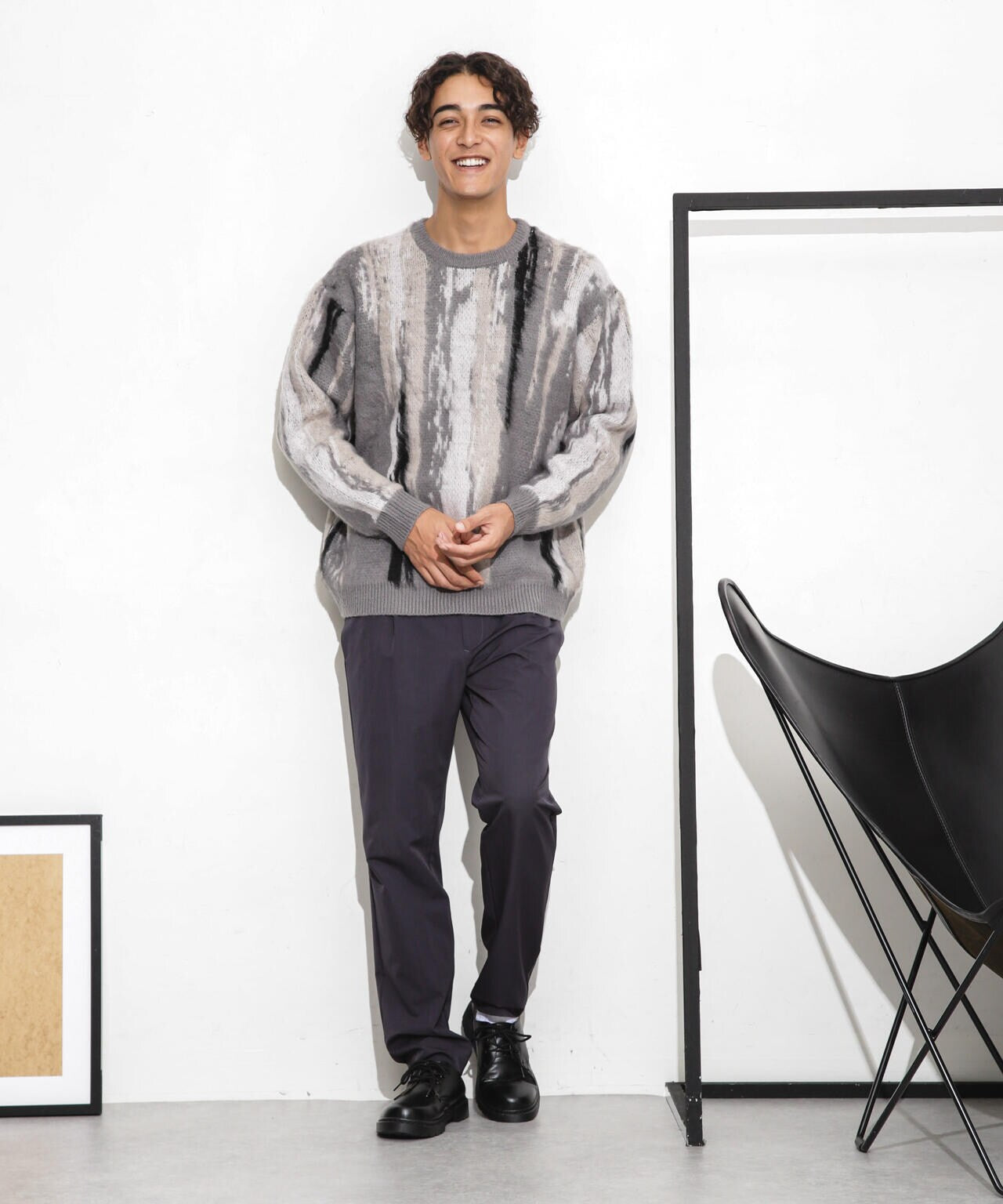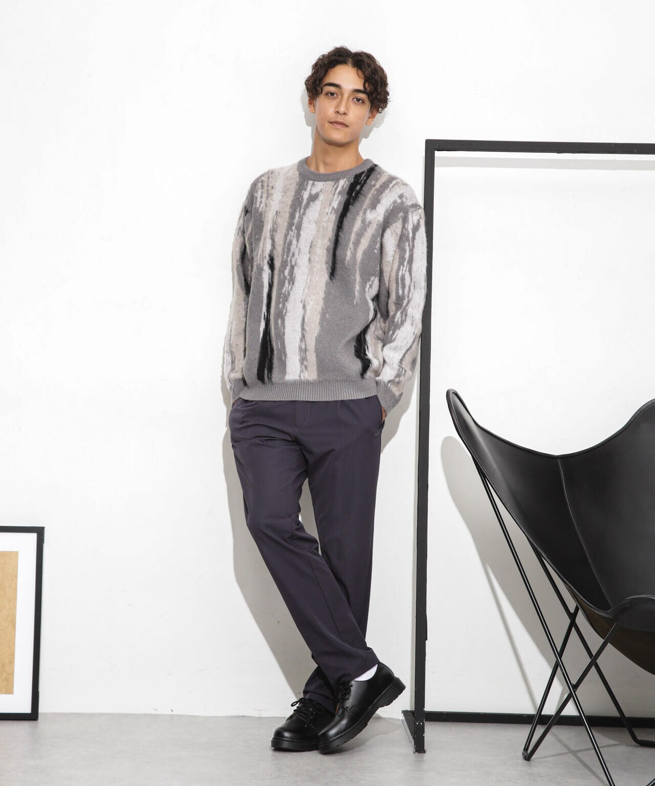 ベーシックコーデに飽きた方におすすめの総柄ニットです。