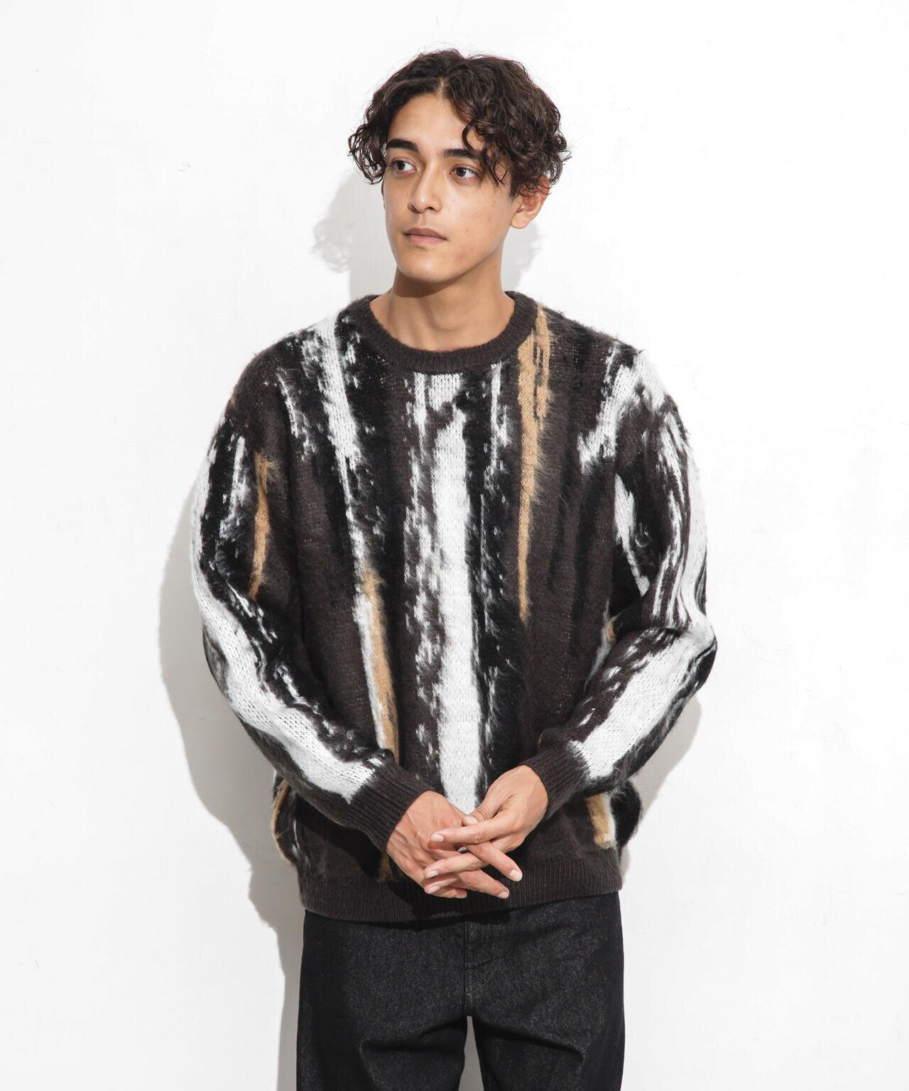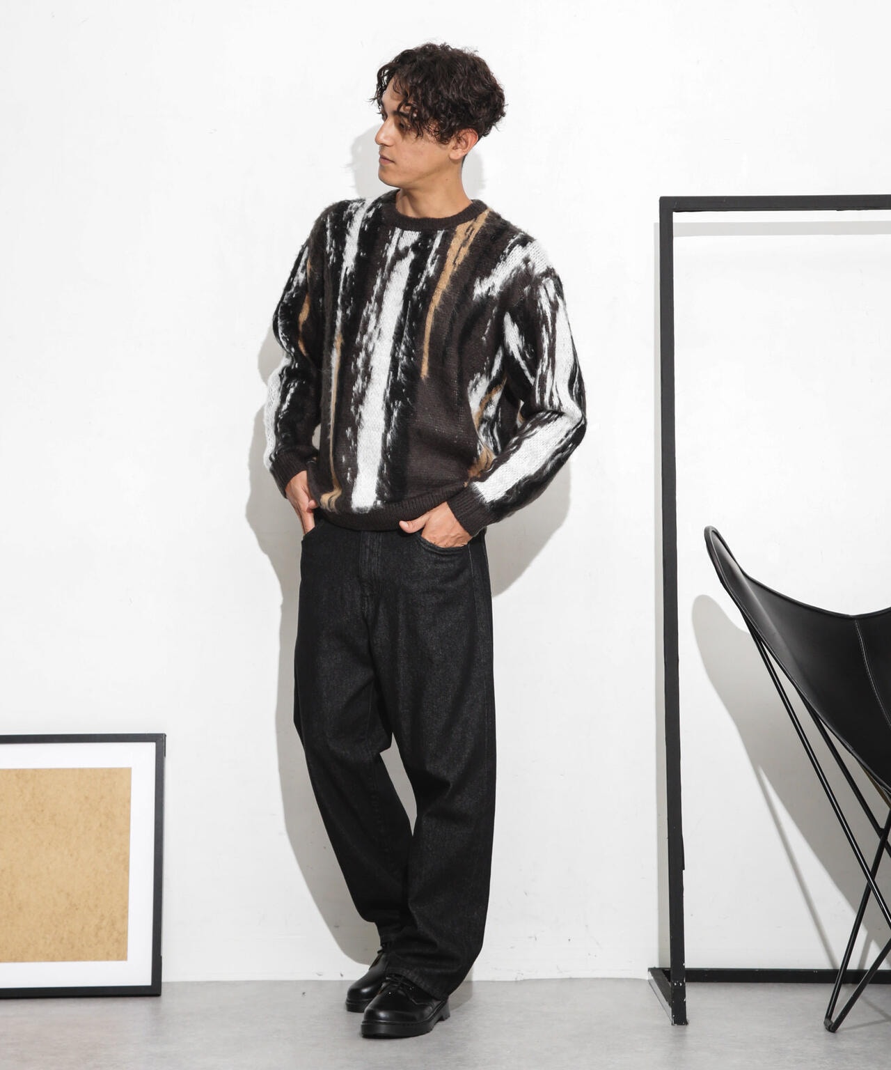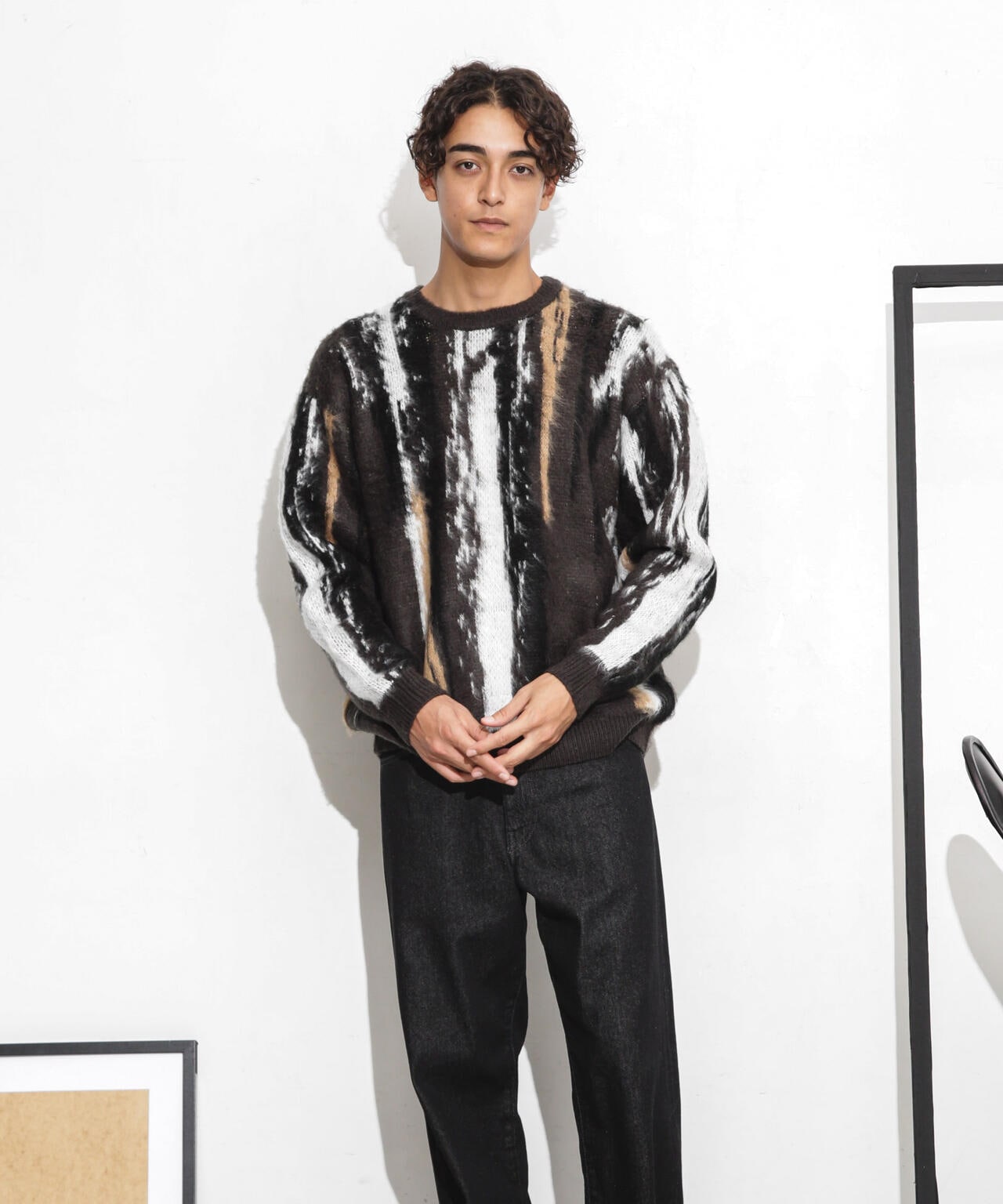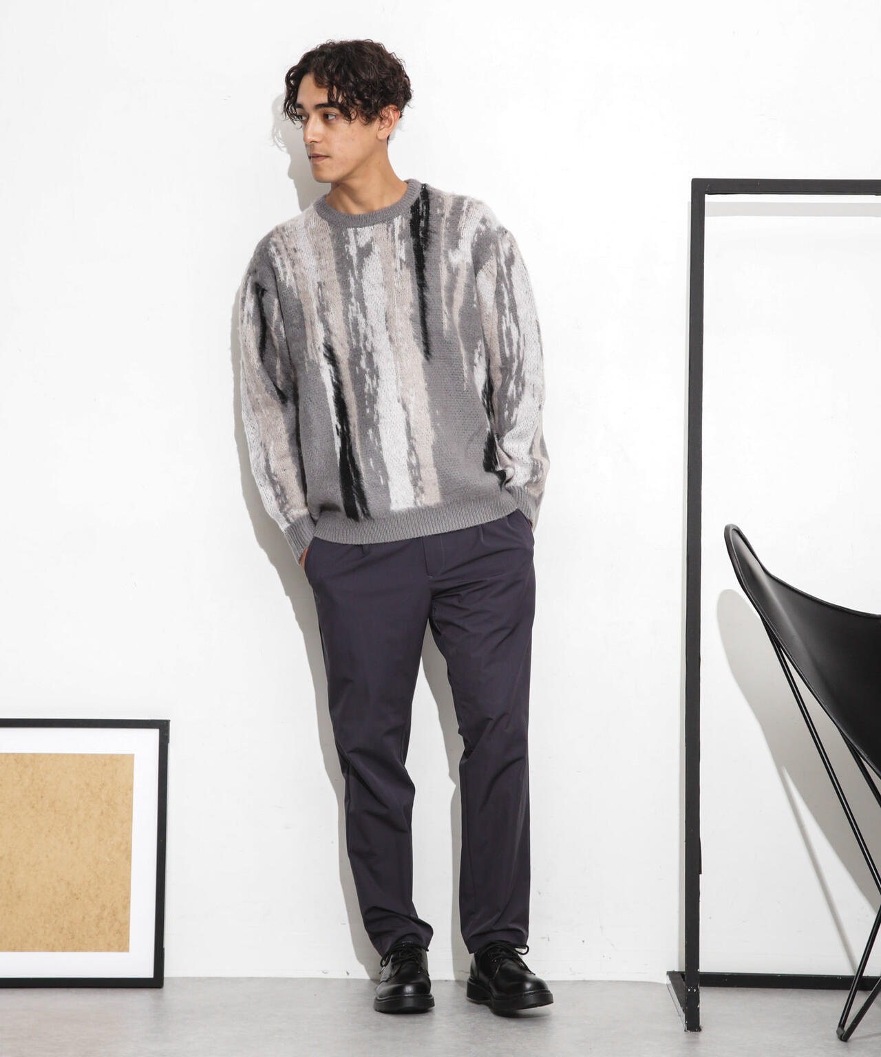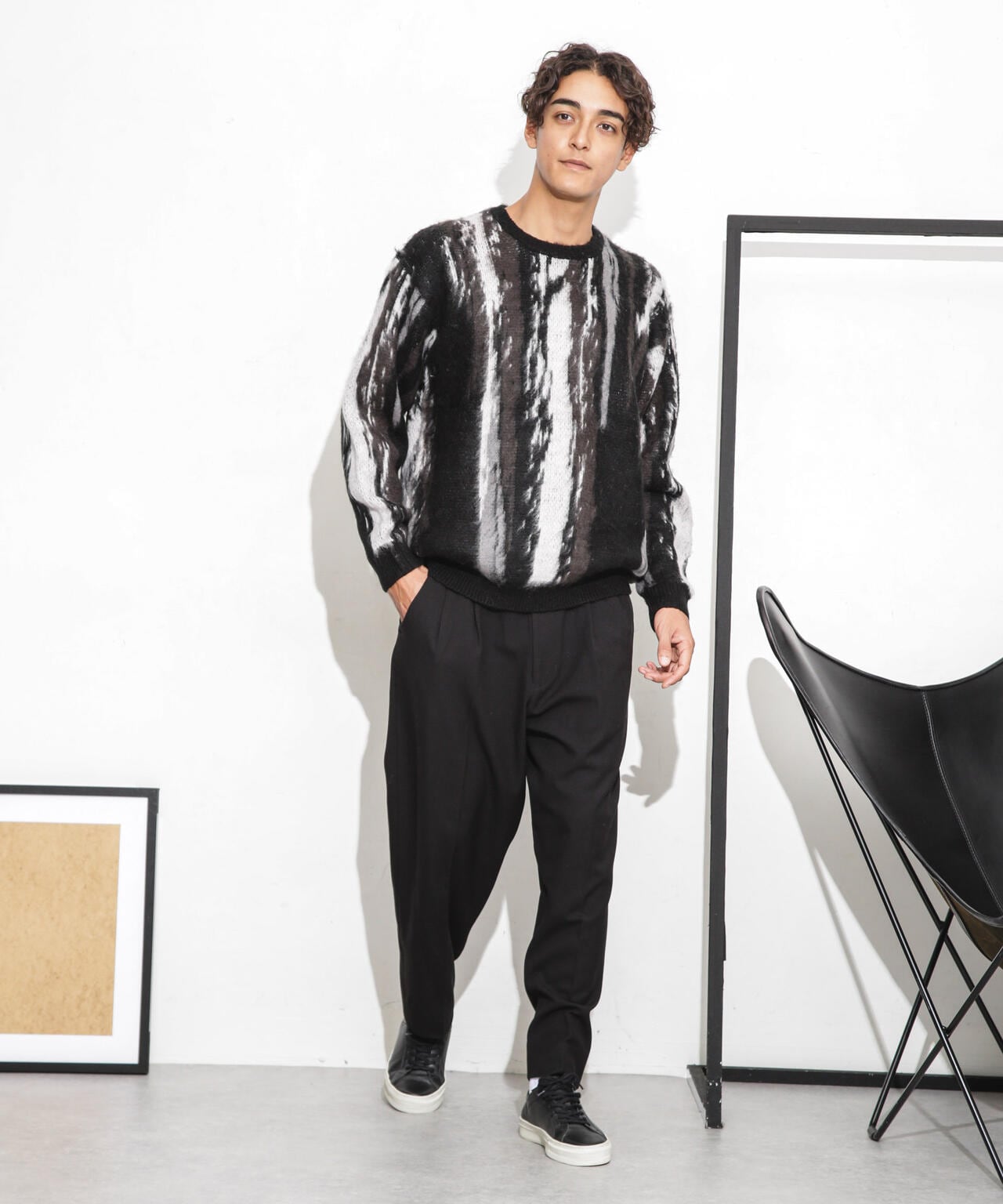 ベーシックコーデに飽きた方におすすめの総柄ニットです。