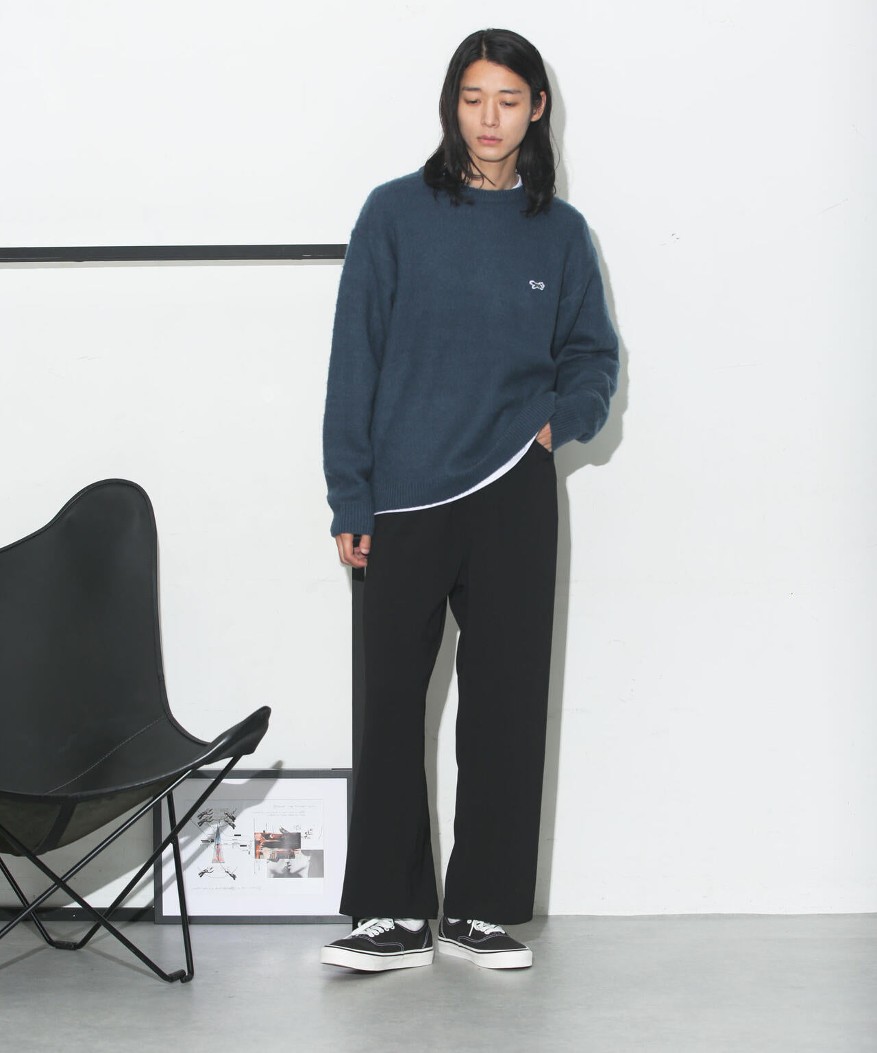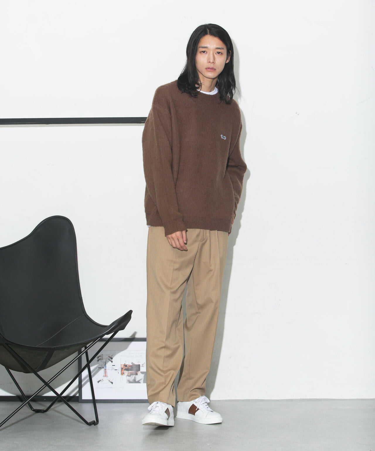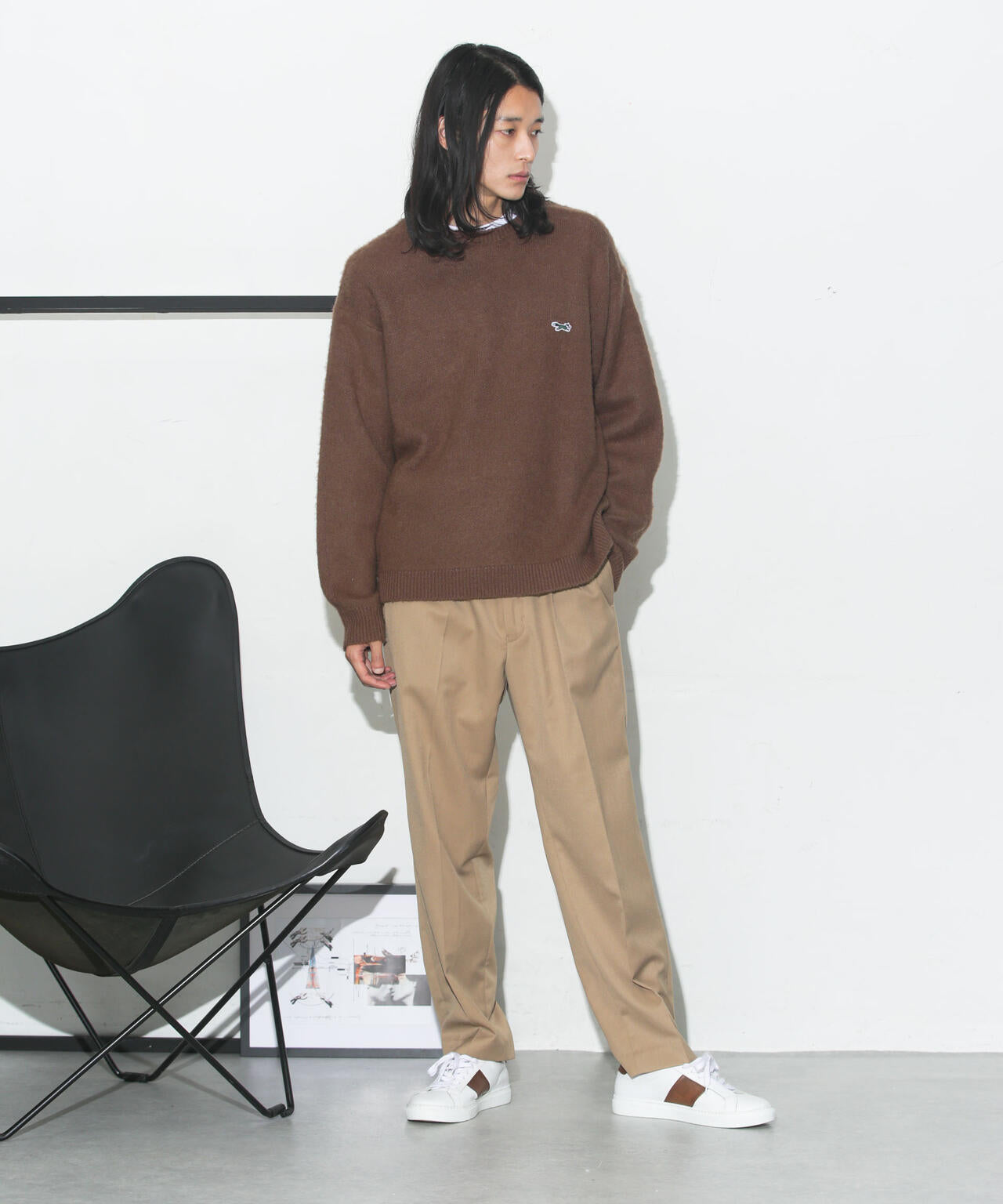 たっぷりとしたゆとりのあるシルエットとシンプルなルックスでスラックス、デニム、チノパンなど様々なボトムとも合わせやすい一着。