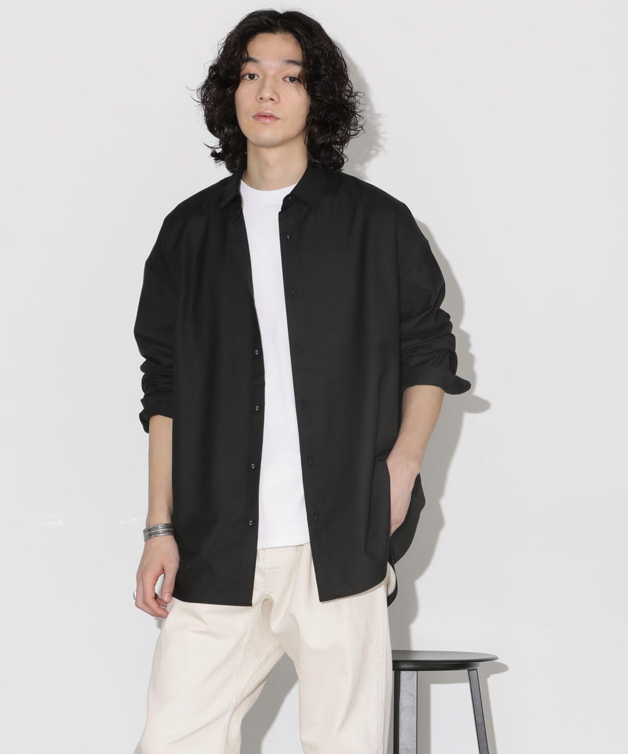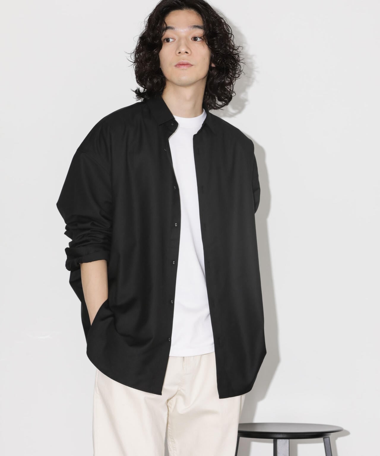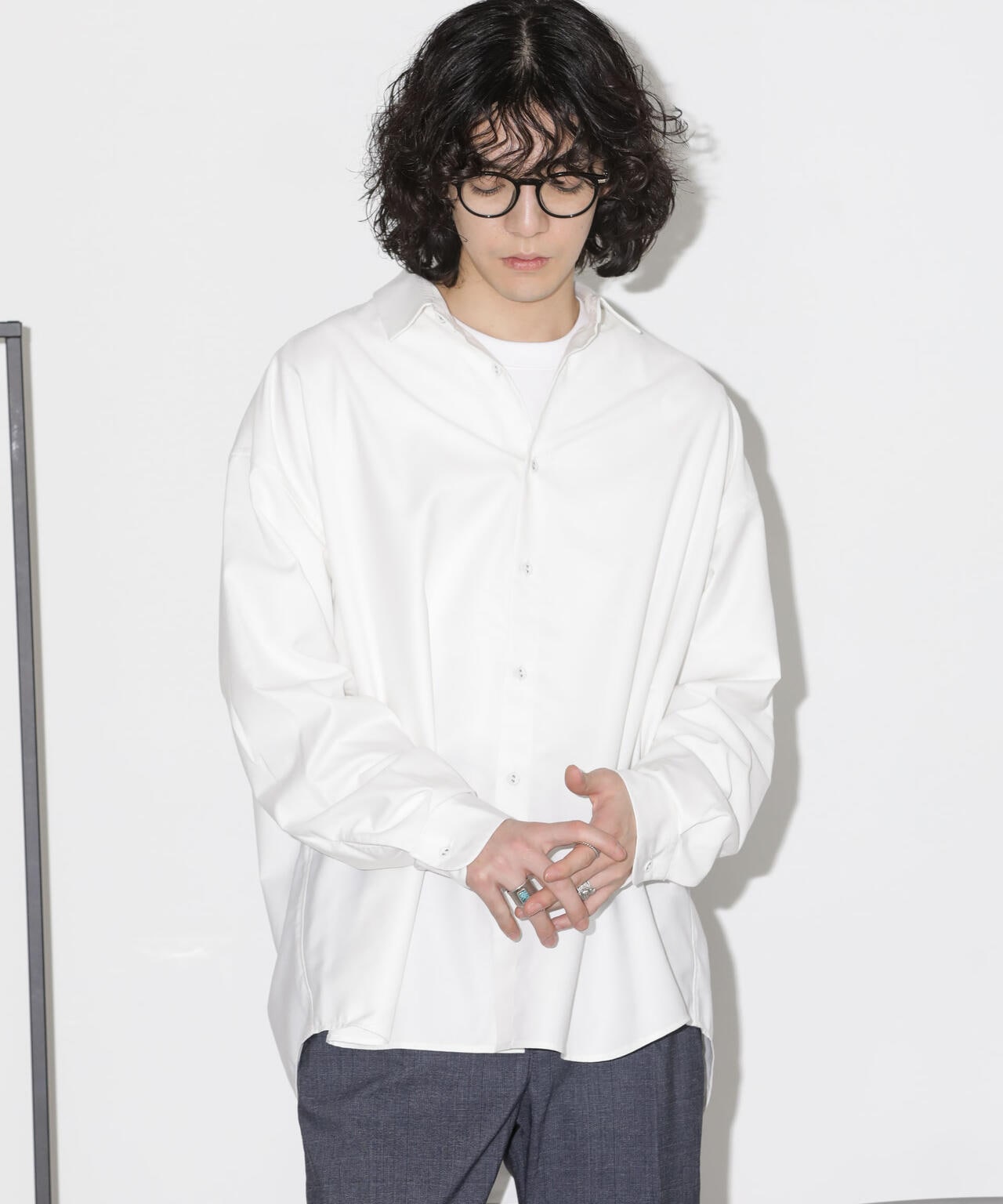 肩のラインが落ちるようなドロップデザインのシャツは、インナー使いとしてレイヤードスタイルにおすすめ◎