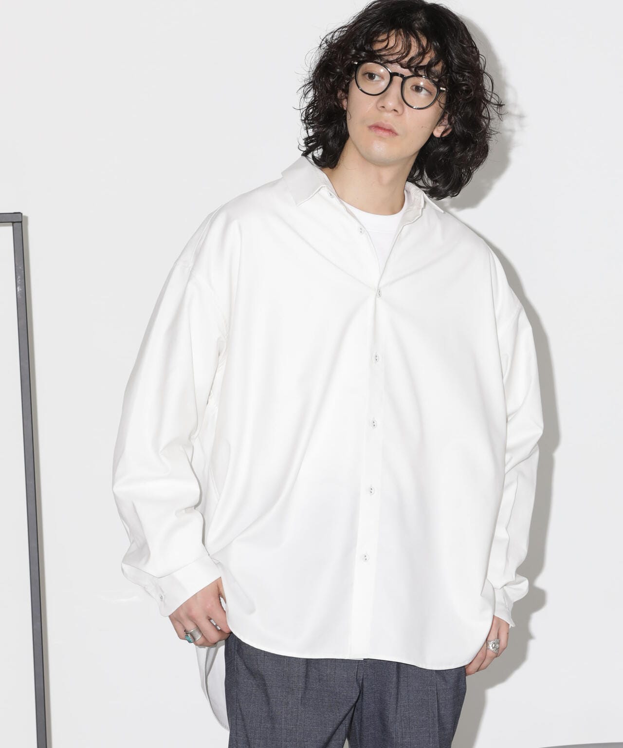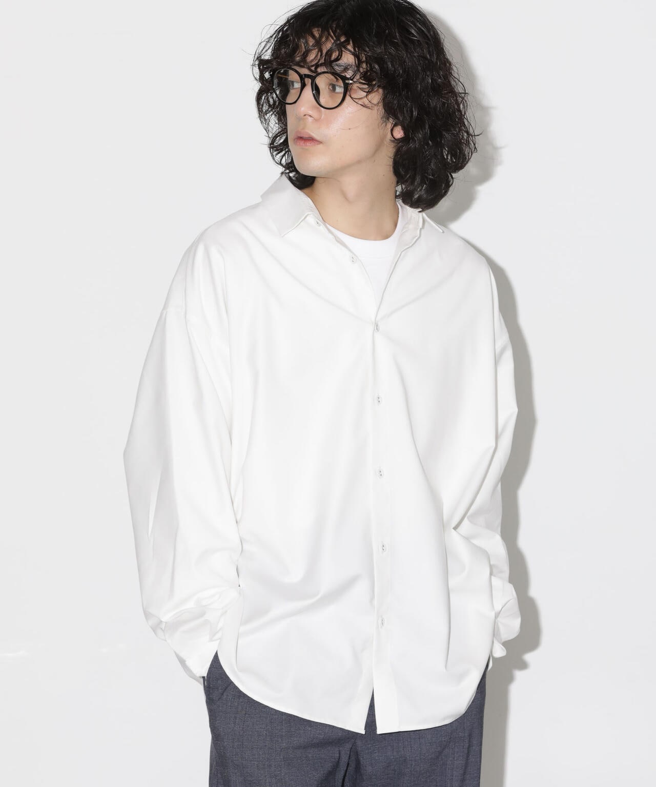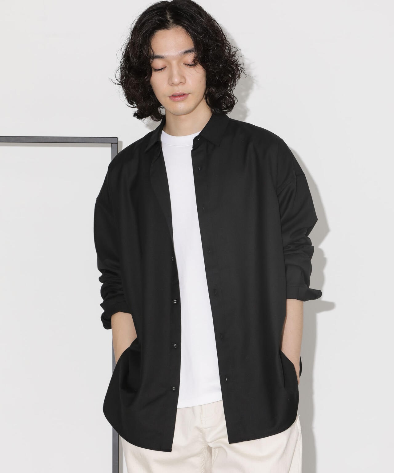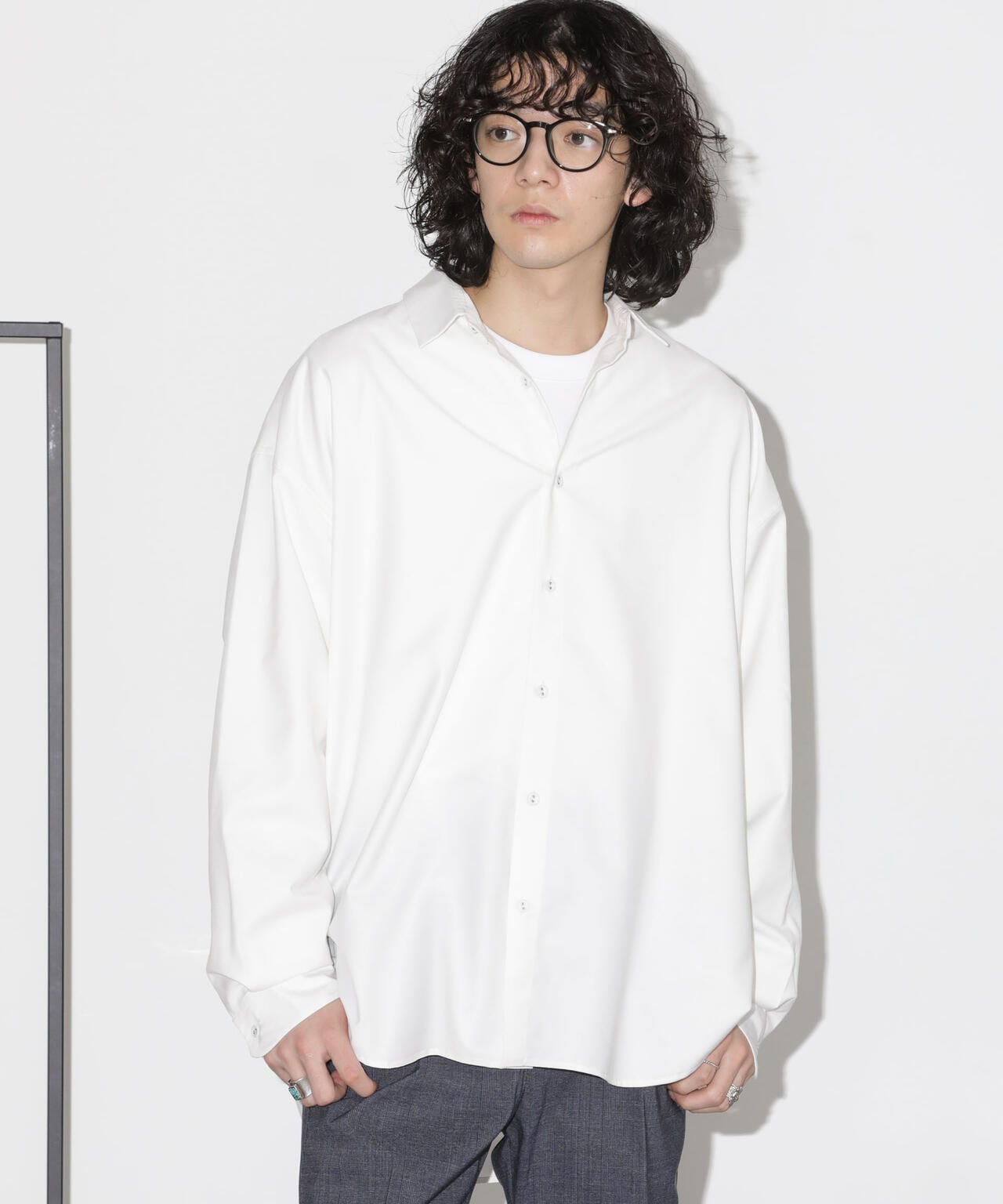 肩のラインが落ちるようなドロップデザインのシャツは、インナー使いとしてレイヤードスタイルにおすすめ◎