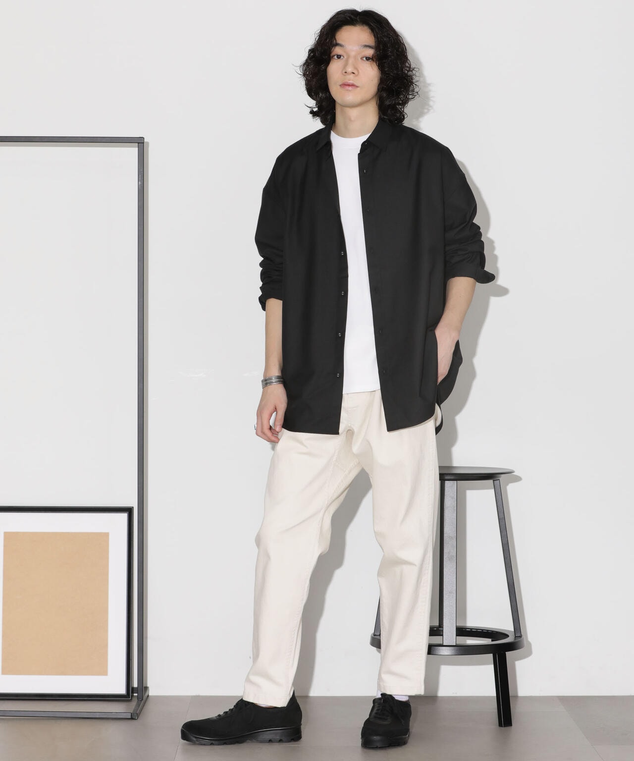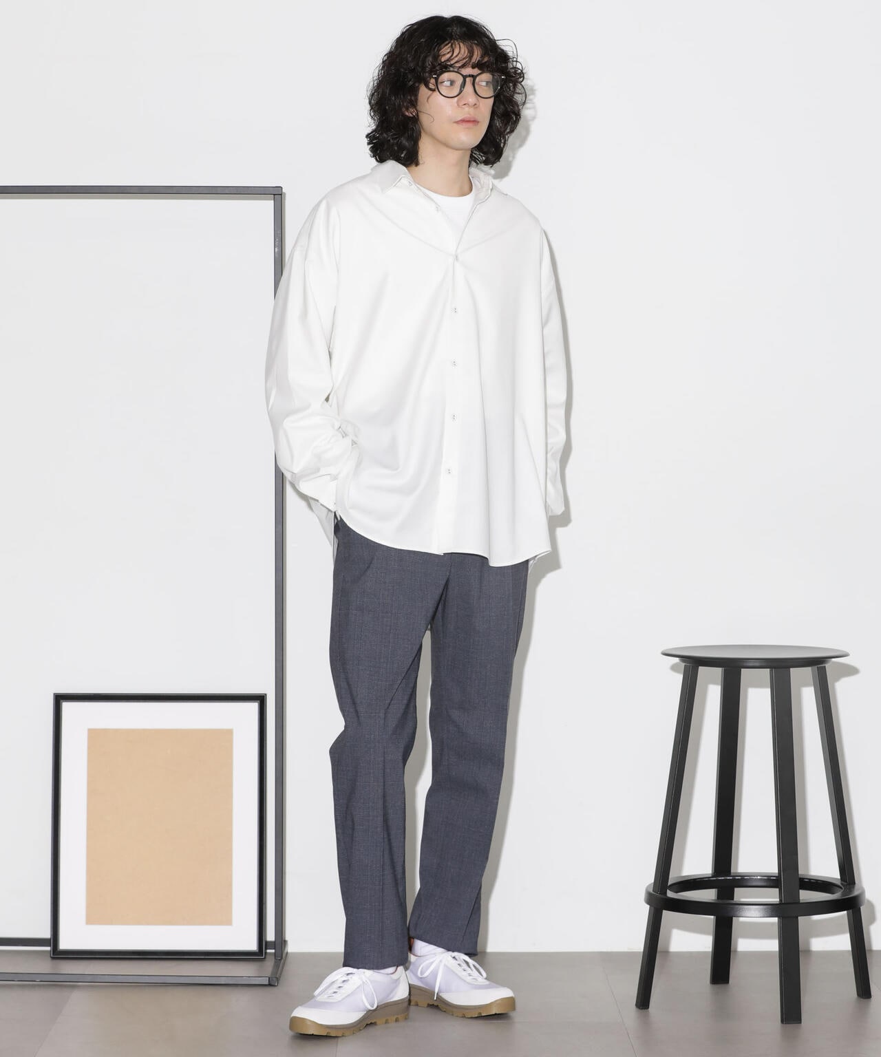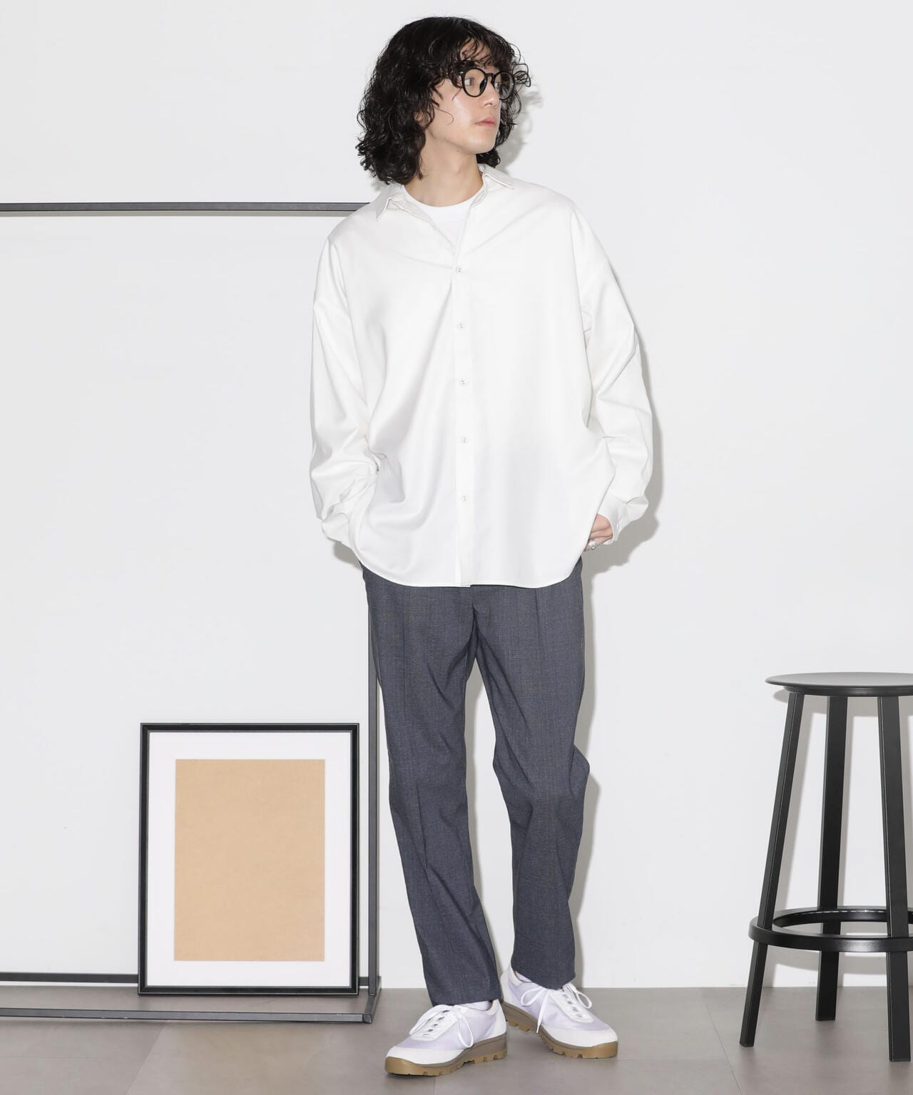 合わせるパンツを選ばない着まわしやすいシルエットも魅力で、タックインとの相性も◎
