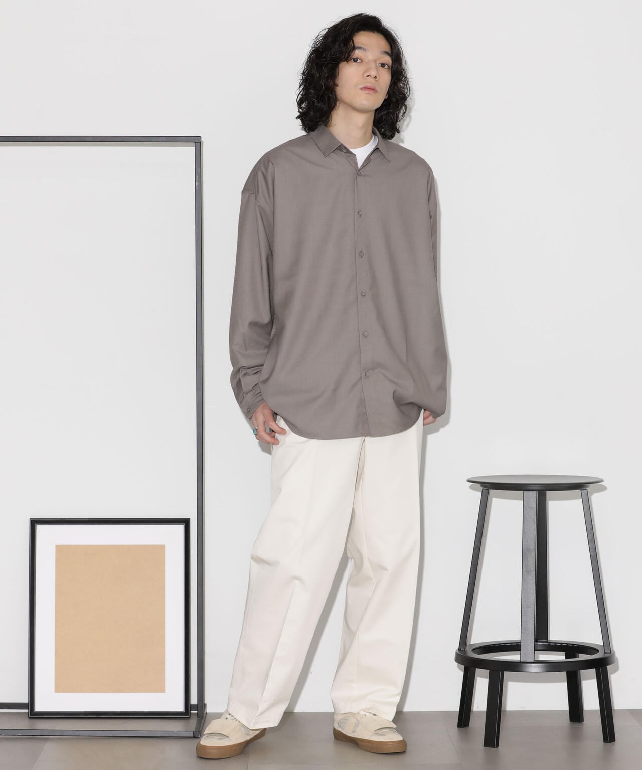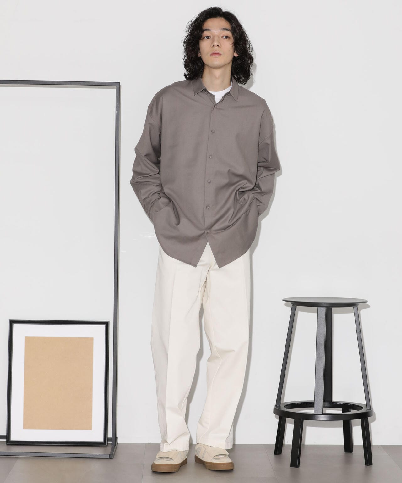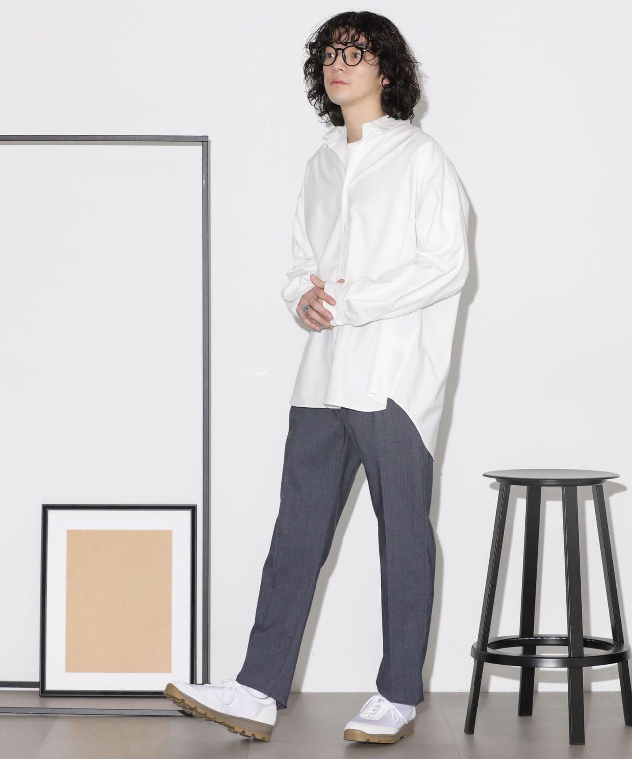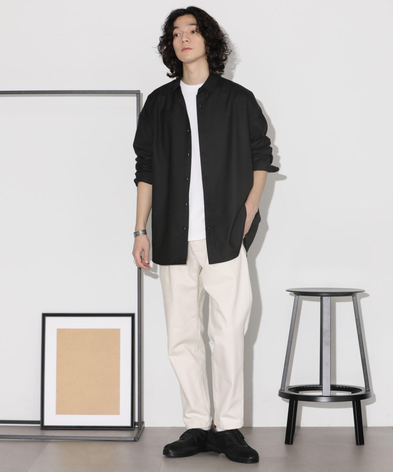 合わせるパンツを選ばない着まわしやすいシルエットも魅力で、タックインとの相性も◎