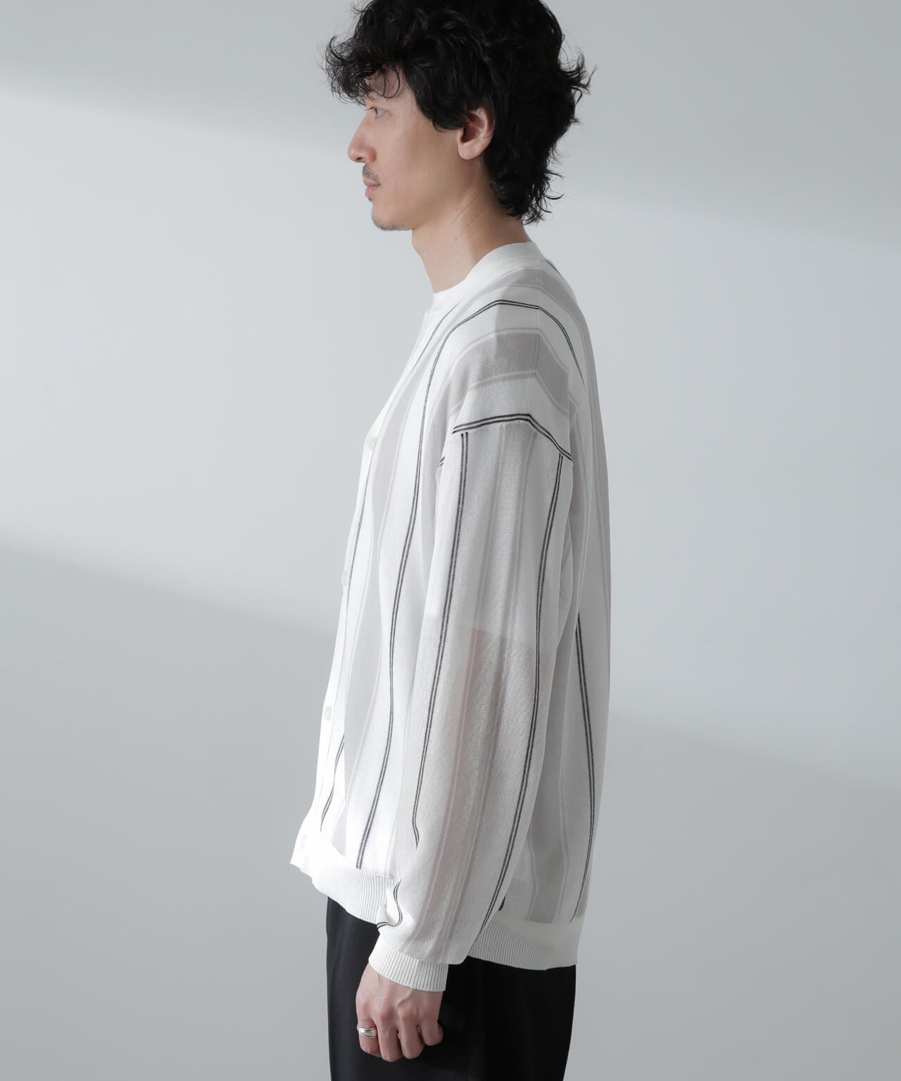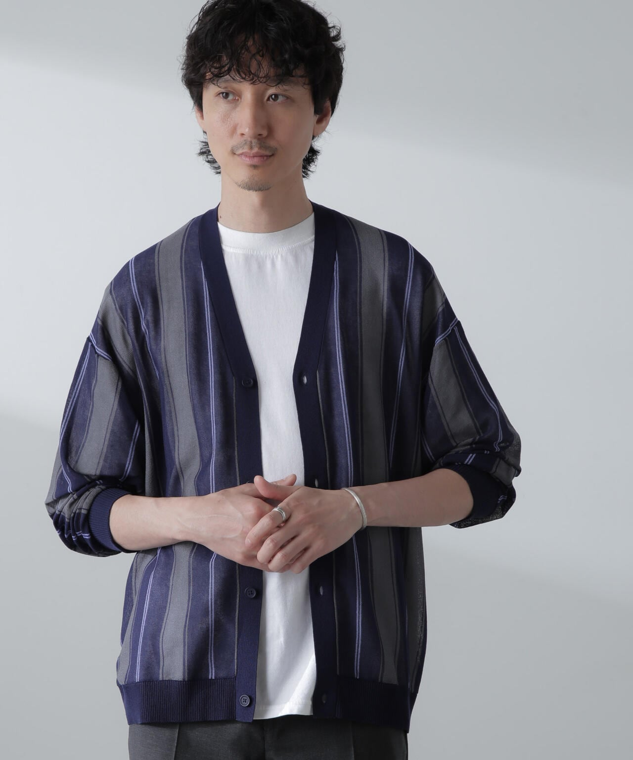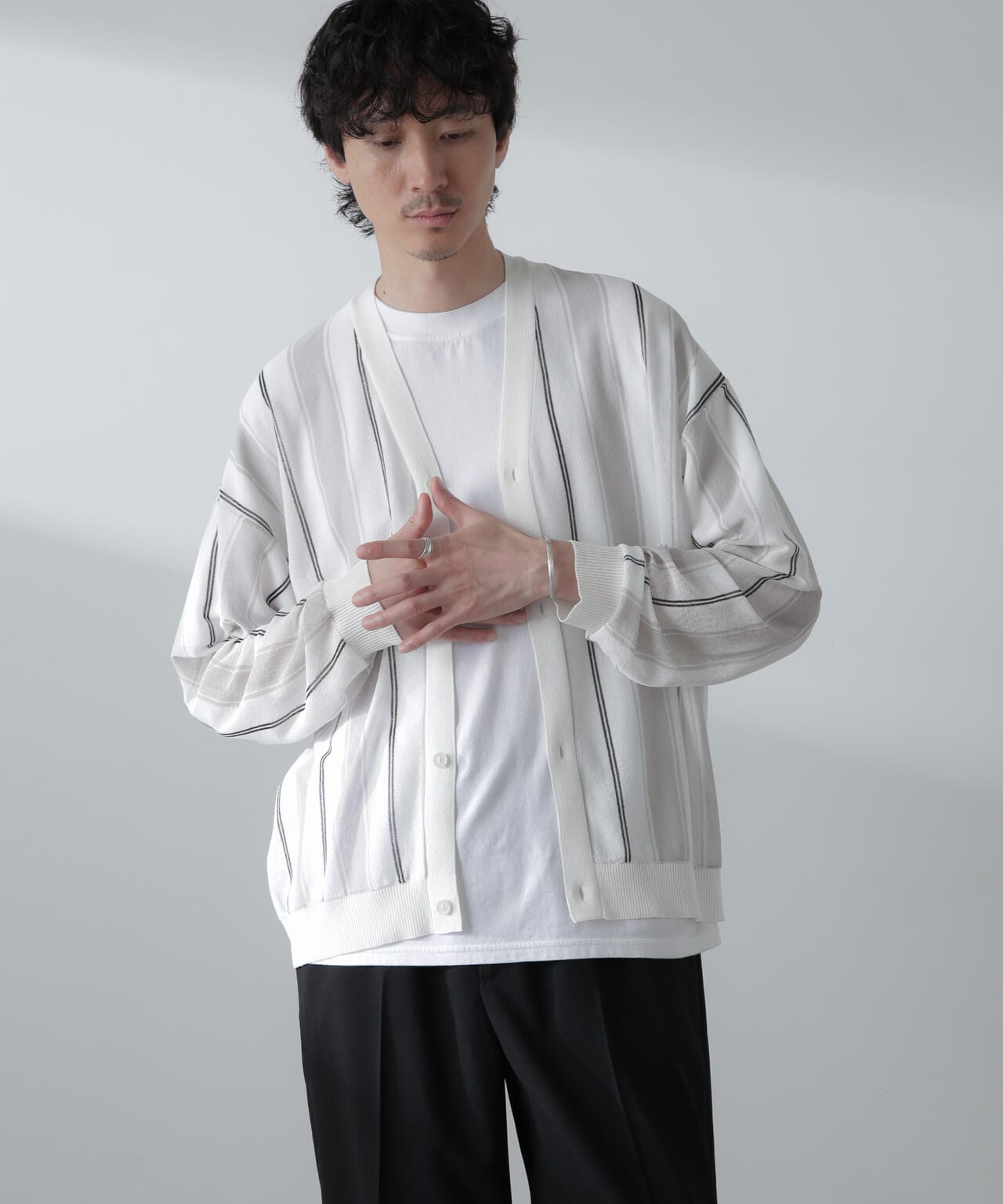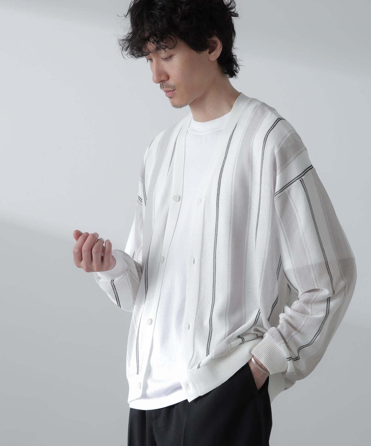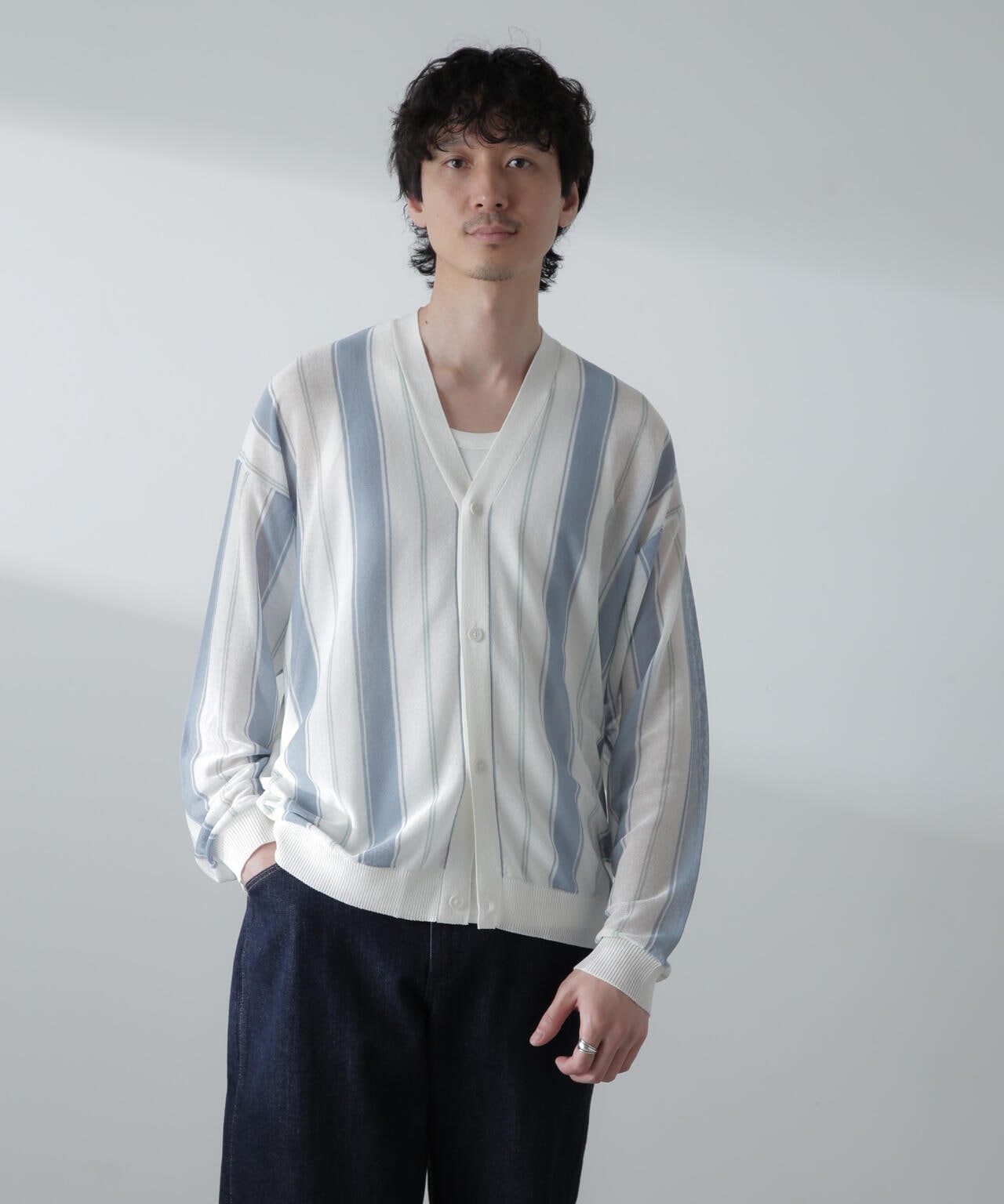 涼しげなタッチにオリジナルストライプをデザインしたカーディガン。