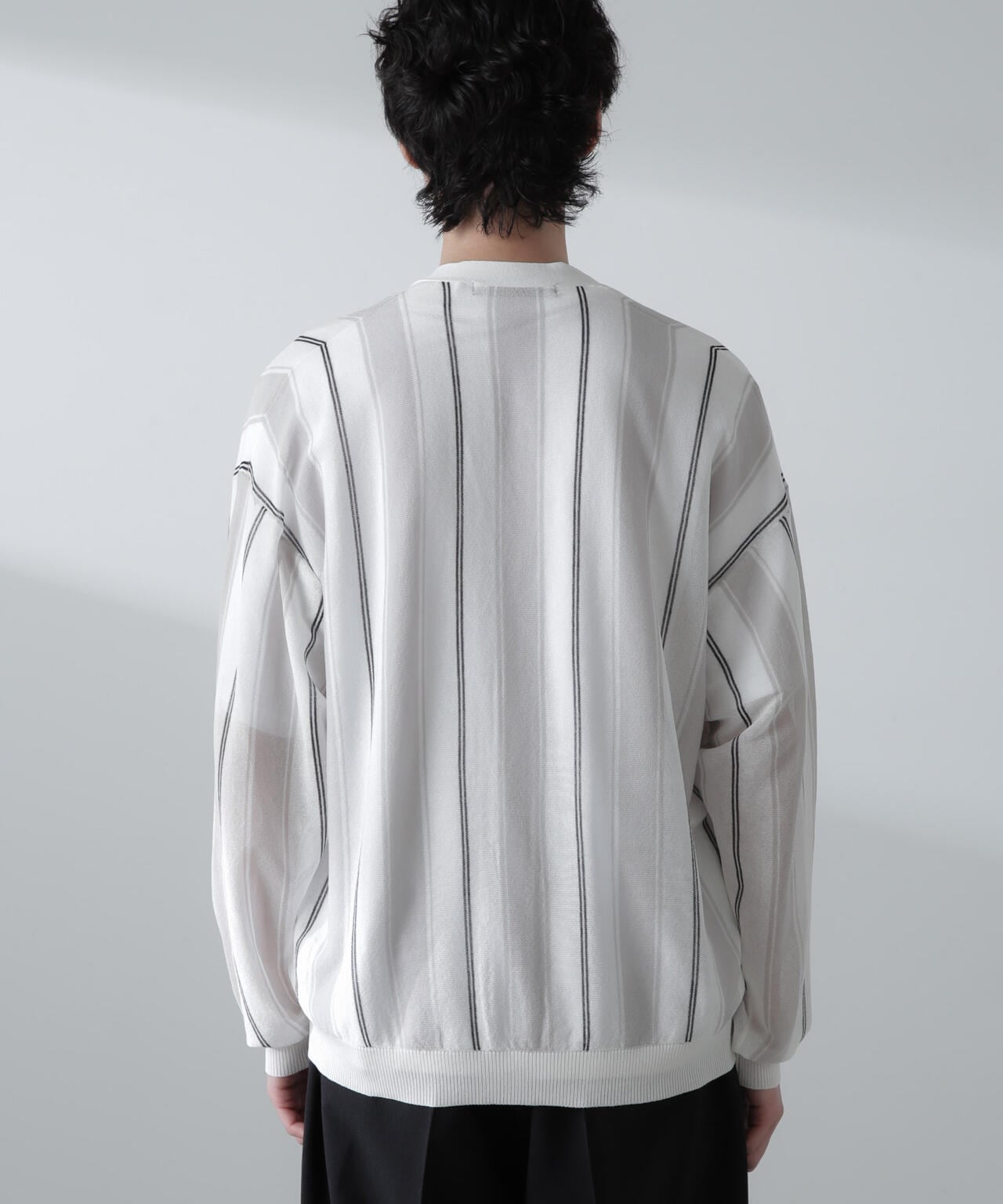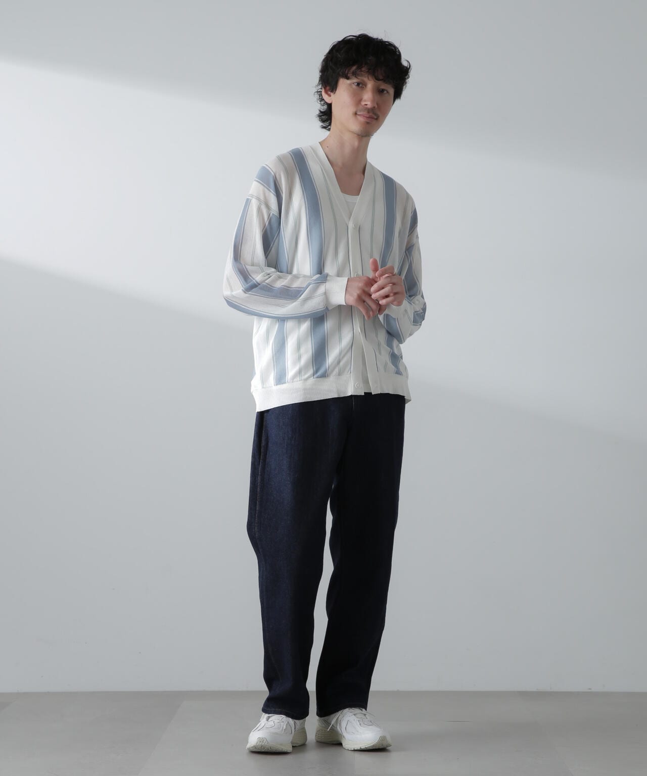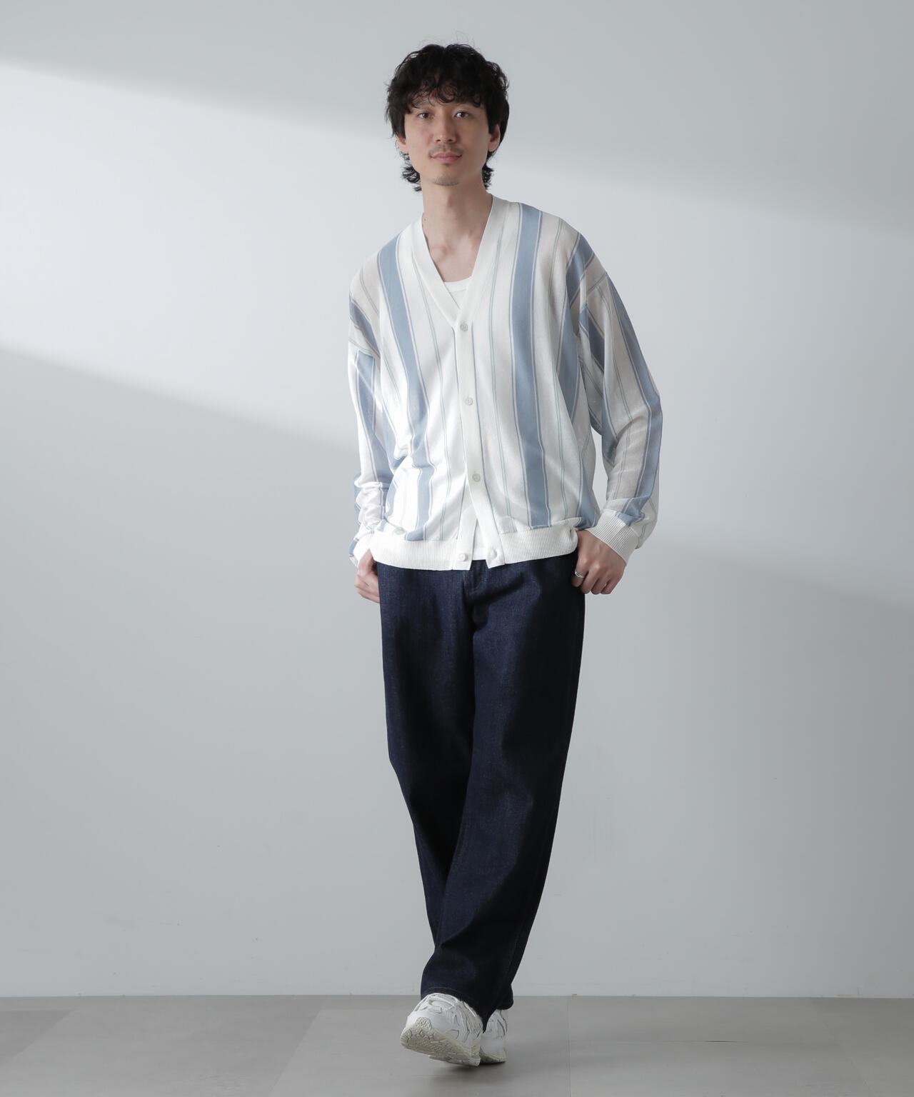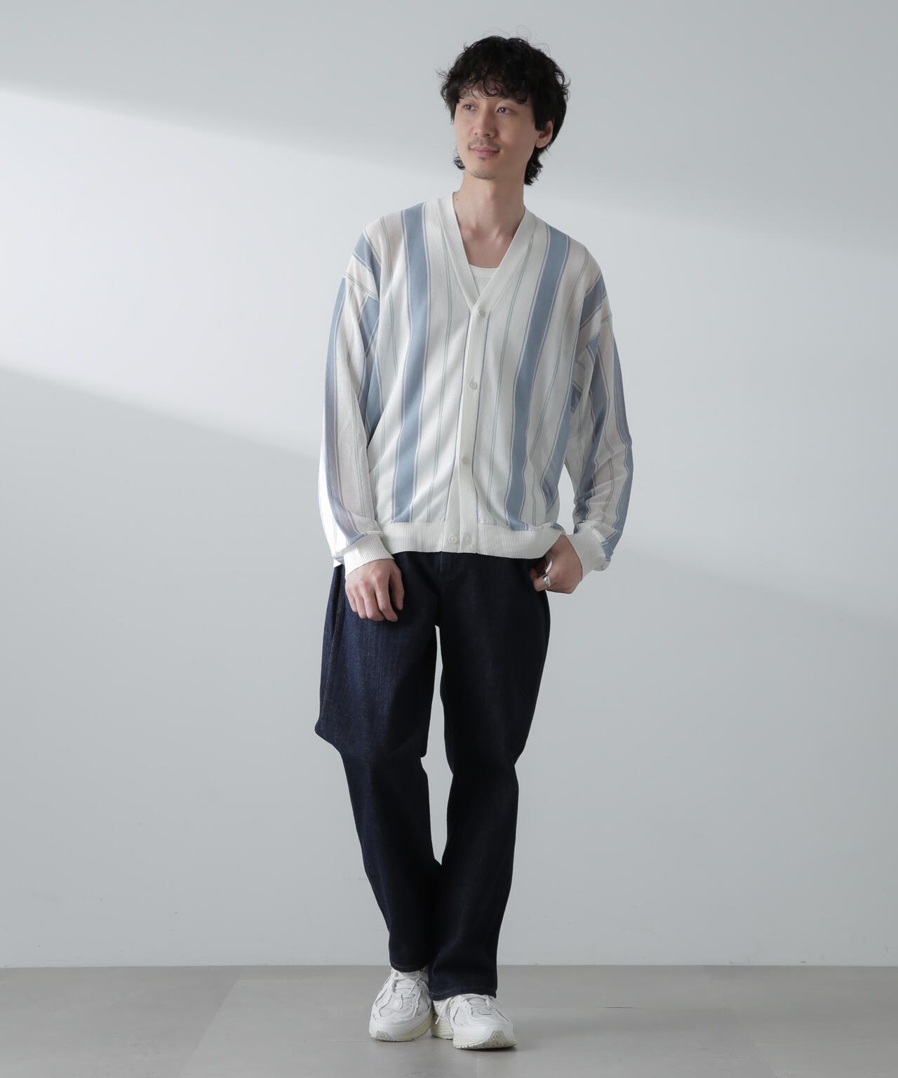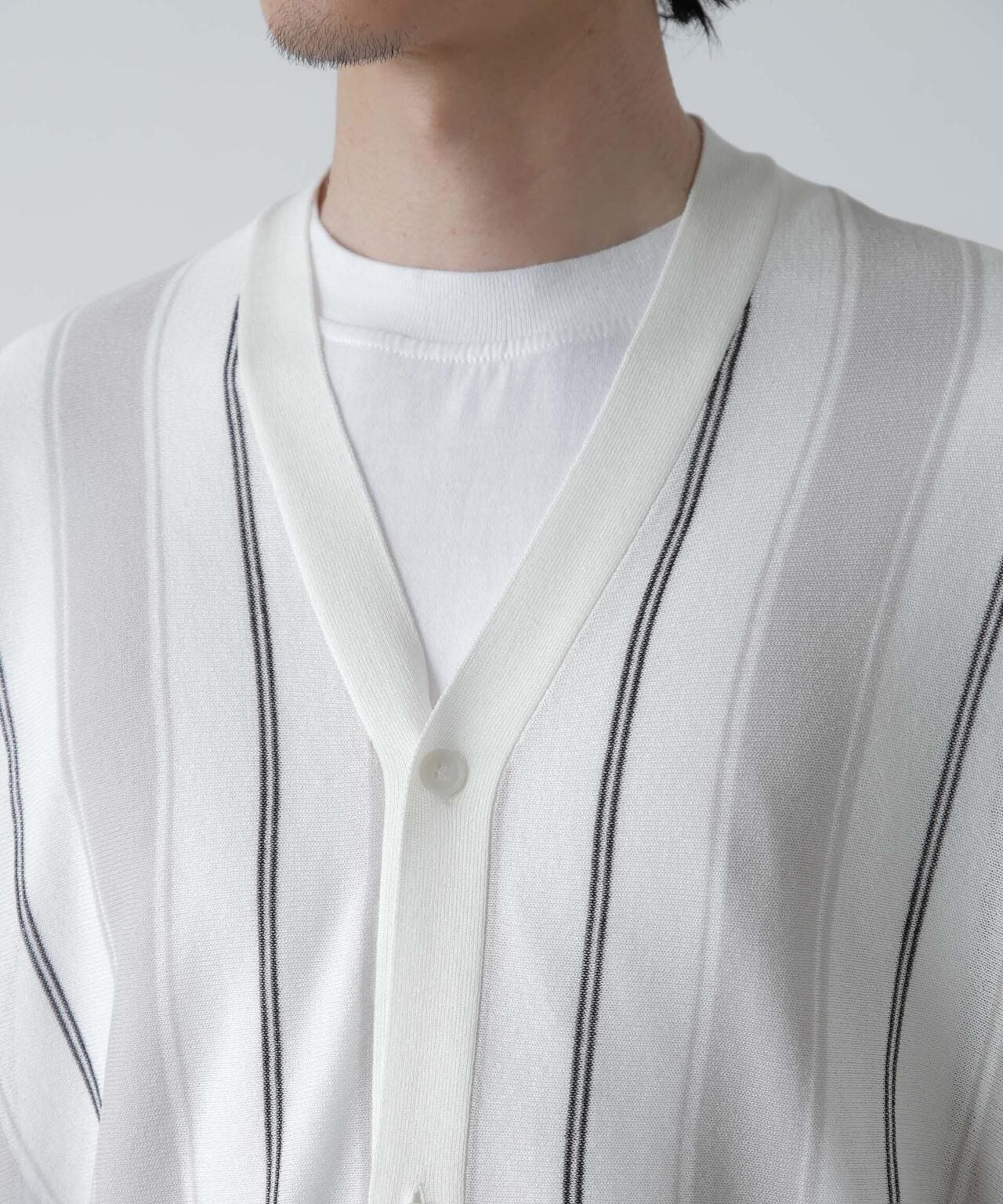 涼しげなタッチにオリジナルストライプをデザインしたカーディガン。