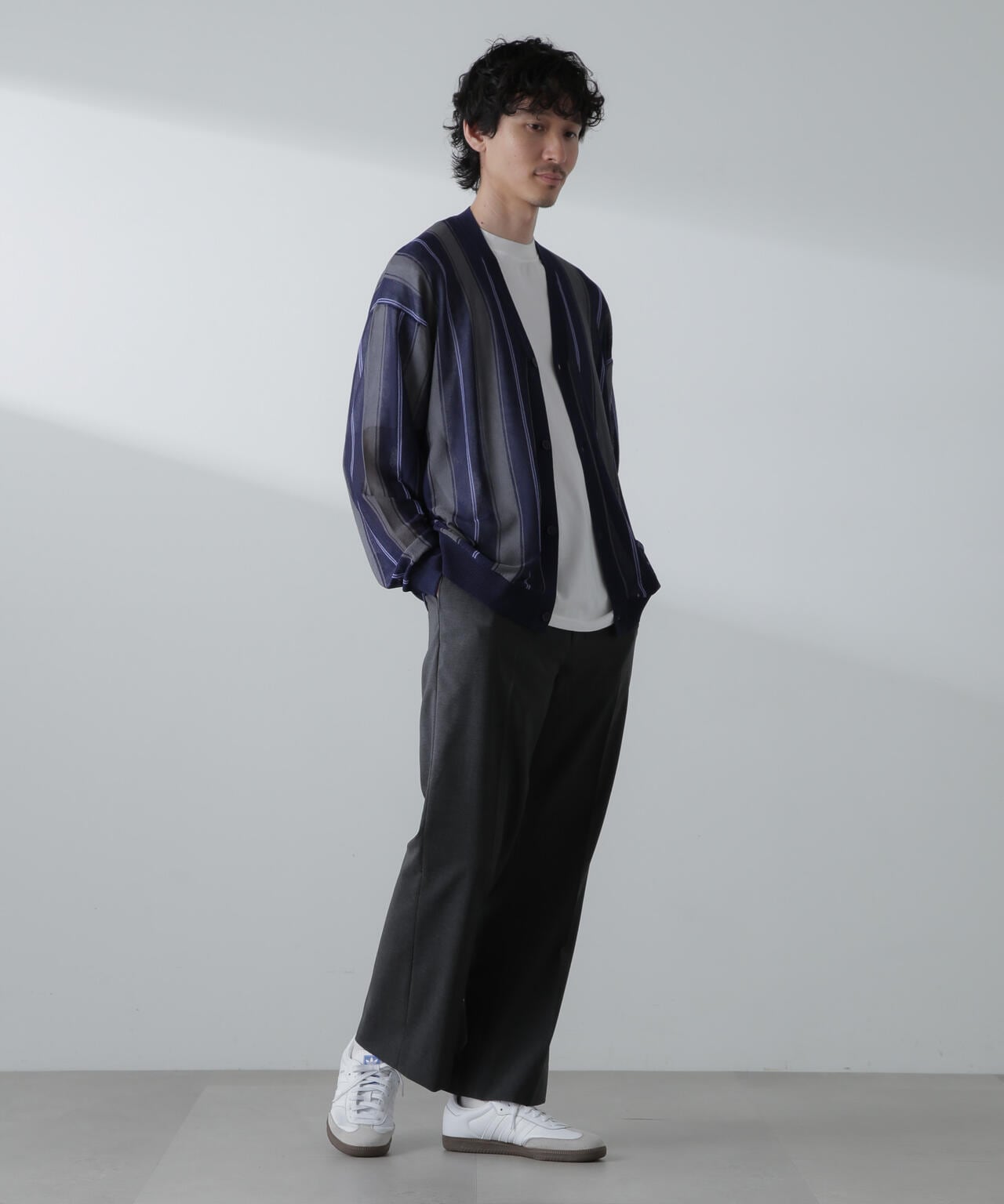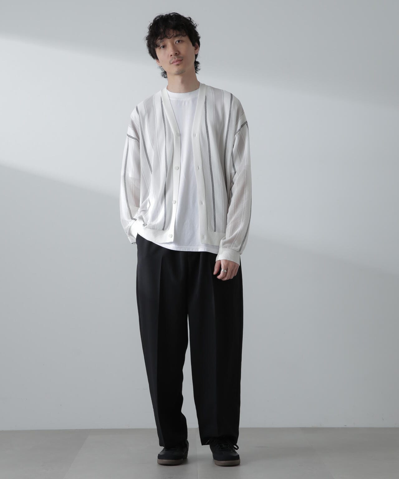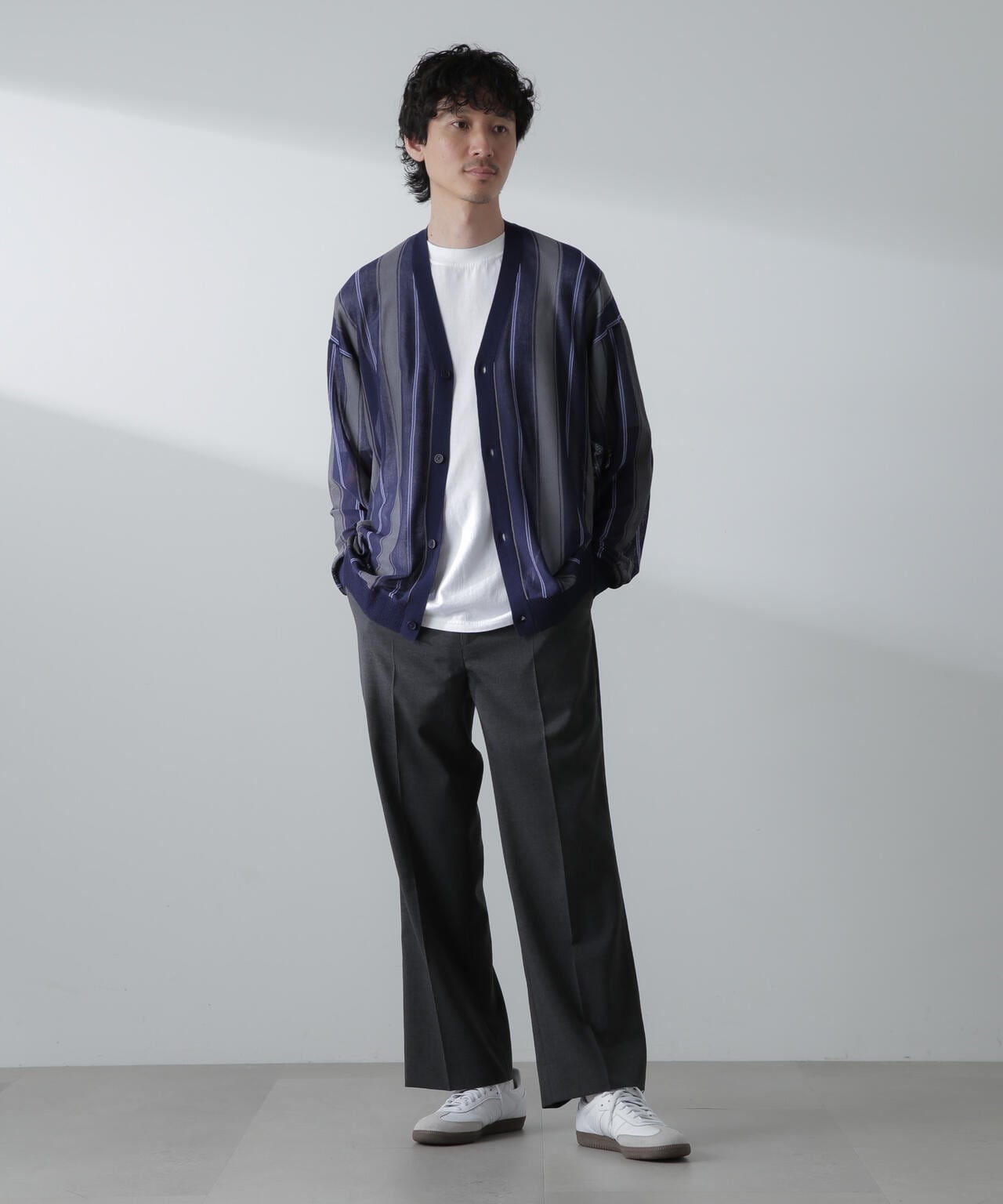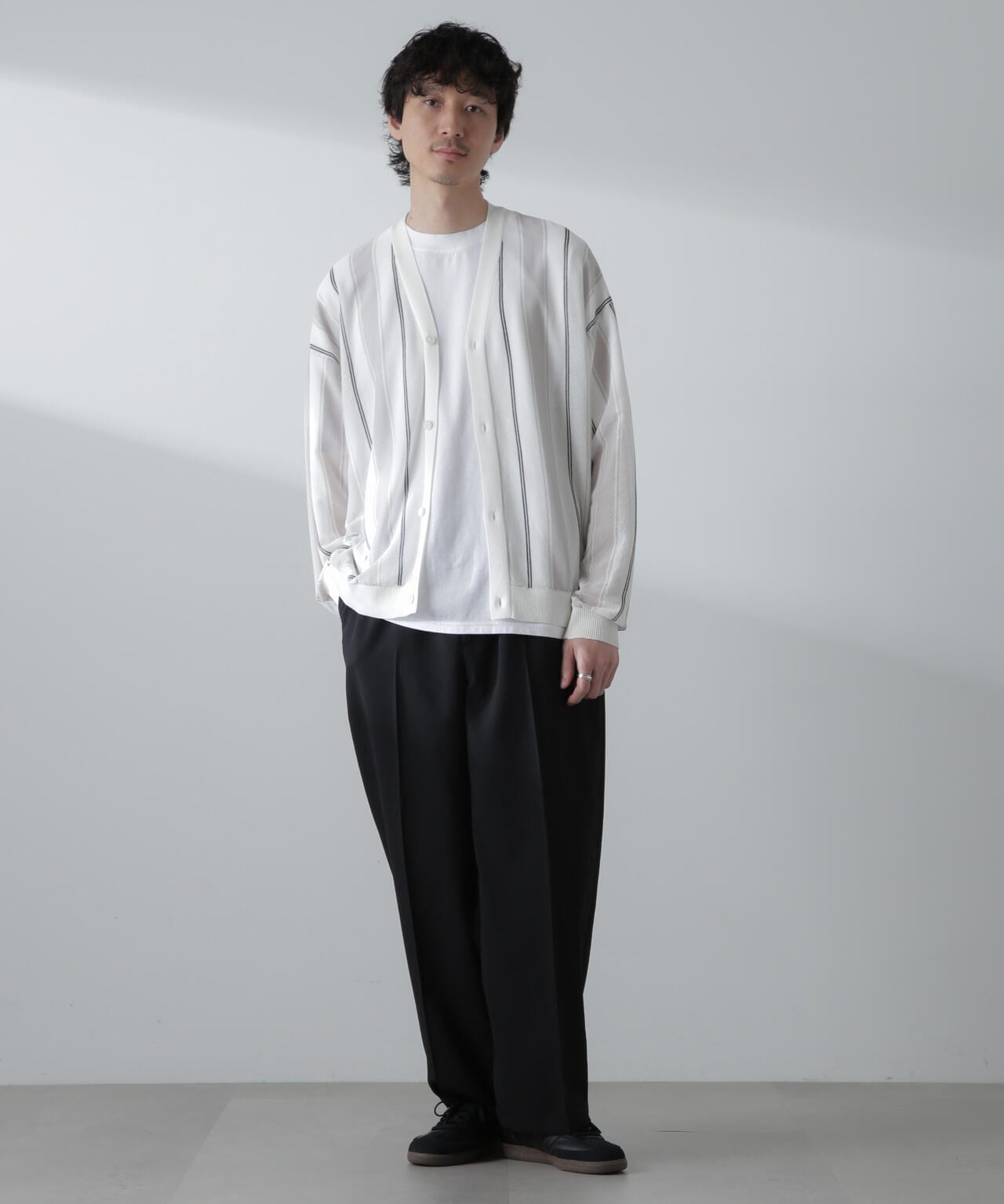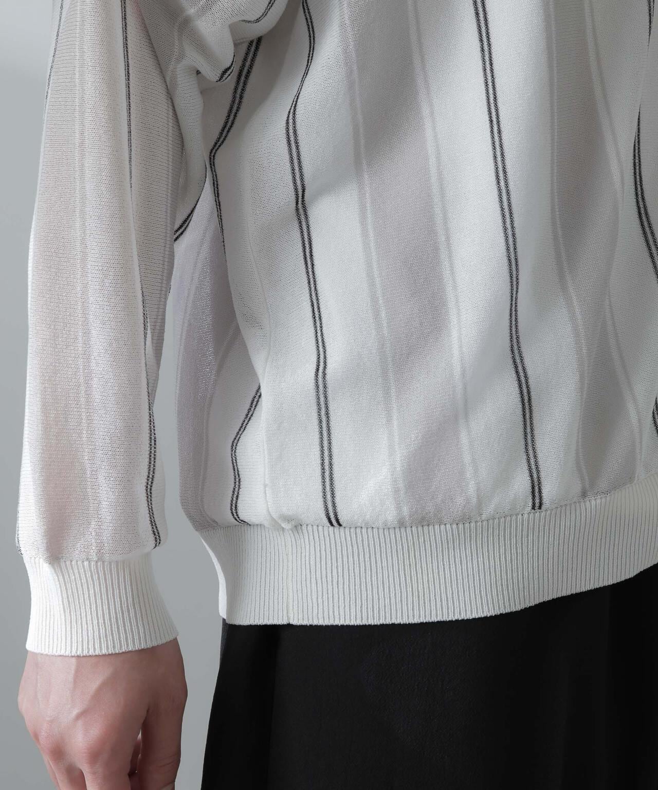 涼しげなタッチにオリジナルストライプをデザインしたカーディガン。