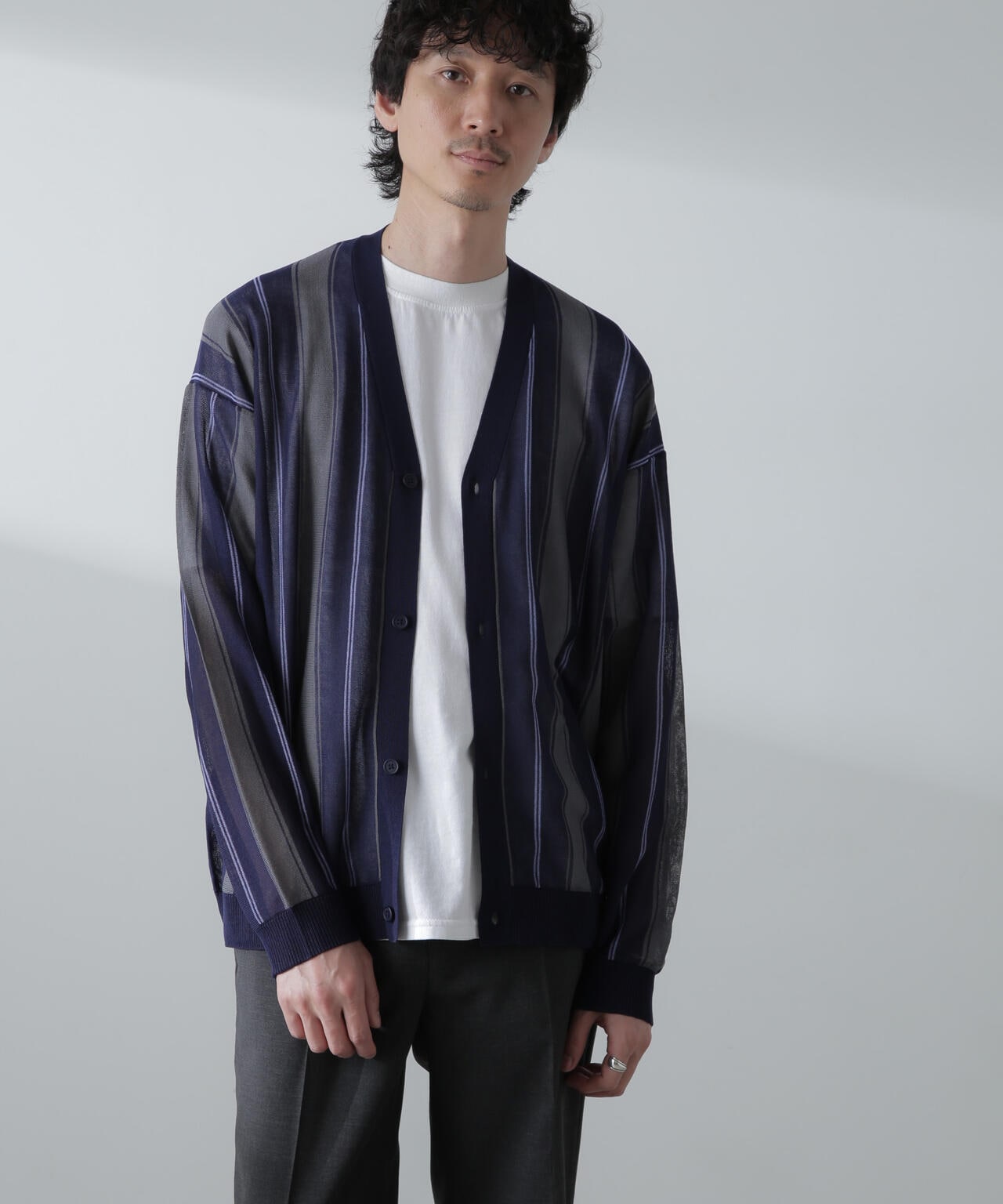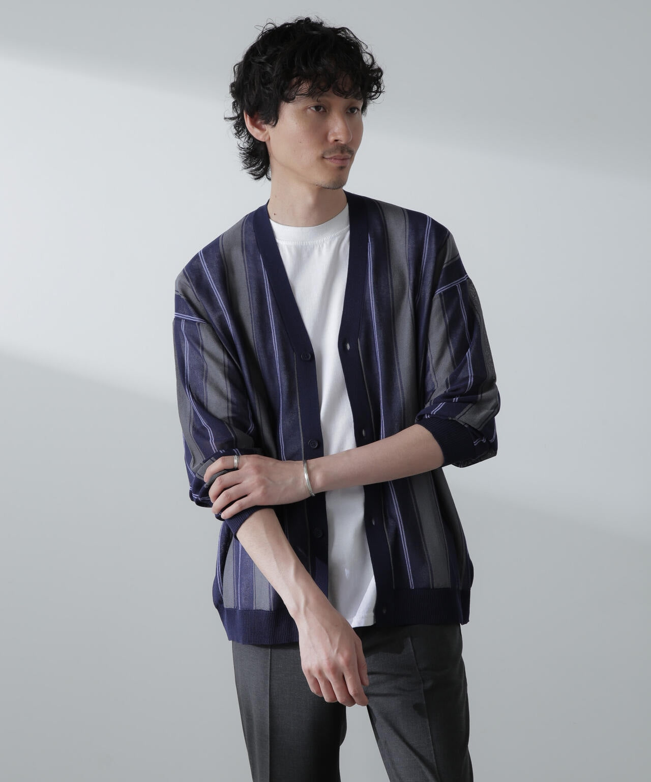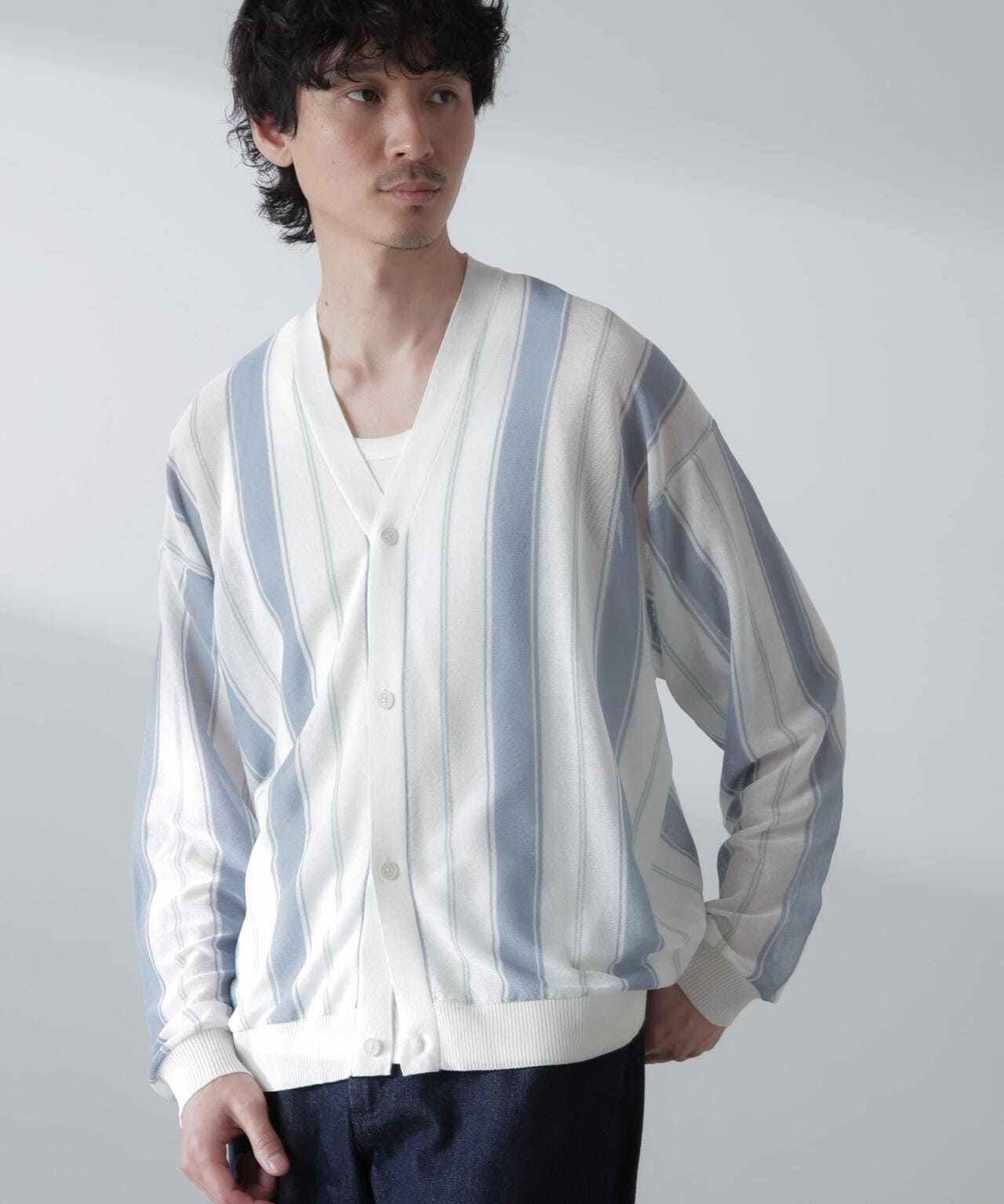 ・涼しげなタッチにオリジナルストライプをデザインしたカーディガン