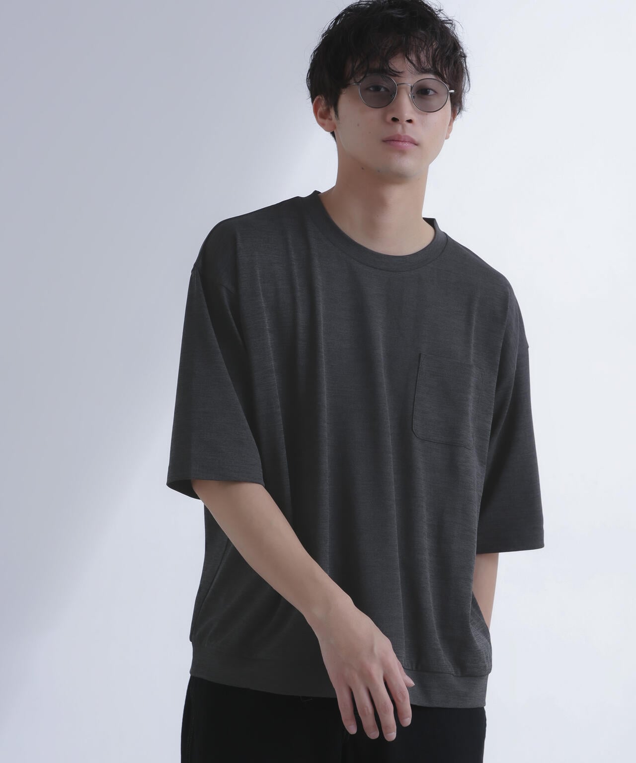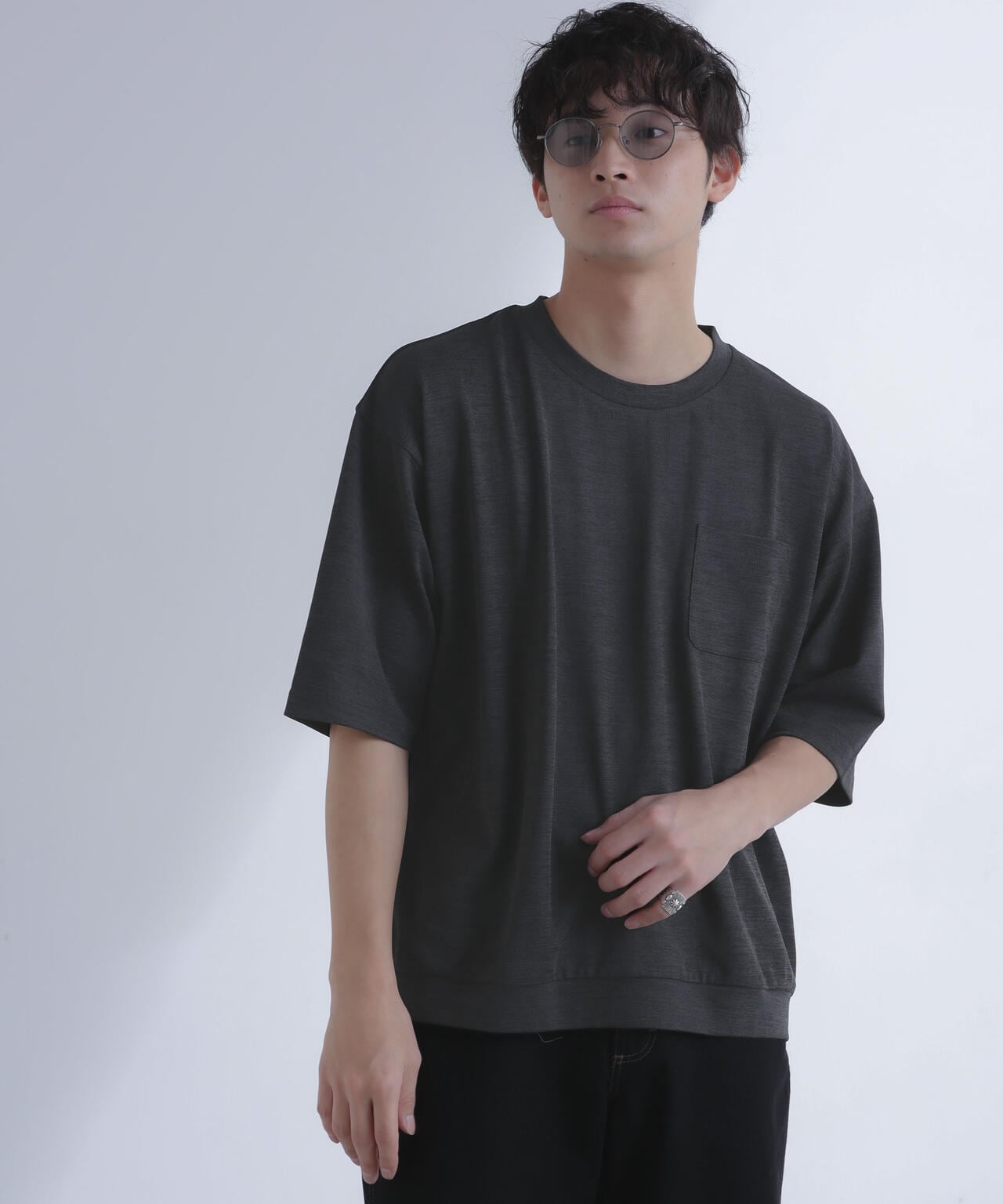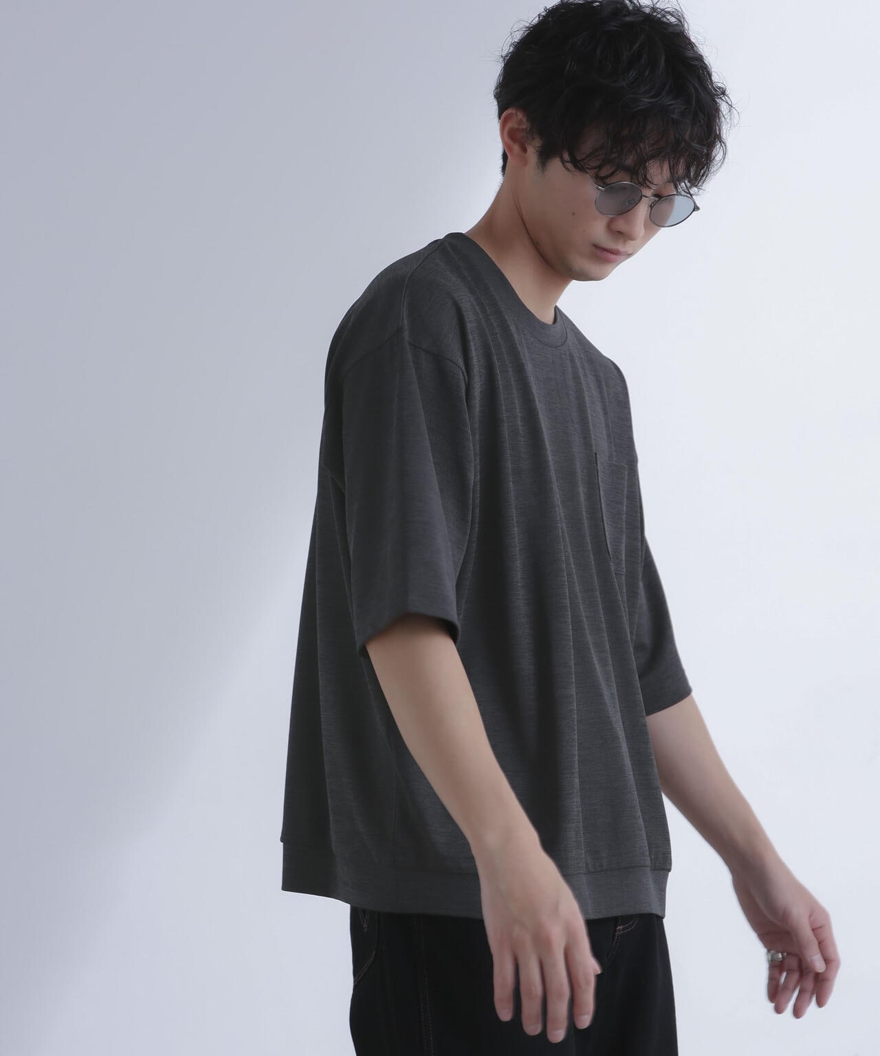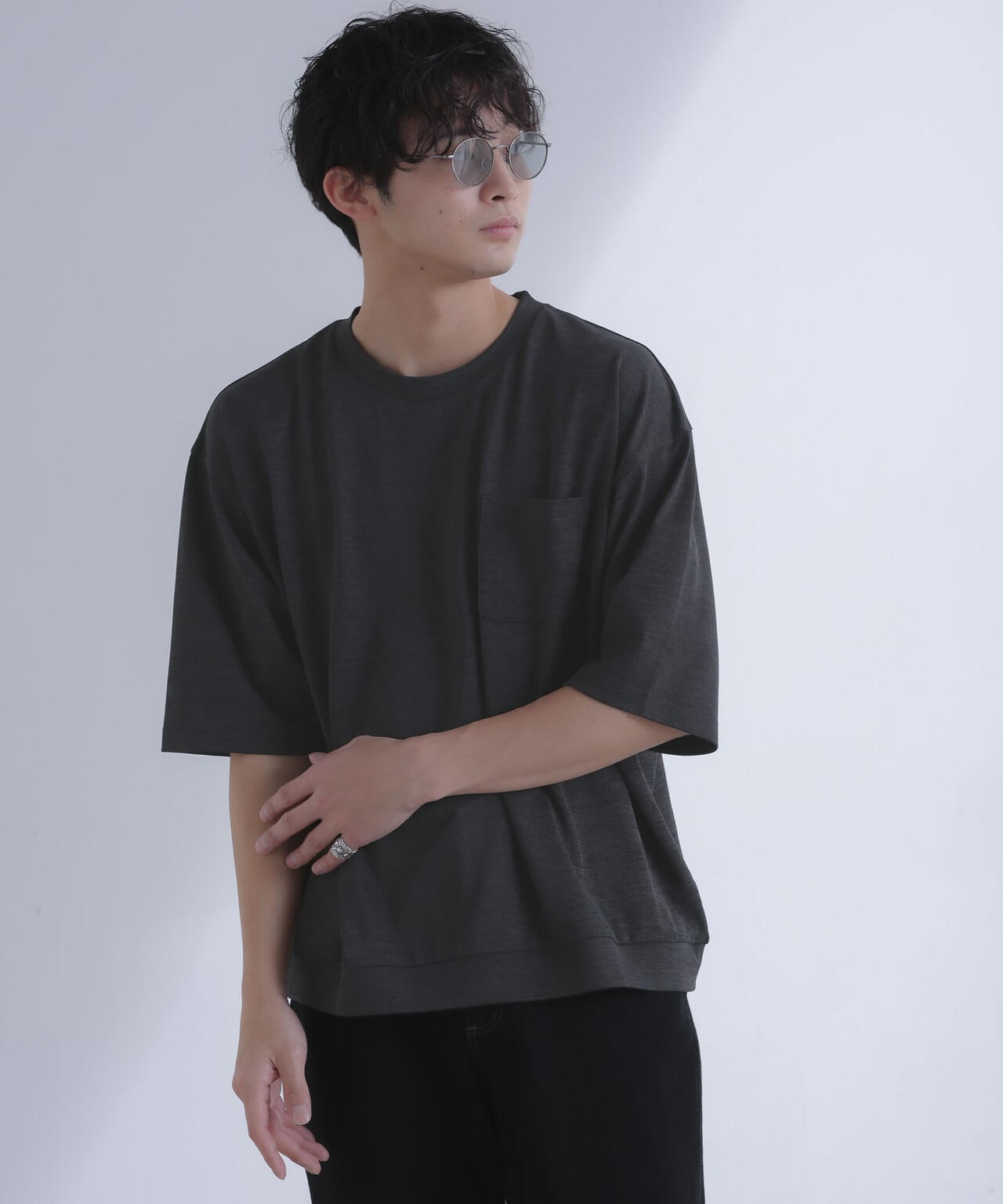 交編カノコ素材のビックシルエットのポケット付きTシャツ。