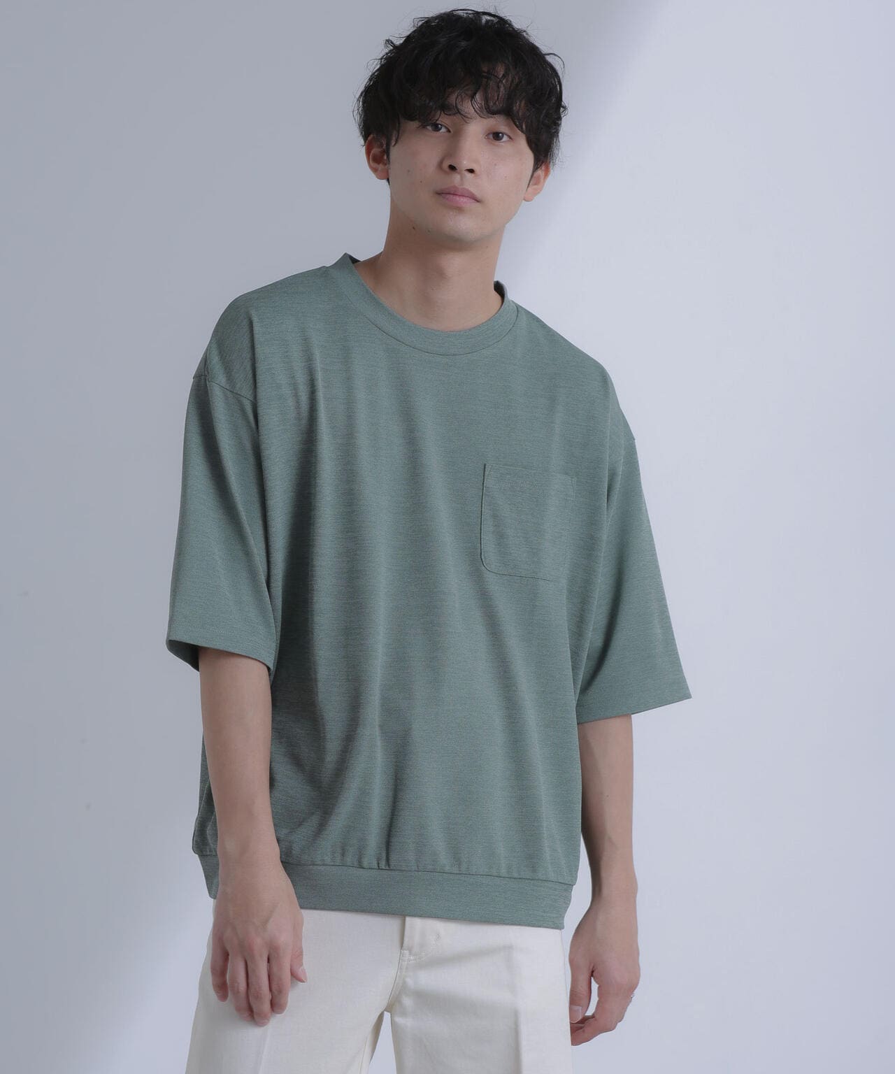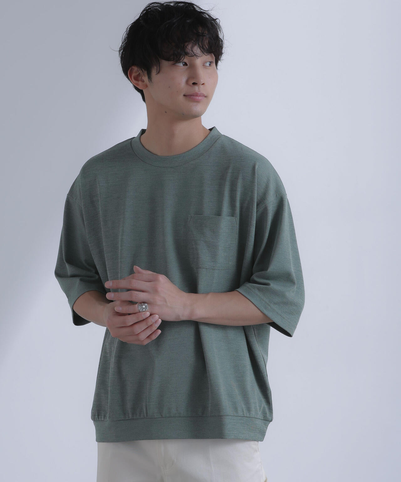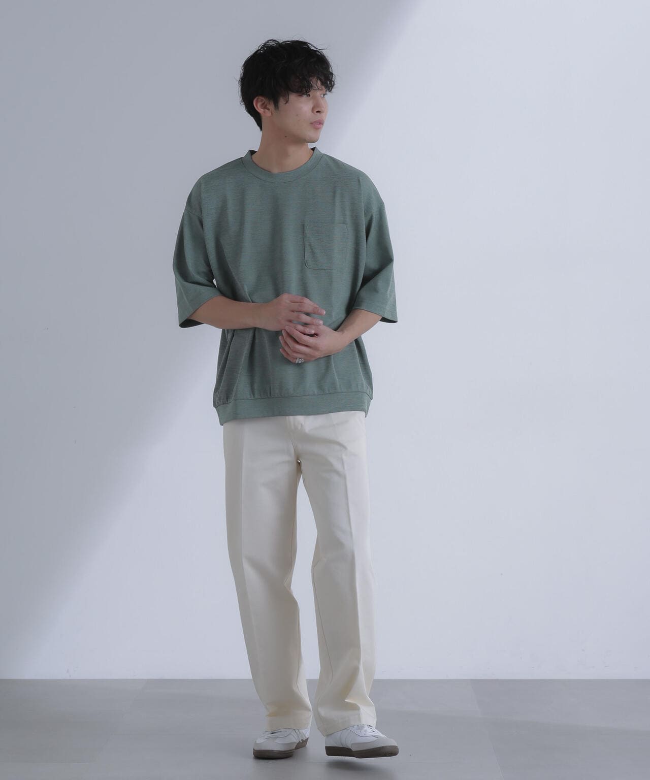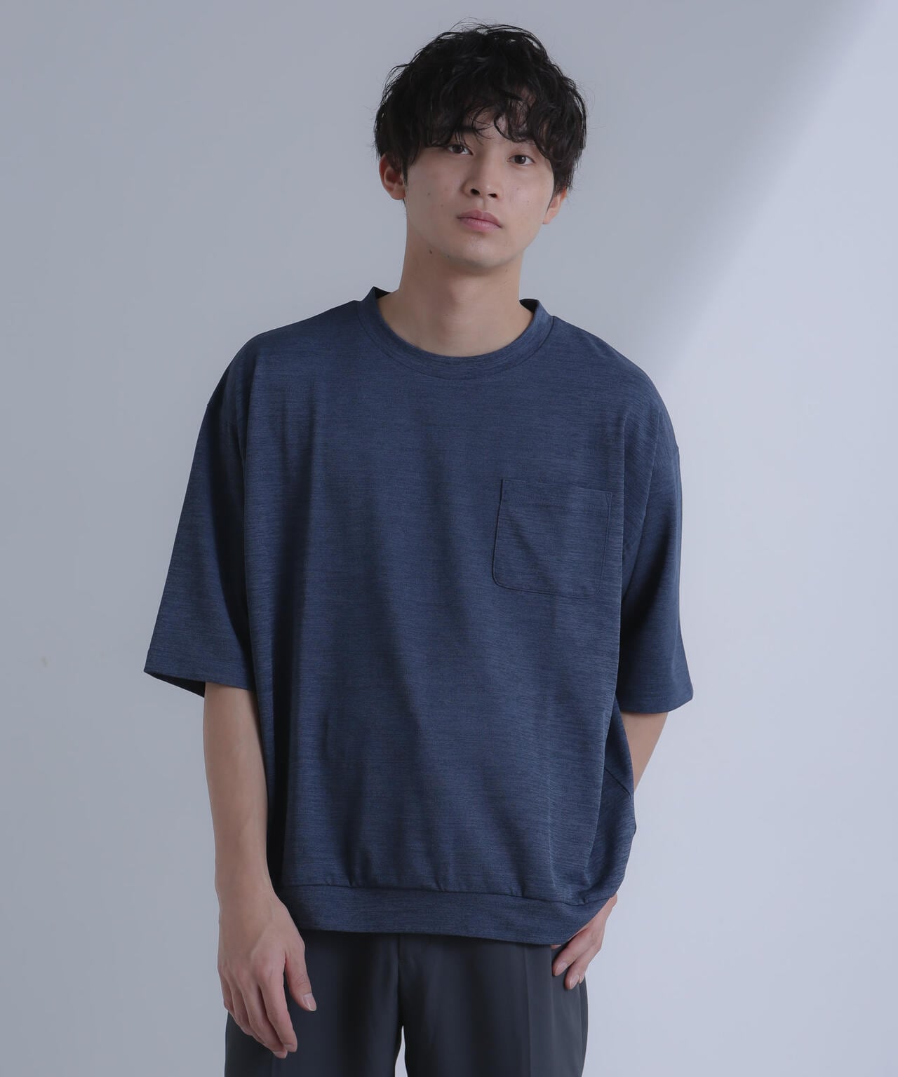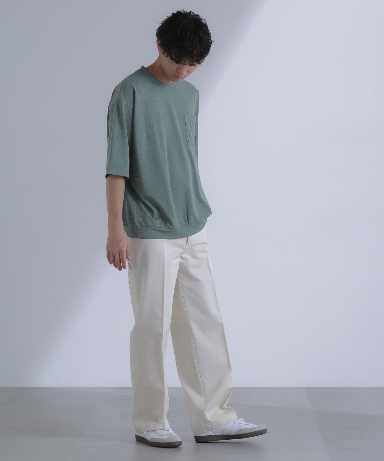 交編カノコ素材のビックシルエットのポケット付きTシャツ。