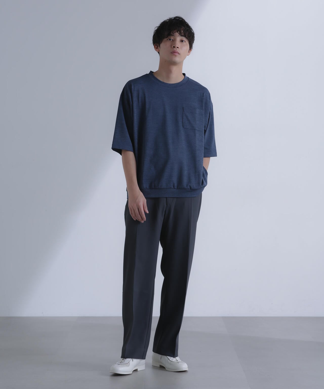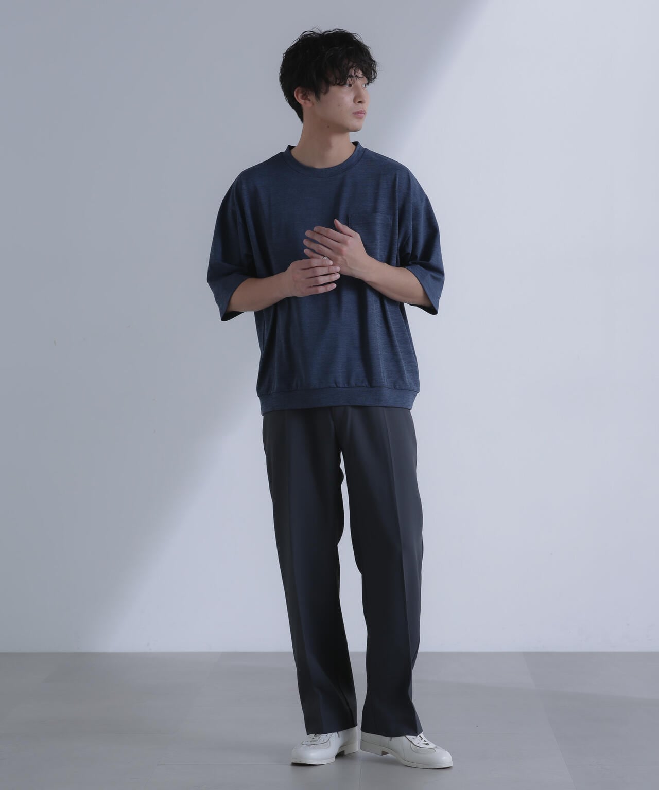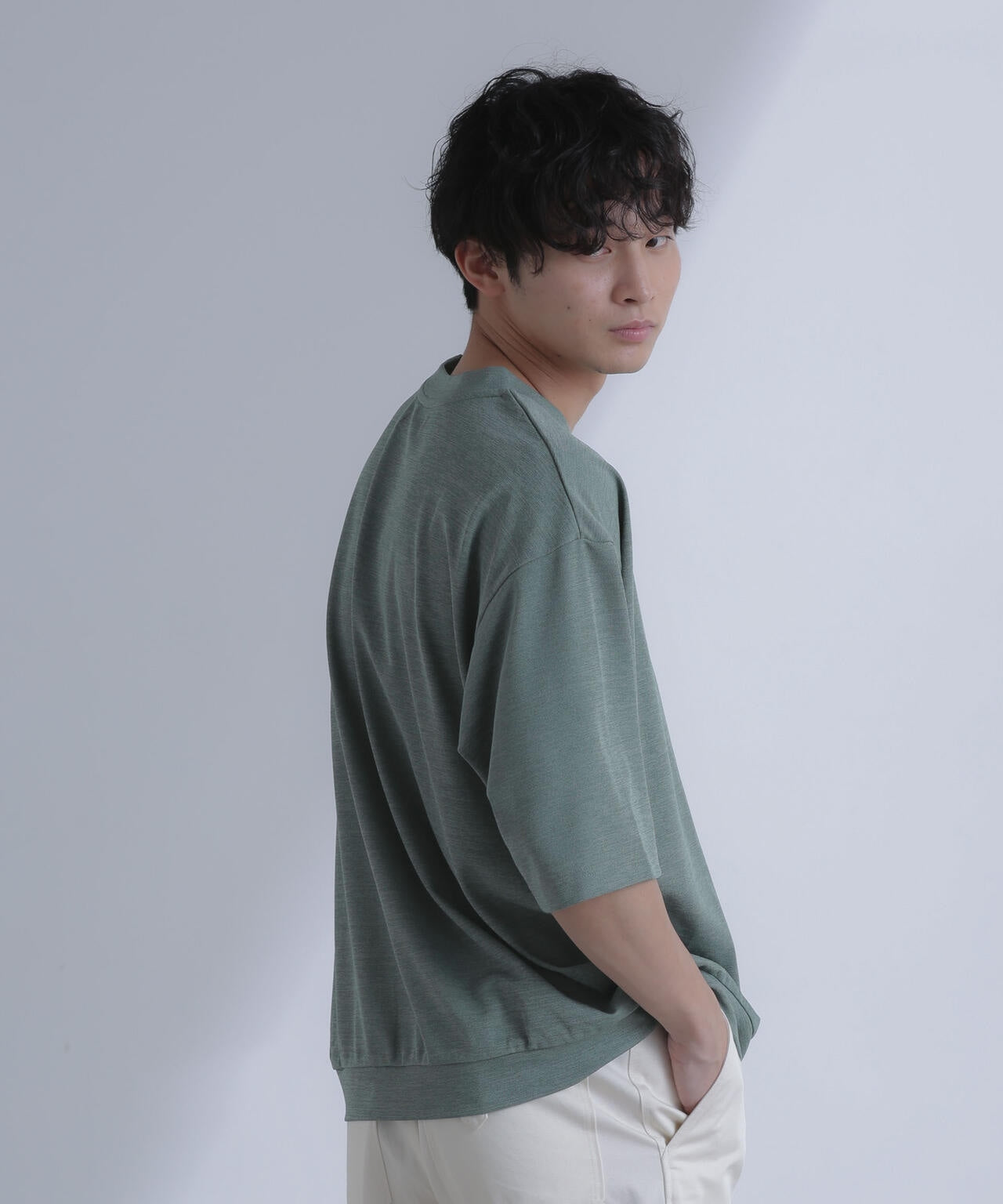 凹凸感があり軽量でさらっとした着心地が特徴。また薄い生地を使用し、通気性と快適性に優れた夏場い嬉しい一着。