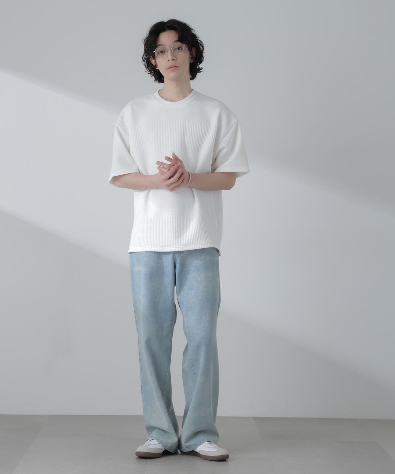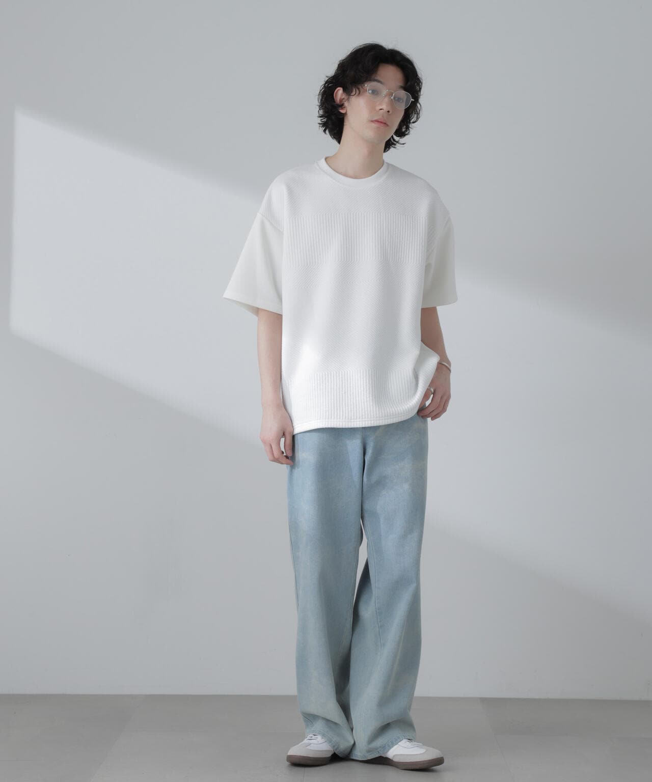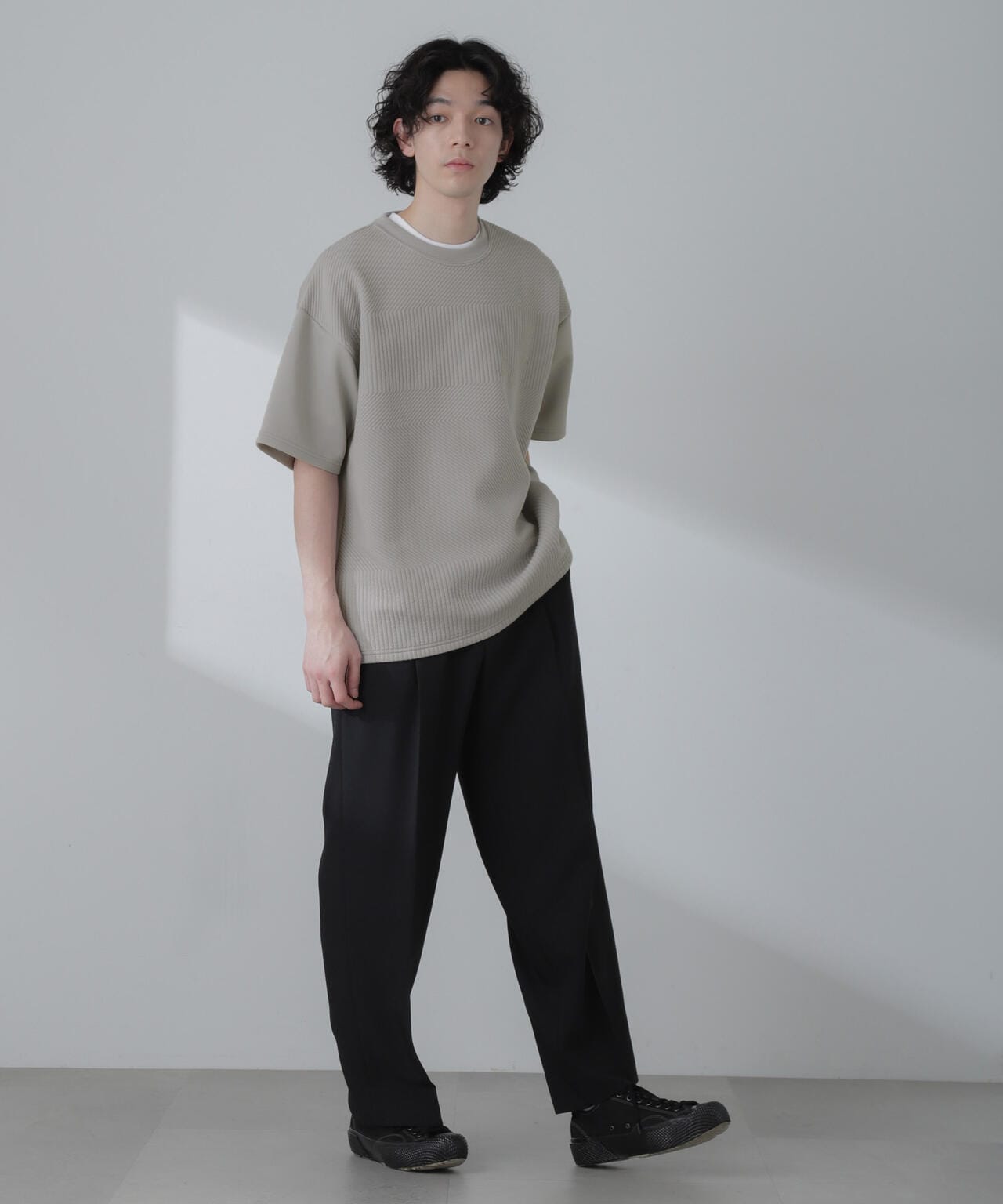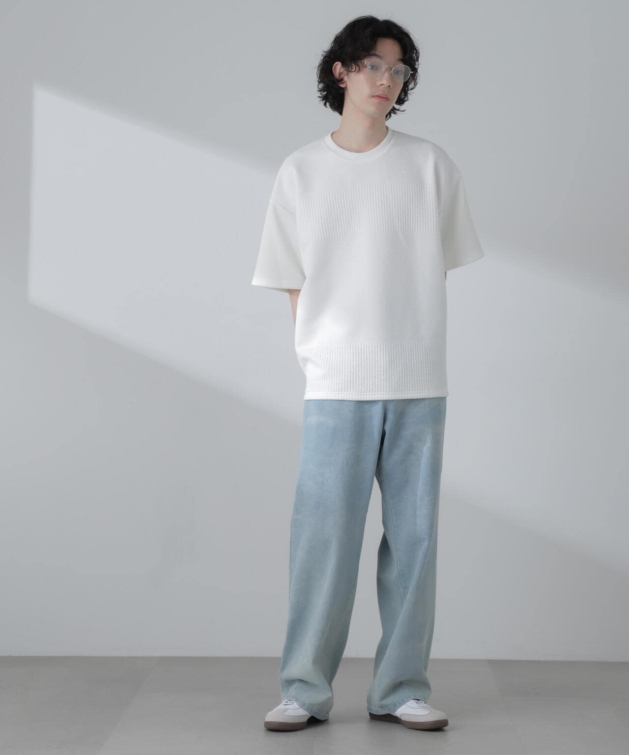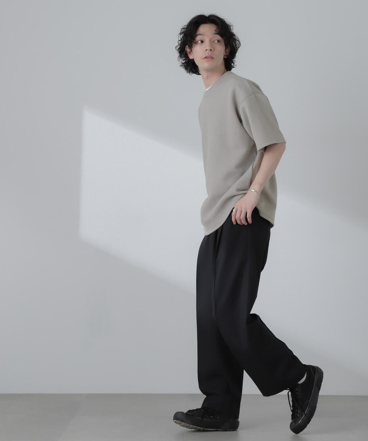 各カラーの同系色のパンツと合わせて、生地感で違いを出すワントーンコーデがおすすめです。