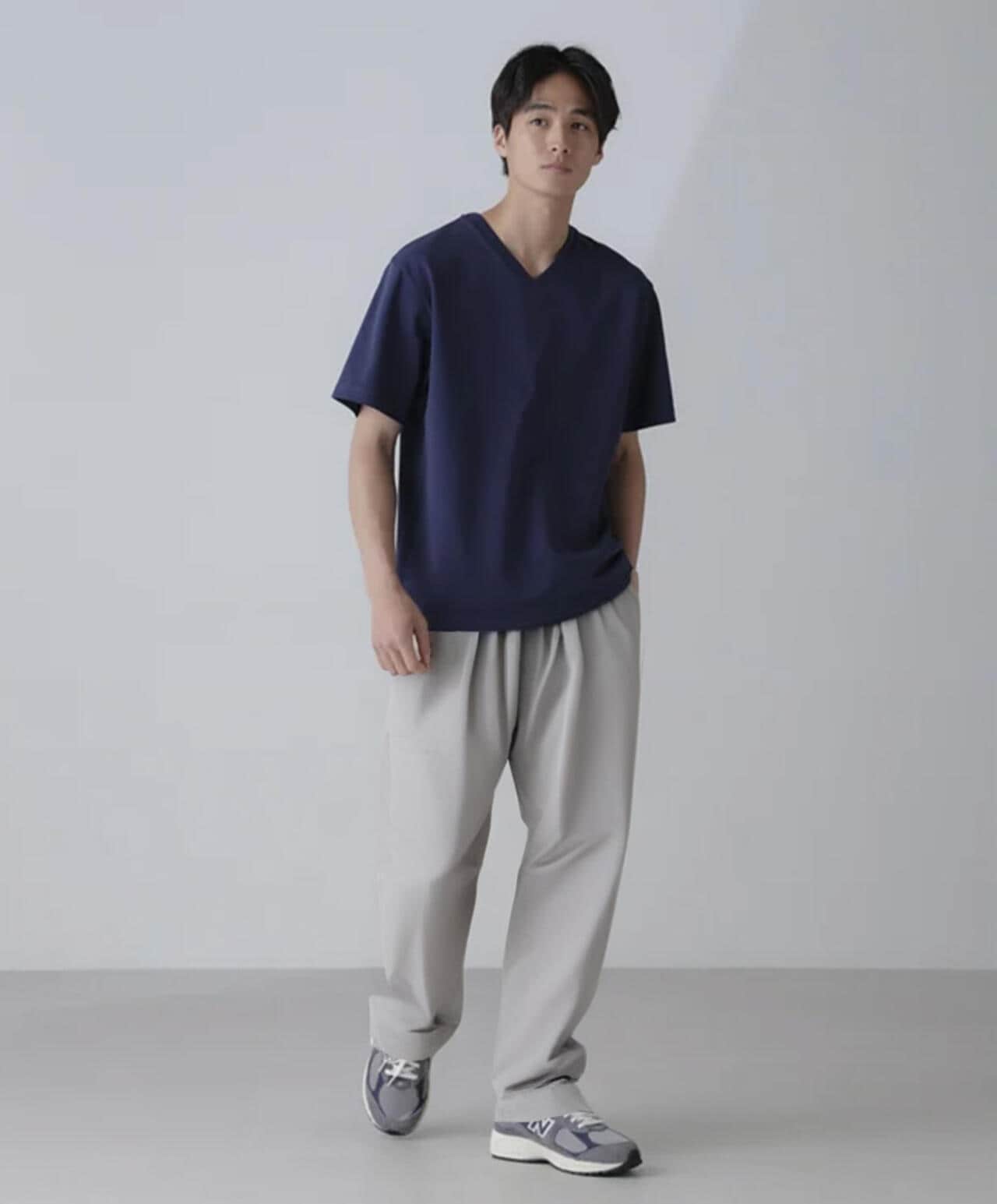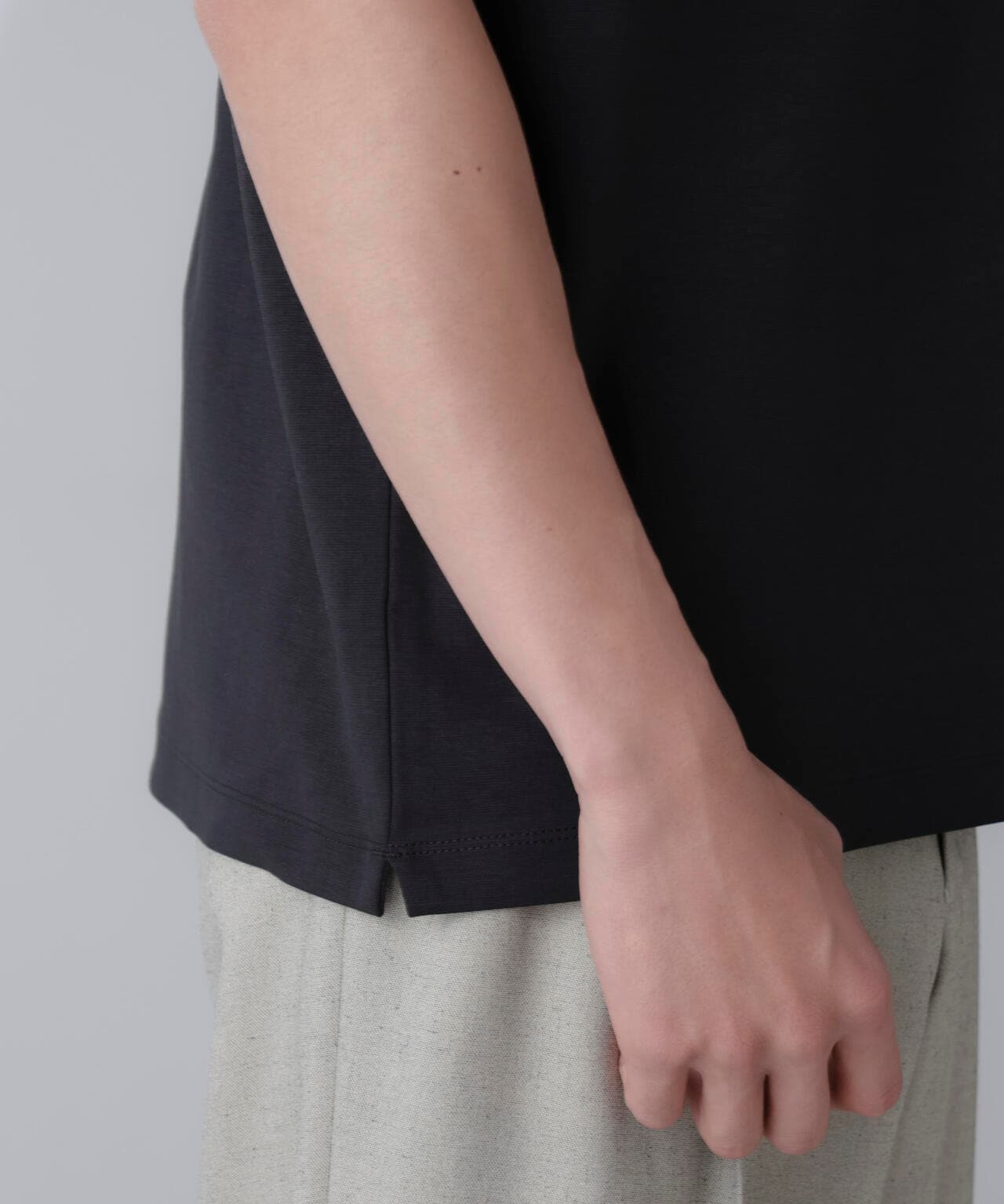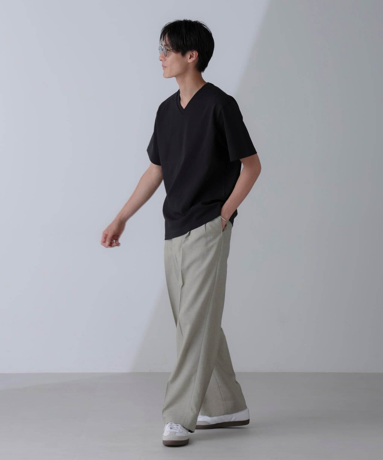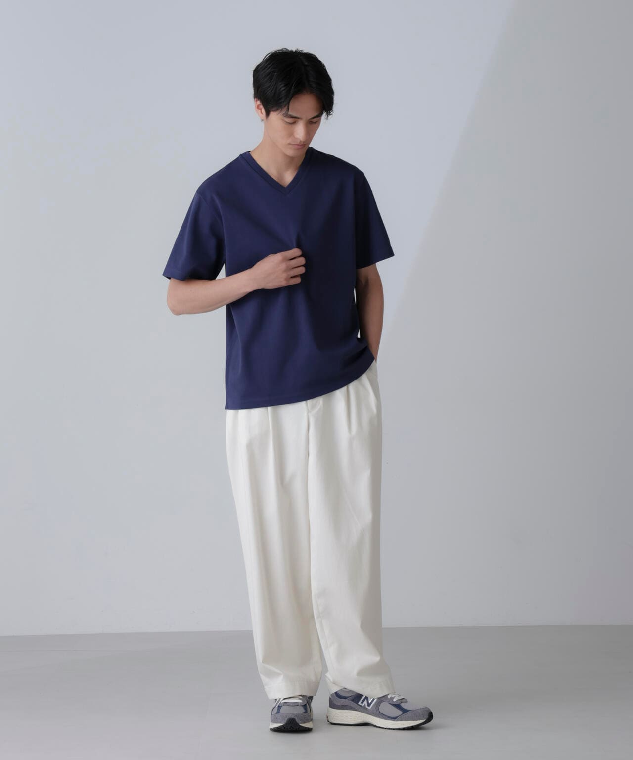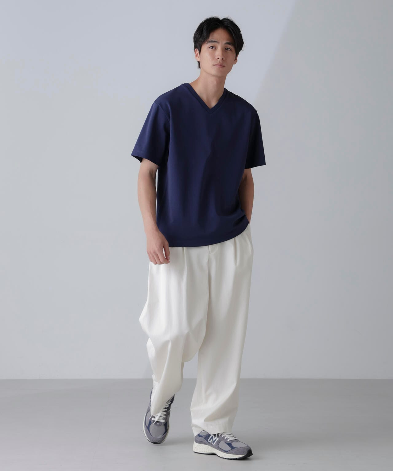 撥水と吸水、2つの機能を兼ね備えたダブルスムースシリーズのVネック半袖Tシャツ。