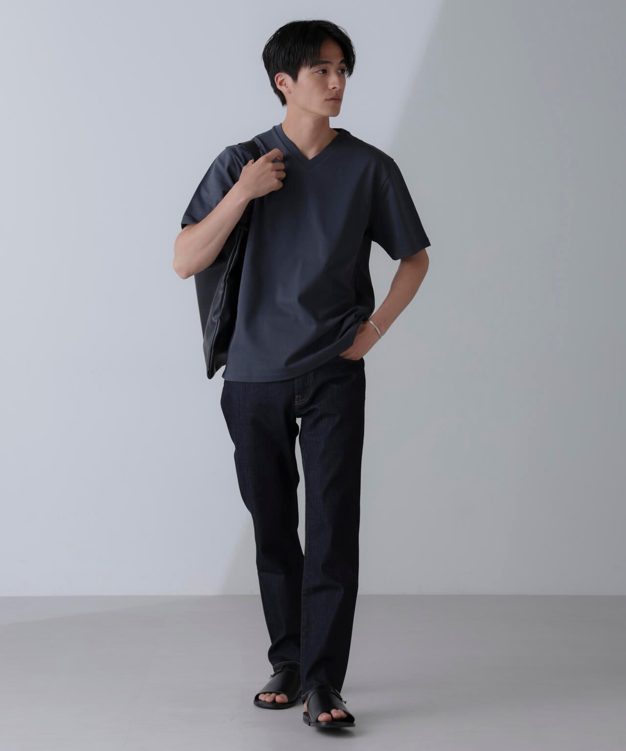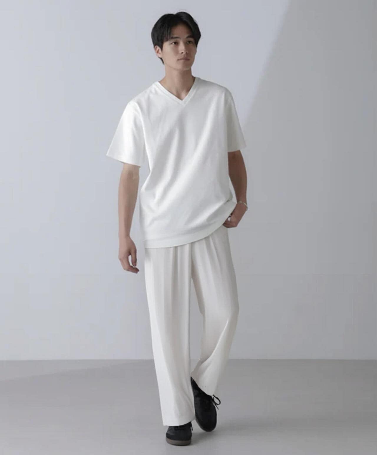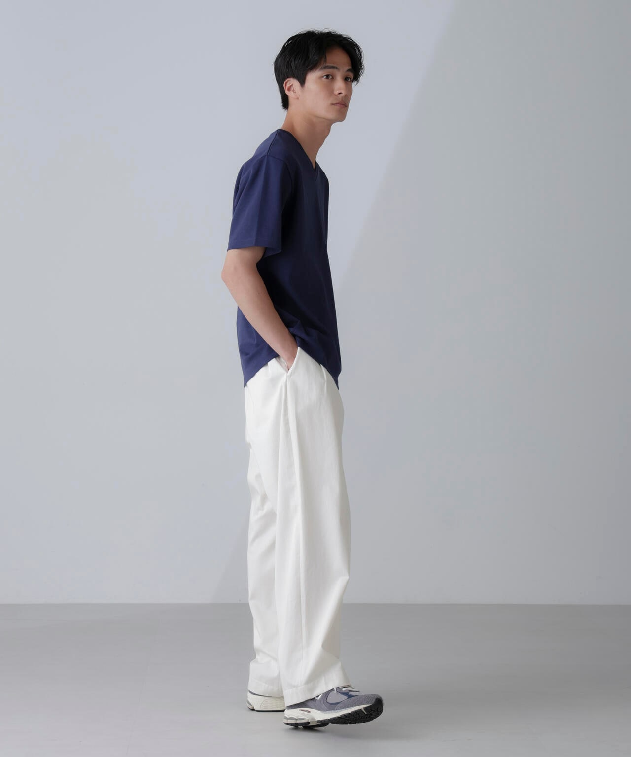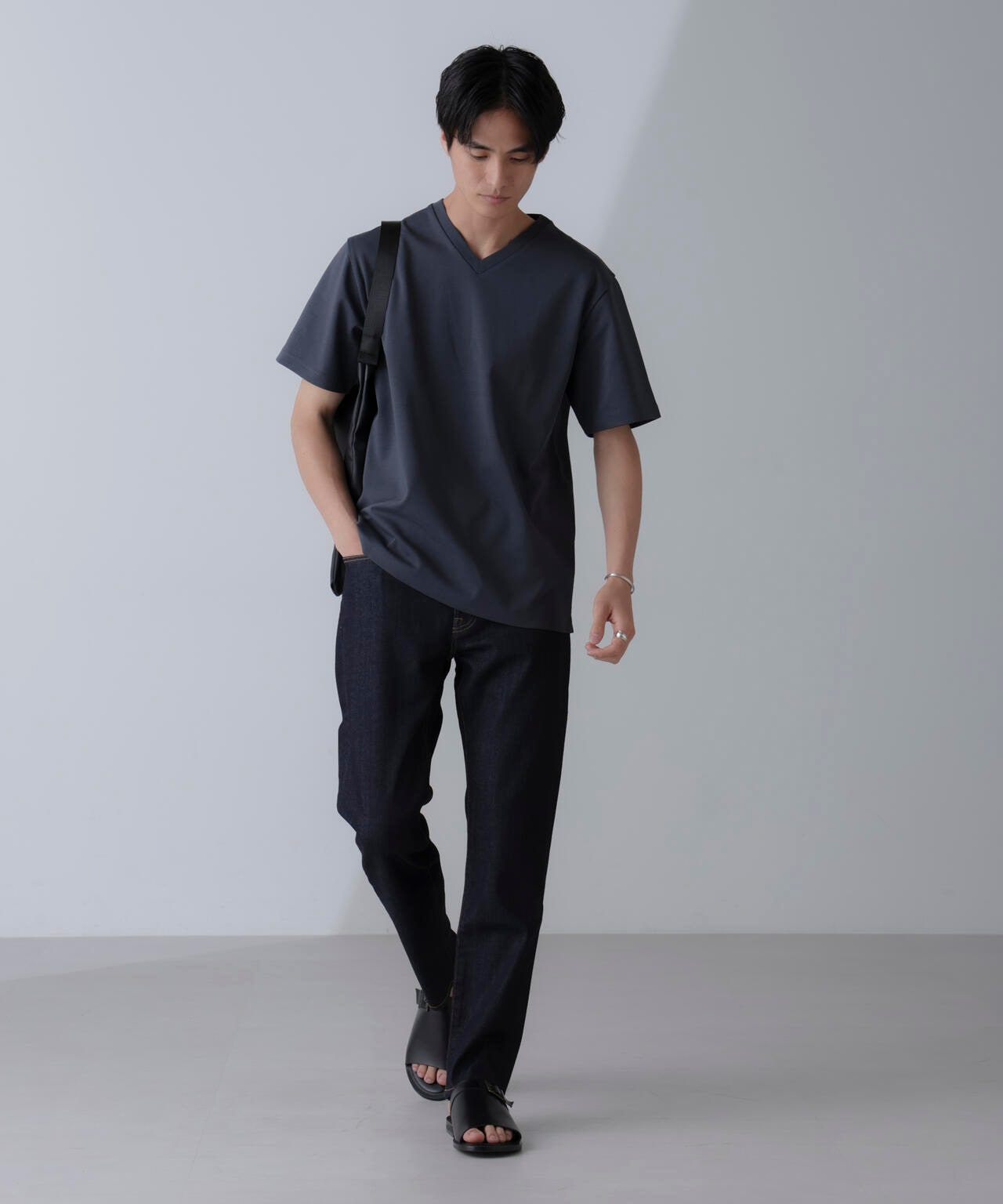 撥水と吸水、2つの機能を兼ね備えたダブルスムースシリーズのVネック半袖Tシャツ。